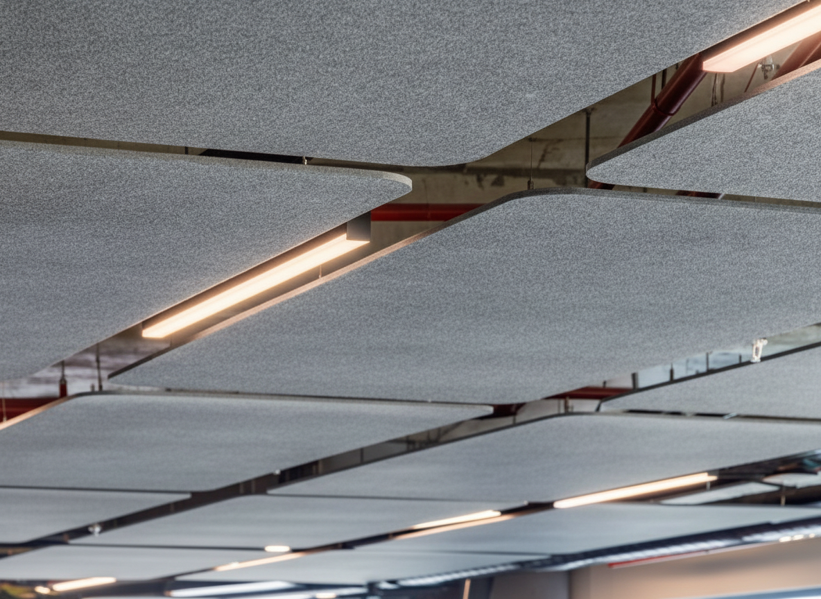 After the initial installation, follow-up measurements confirmed improved acoustic performance. To optimize results further, the team added additional Feltfill layers and adjusted suspension heights. These changes aligned with sprinkler system requirements while increasing acoustic efficiency.