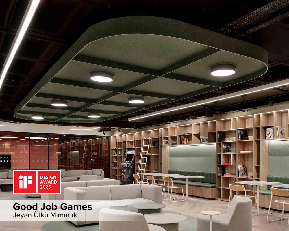 Located in central Istanbul, the Good Job Games office spans two low-rise residential buildings, presenting a unique challenge: how to design a dynamic workplace without losing the comfort of a home-like environment. The aim was to create a campus-like atmosphere that reflects the young and creative spirit of the team. The interior design by Jeyan Ülkü Mimarlık focused on flexibility, comfort, and vibrancy — with open lounges, informal meeting zones, and collaborative work areas.