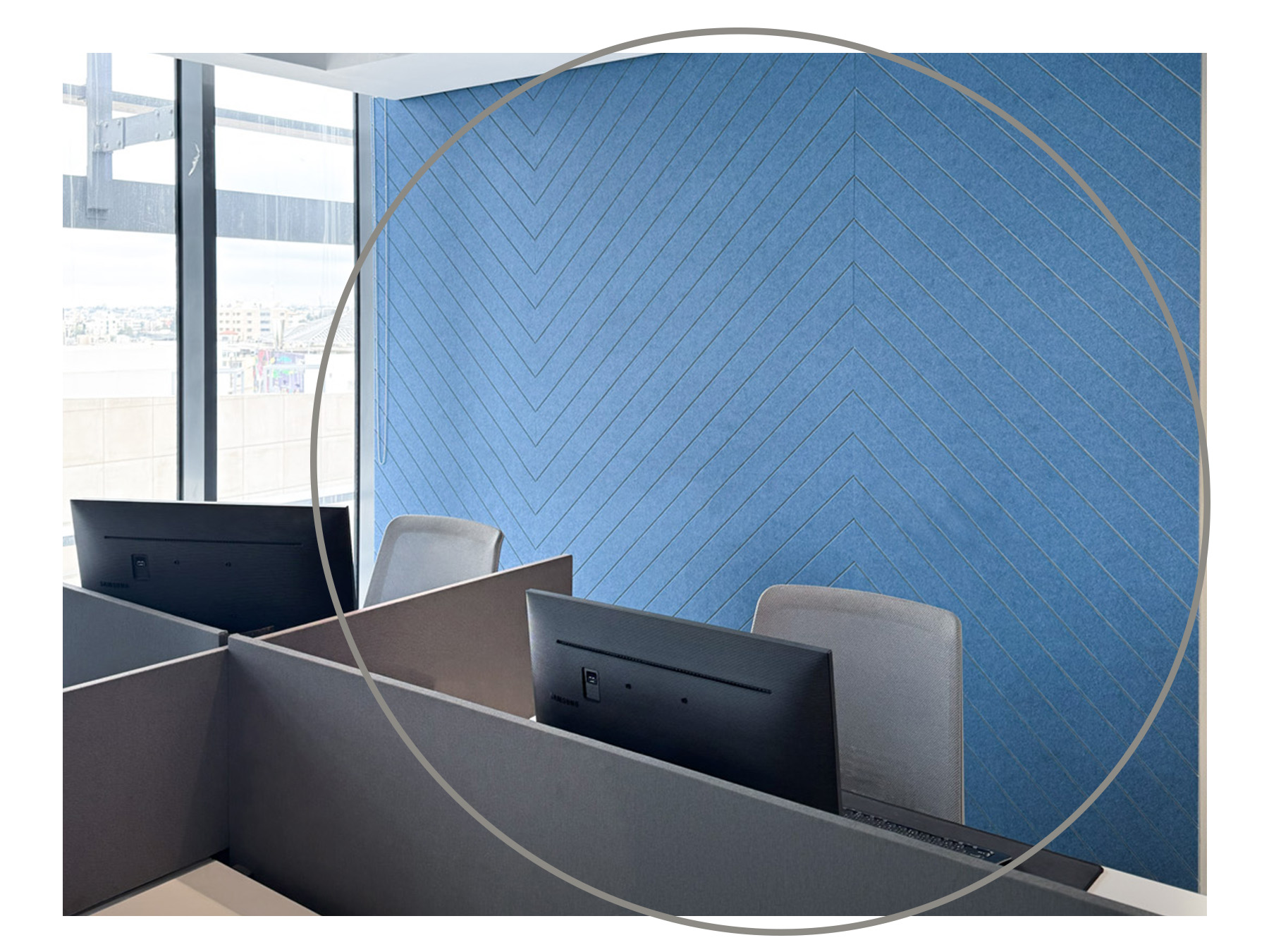 These systems improve speech intelligibility, support focused work, and create a calmer acoustic atmosphere. At the same time, the use of recycled PET felt contributes to sustainable interior design without compromising performance.