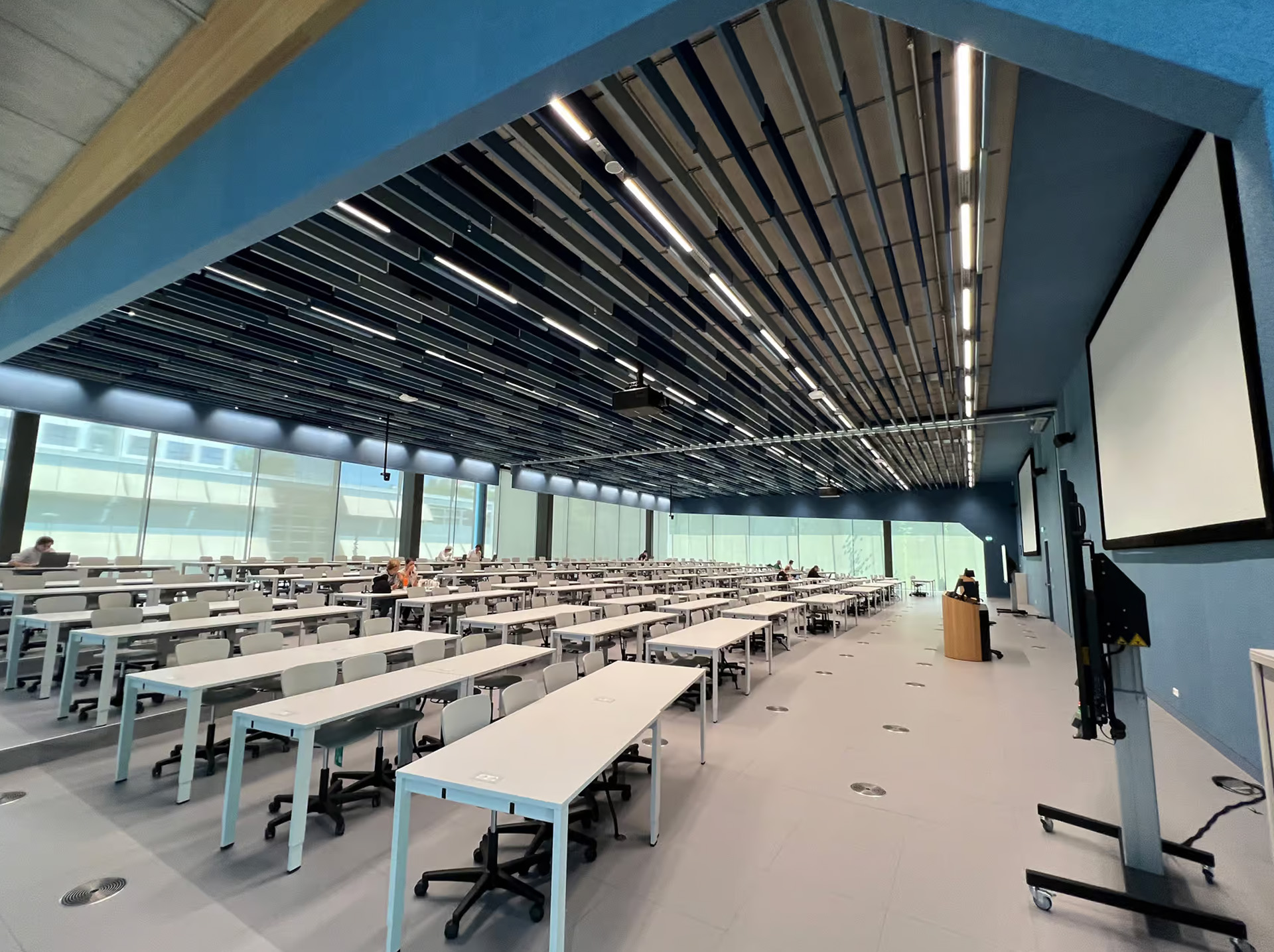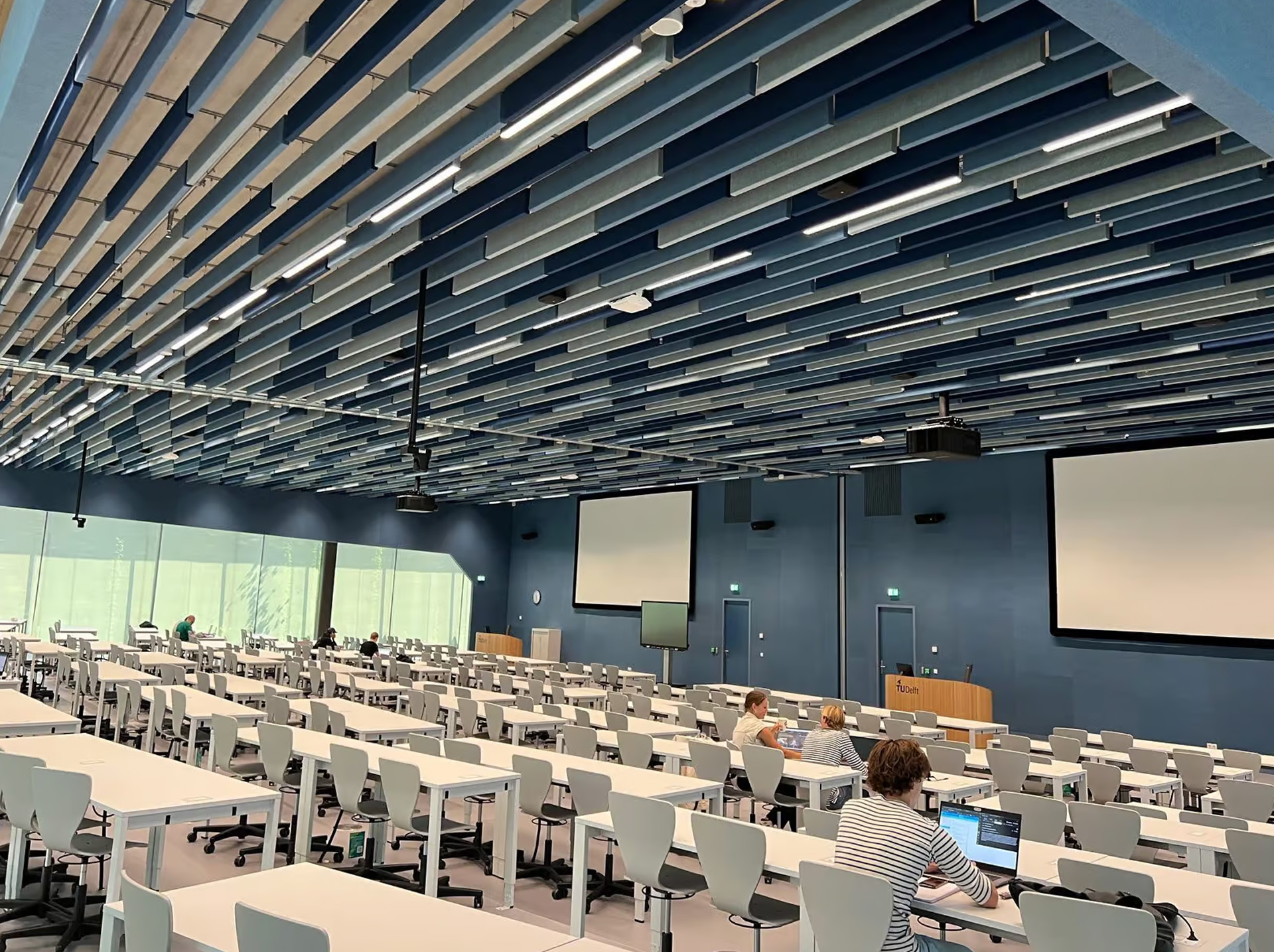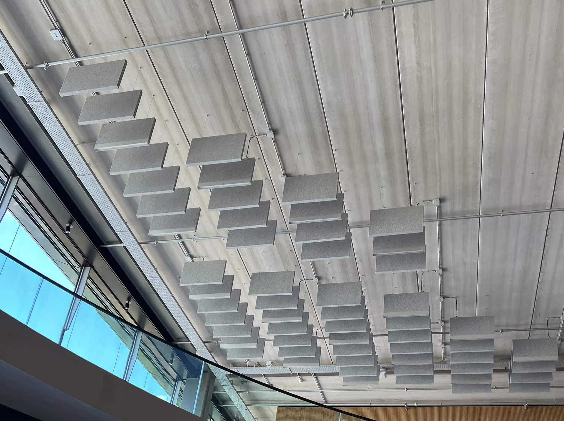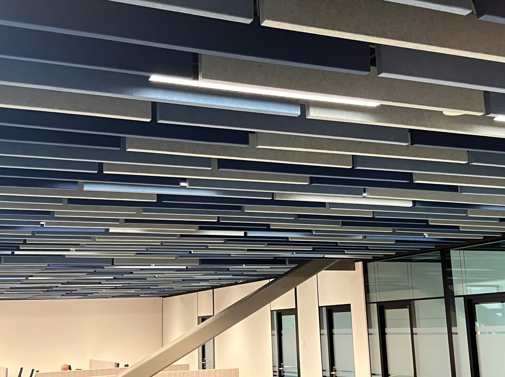 The hanging system helps hide cables and mechanical systems in open ceilings. It keeps the ceiling clean and organized. Maintenance teams can remove individual panels easily and reach the technical area above the ceiling when needed.