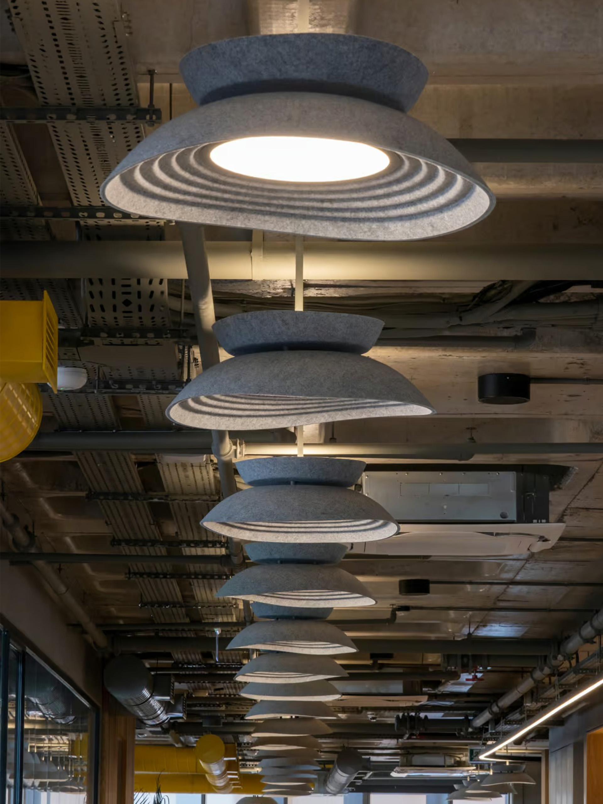 Offered in 53 Feltouch felt color options, Bowl allows designers to create flexible and expressive lighting compositions. With its lightweight suspended structure, it is suitable for offices, meeting rooms, collaborative spaces, and public interiors where both lighting and acoustic comfort are important.
