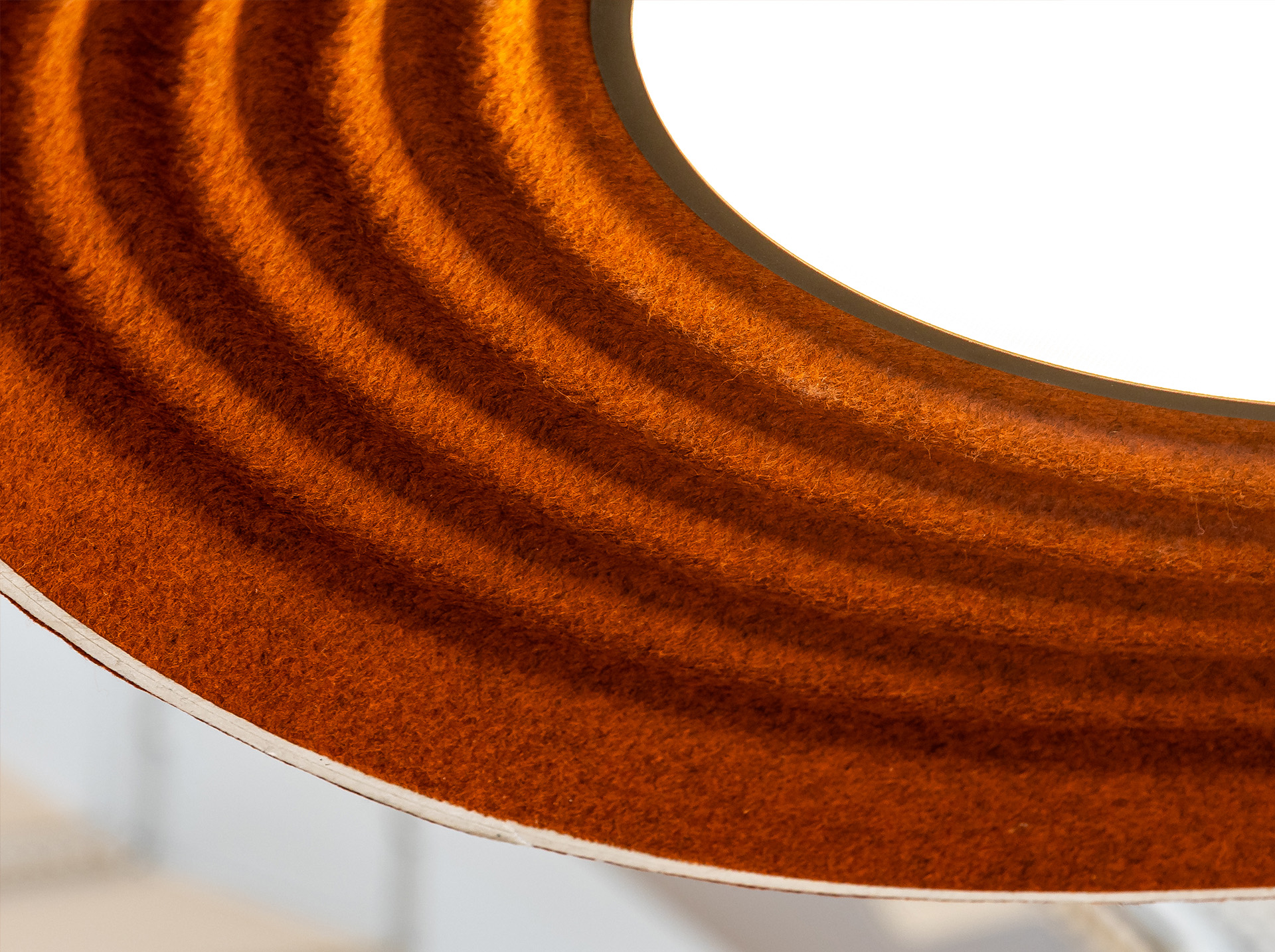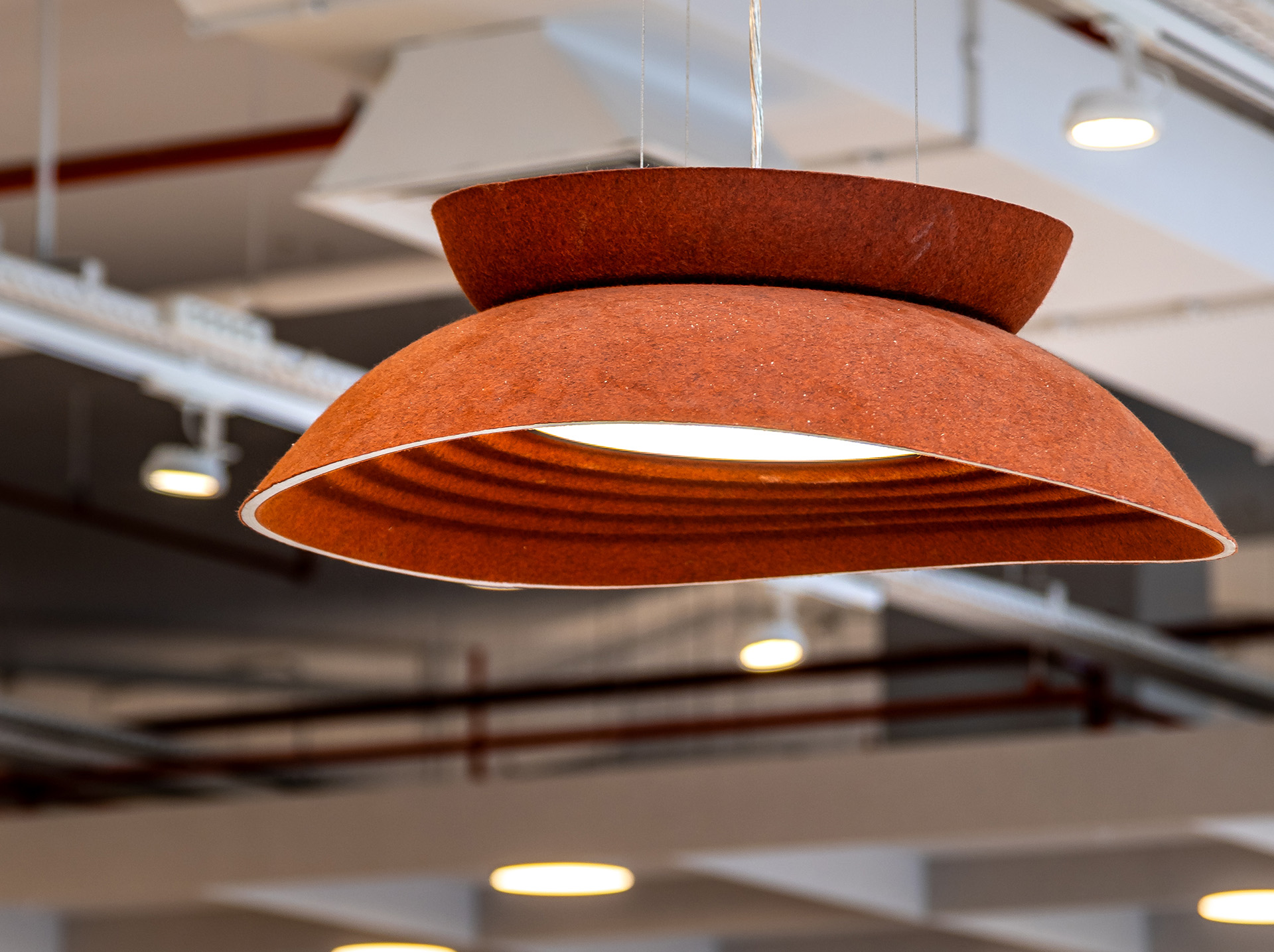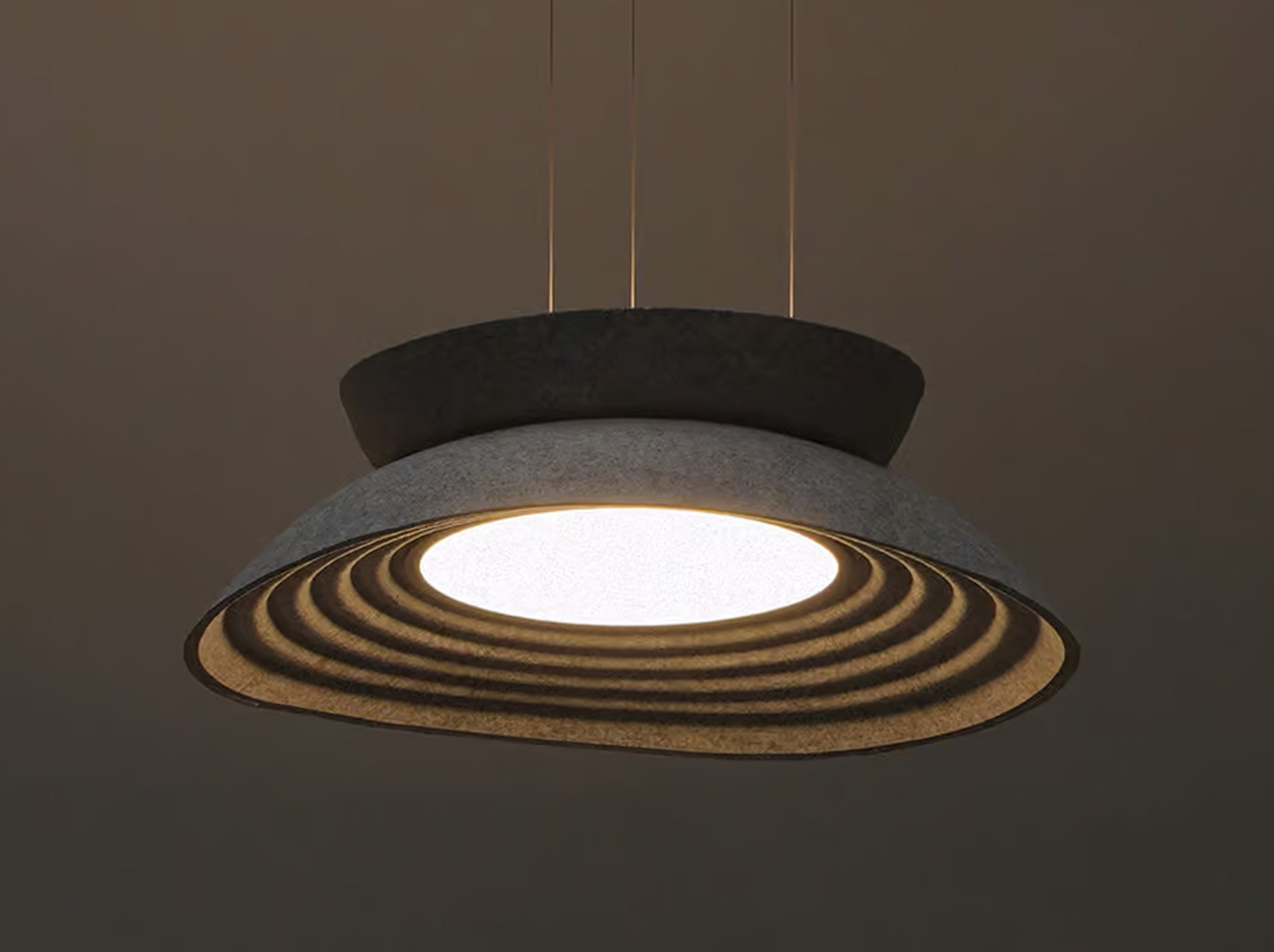 Manufactured from 50% recycled PET felt, Bowl combines sustainable material use with acoustic efficiency. The felt structure supports sound absorption while introducing a soft surface character to the design.