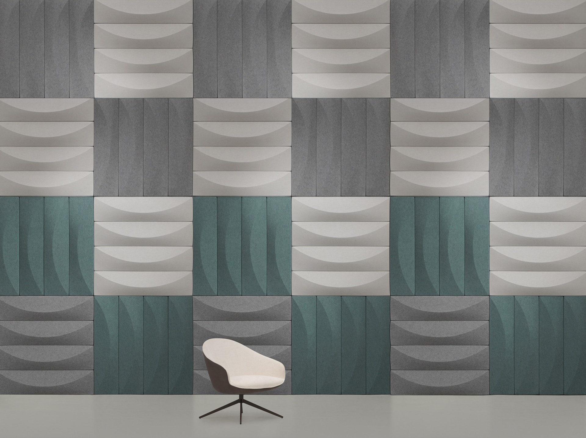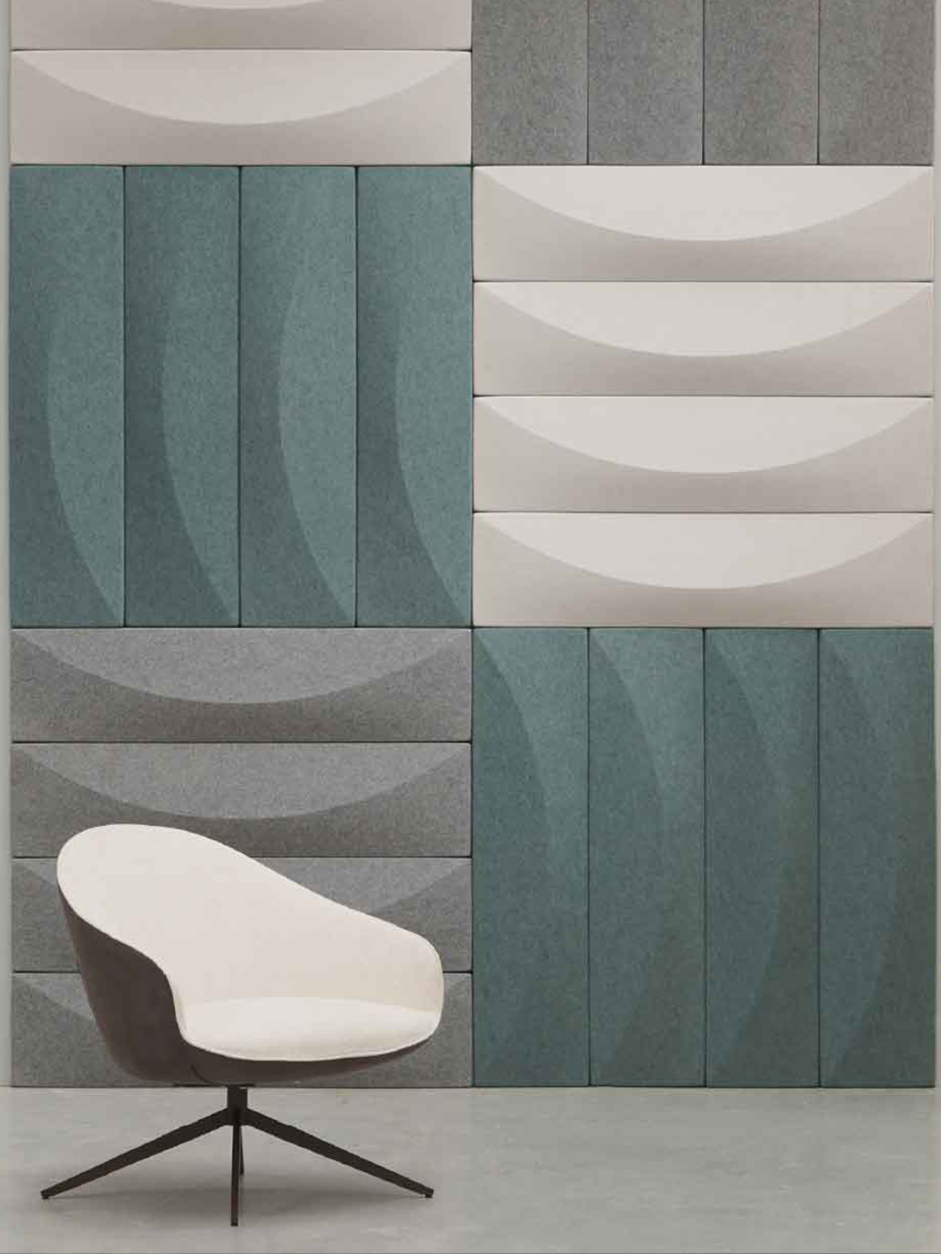 Reborn acoustic wall and ceiling panels improve sound comfort and add style to modern interiors. Their light and semi-rigid structure makes handling and setup quick and easy. In addition, the pin-friendly surface allows flexible mounting and supports modular layouts that change over time.