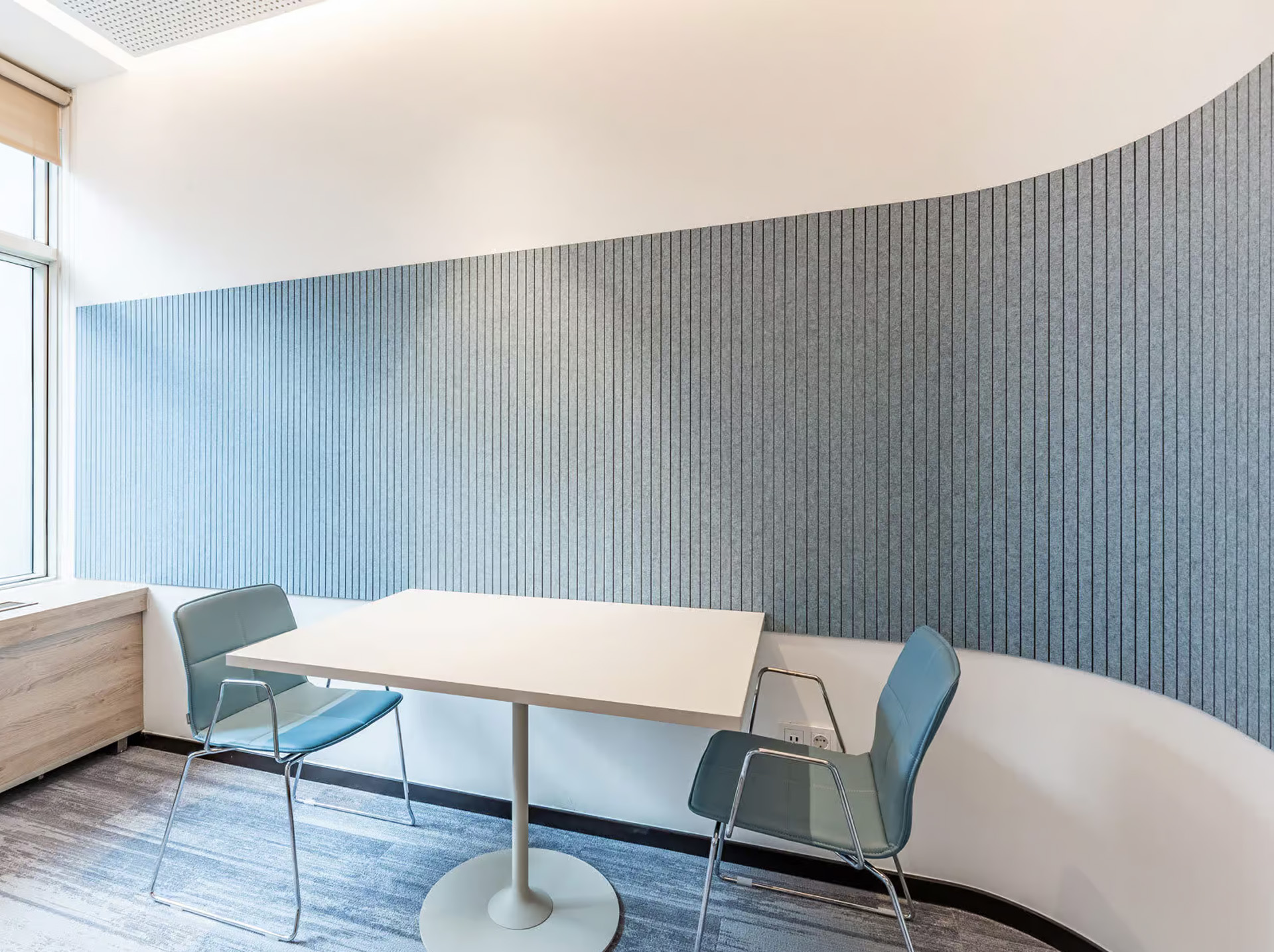 Designers often use Line panels in offices, meeting rooms, education spaces, hospitality interiors, and social areas. Panels can be installed individually or combined across larger wall surfaces. This allows designers to create continuous linear wall compositions.