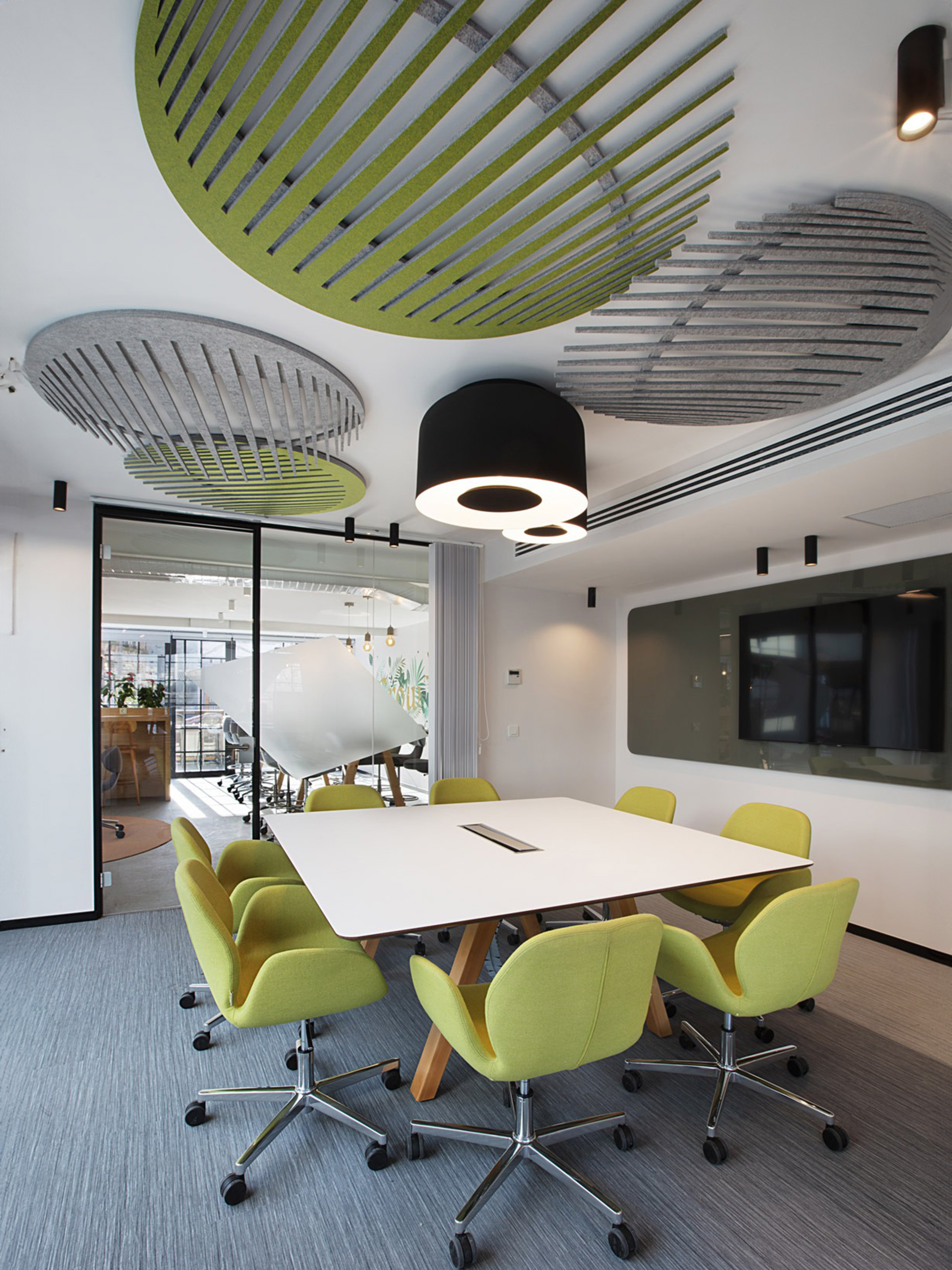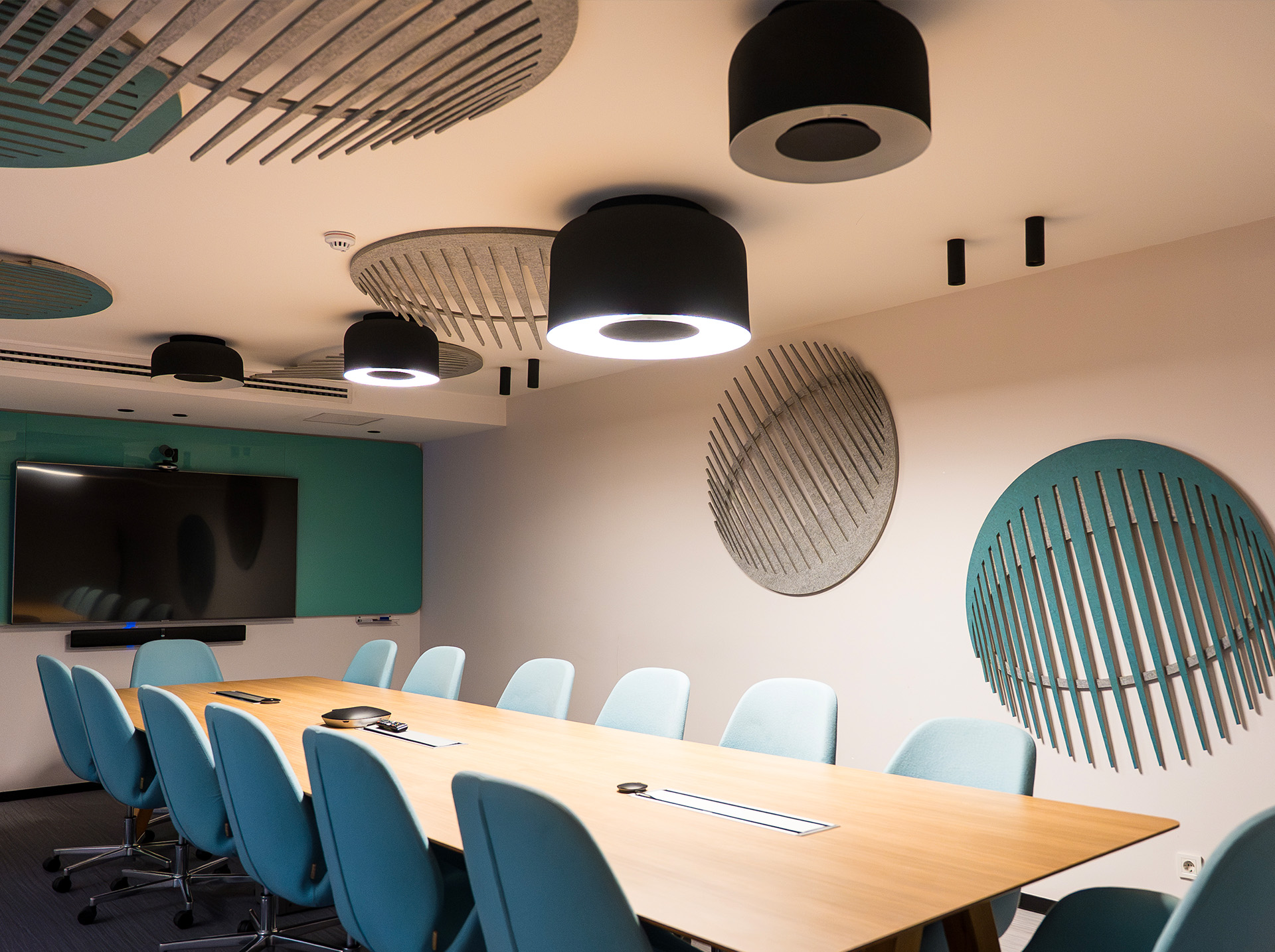 Suitable for ceiling and wall applications, the Moon acoustic panel offers an effective acoustic solution for focus-oriented interiors. Typical applications include open-plan offices, meeting rooms, co-working spaces, and educational facilities. It is also suitable for cultural venues, libraries, auditoriums, and large volume interiors such as lobbies and atriums.