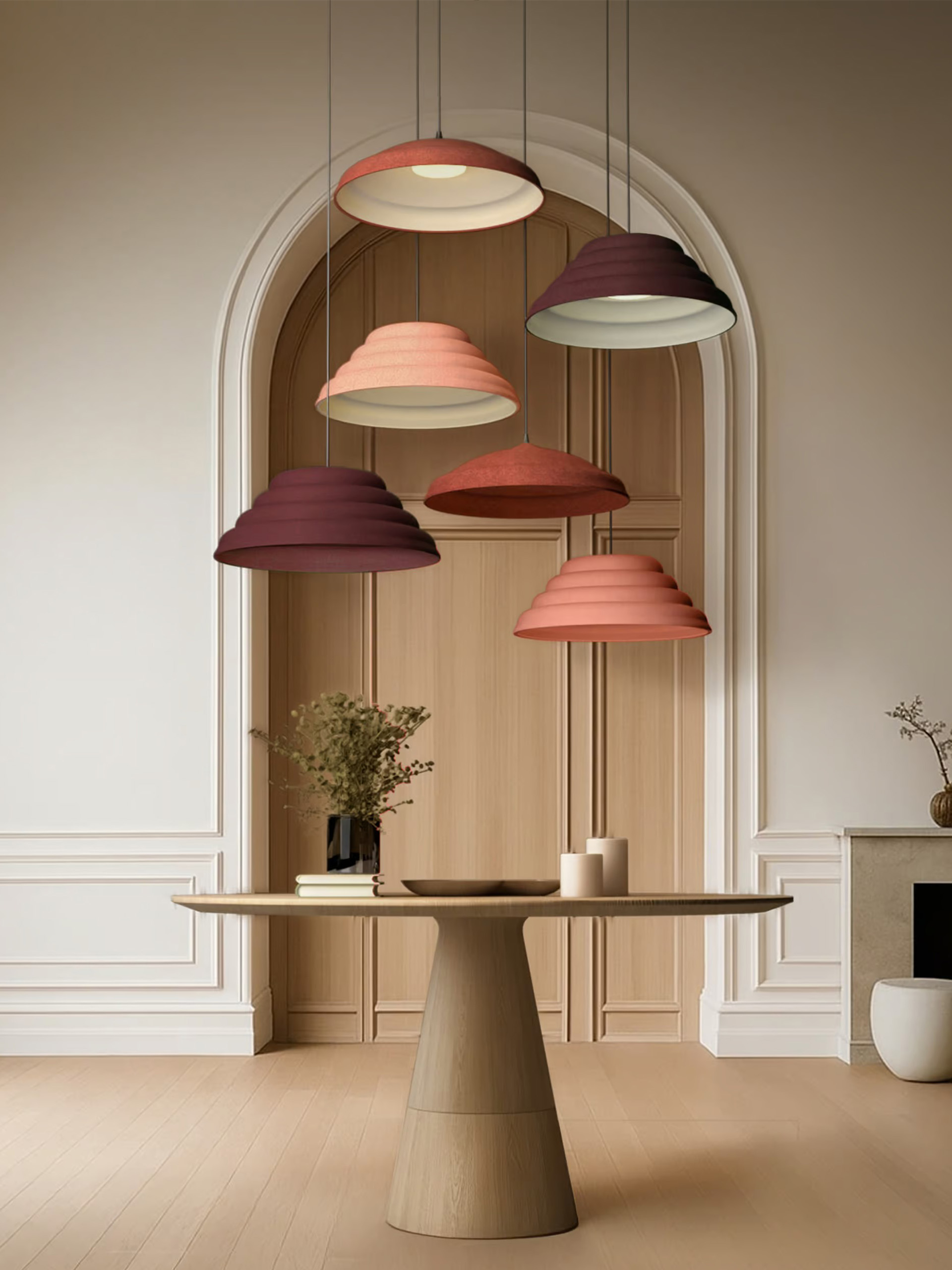 Nube was originally developed for E27 socket types with UFO-type LEDs at 3200K. The collection now also includes a version with an integrated LED module. This option offers 2700K, 3000K, and 4000K color temperatures. It also supports ON/OFF, DALI, and CASAMBI control systems for flexible lighting management.