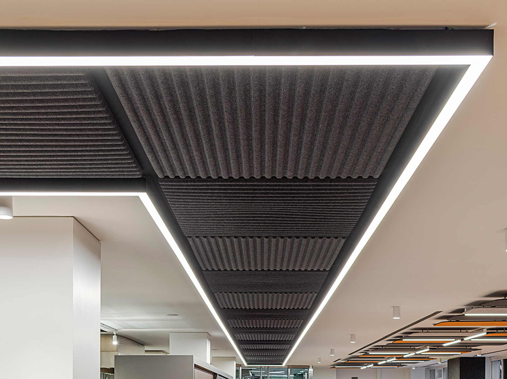 As part of the Sense Collection, Parallax reflects Feltouch’s expertise in advanced felt forming and material innovation. The precise pressed felt technology enables crisp geometries, dimensional consistency, and large-scale panel production while maintaining acoustic efficiency.