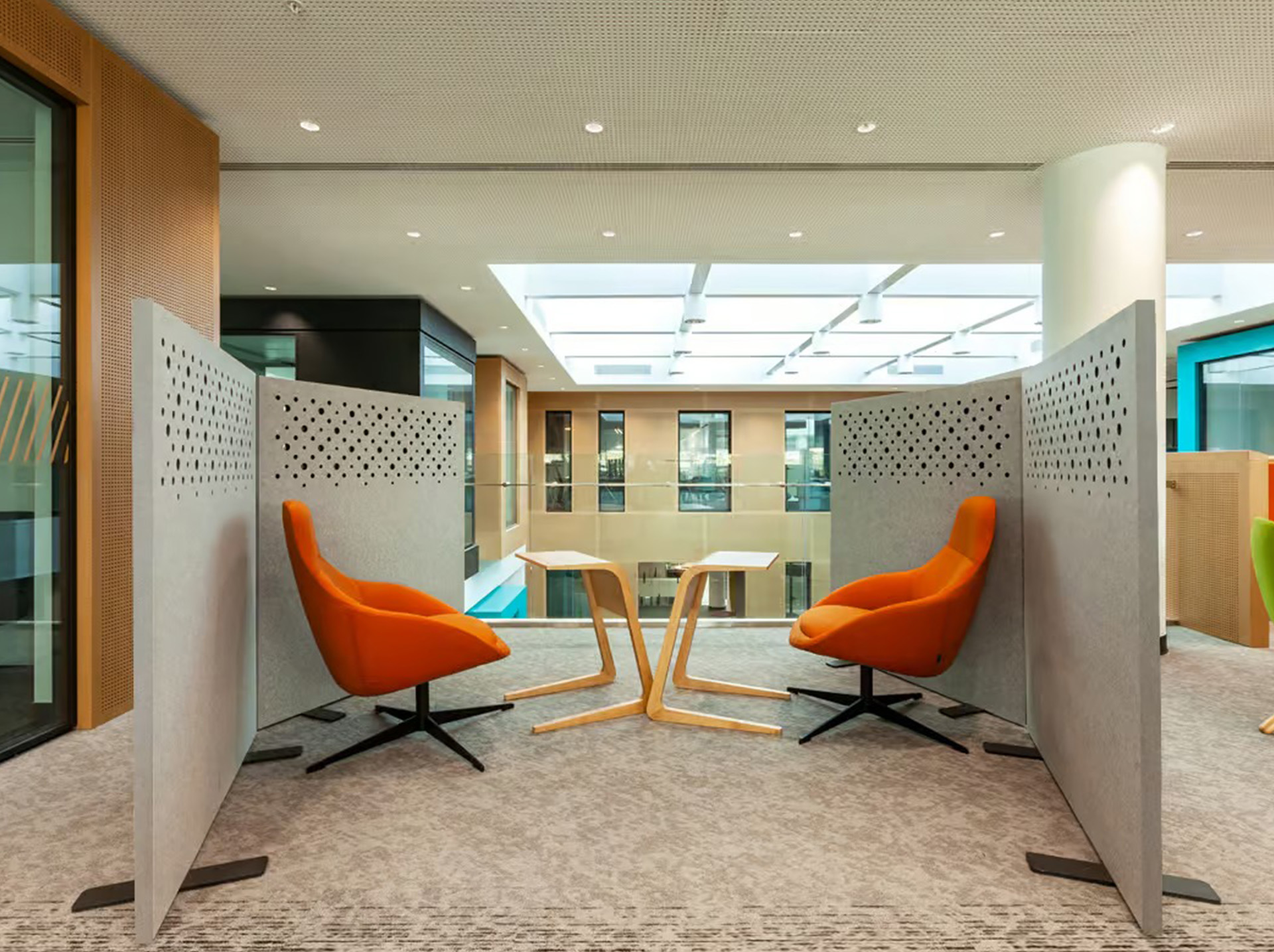 Recta works well in offices, meeting areas, restaurants, libraries, and shared workspaces. The design combines acoustic performance, sustainable materials, and simple aesthetics for contemporary interiors.