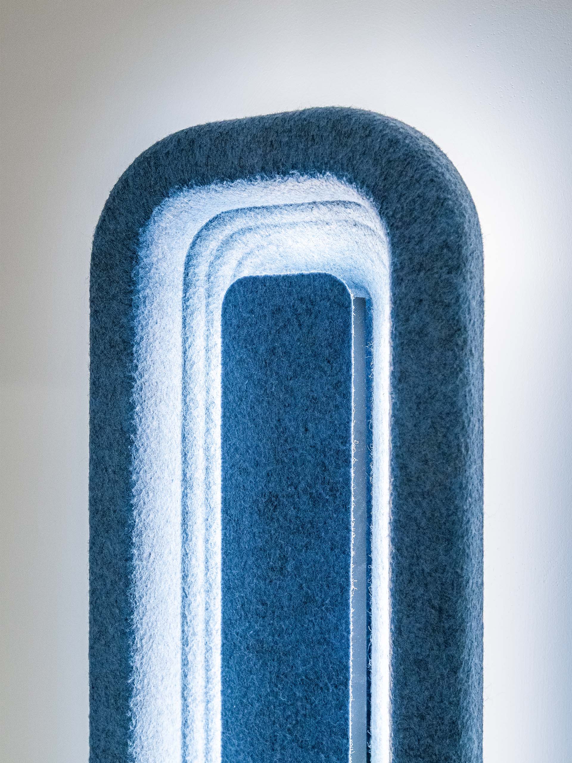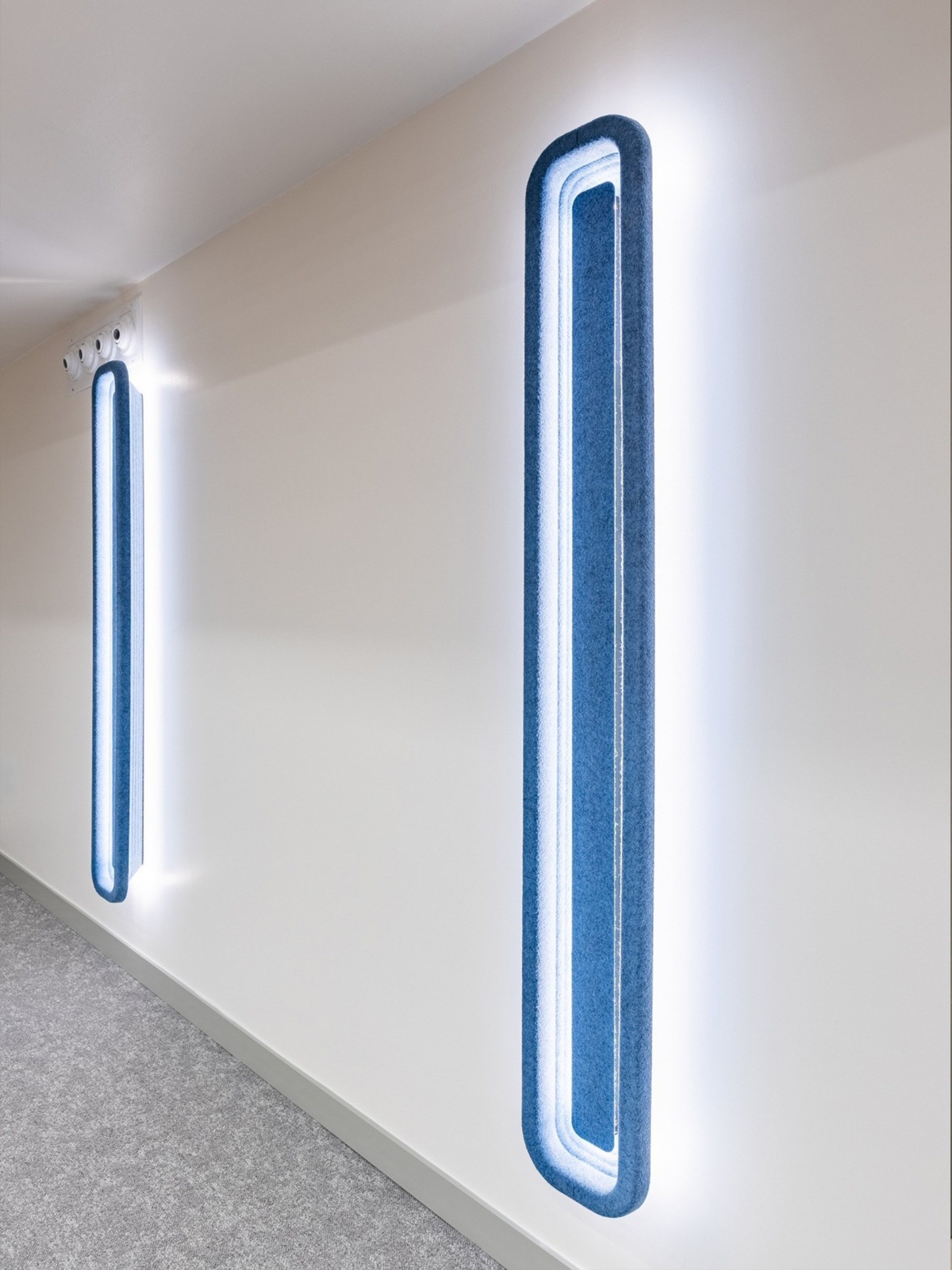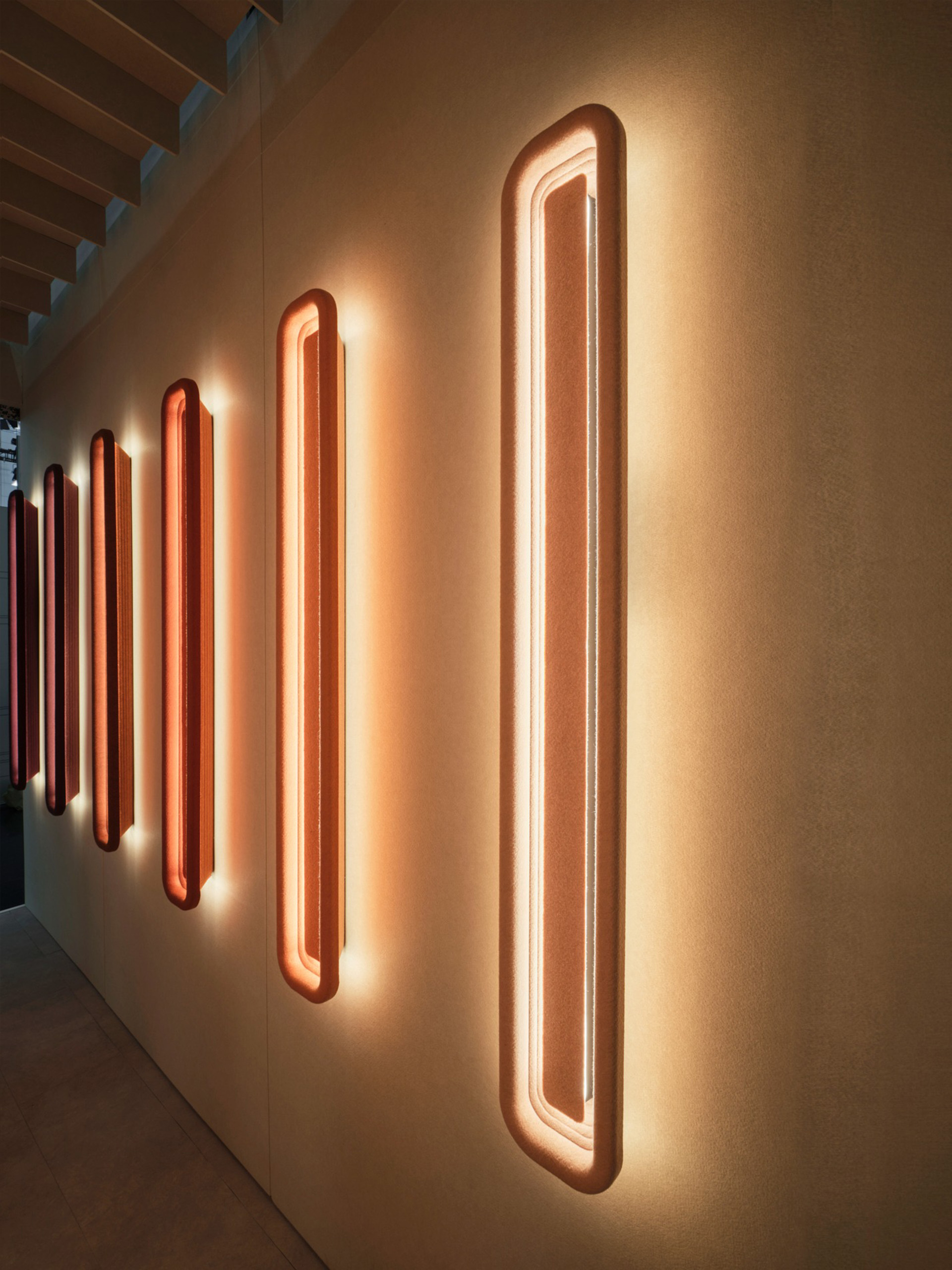 The luminaire body uses a single-piece form produced from felt made with 50% recycled PET bottles. This material choice supports sustainability while delivering effective sound absorption. By reducing reverberation, Line helps create calmer and more focused indoor environments. It performs particularly well in offices, corridors, and shared spaces where acoustic comfort and lighting quality are equally important. Line is available in 2700K, 3000K, and 4000K color temperature options.