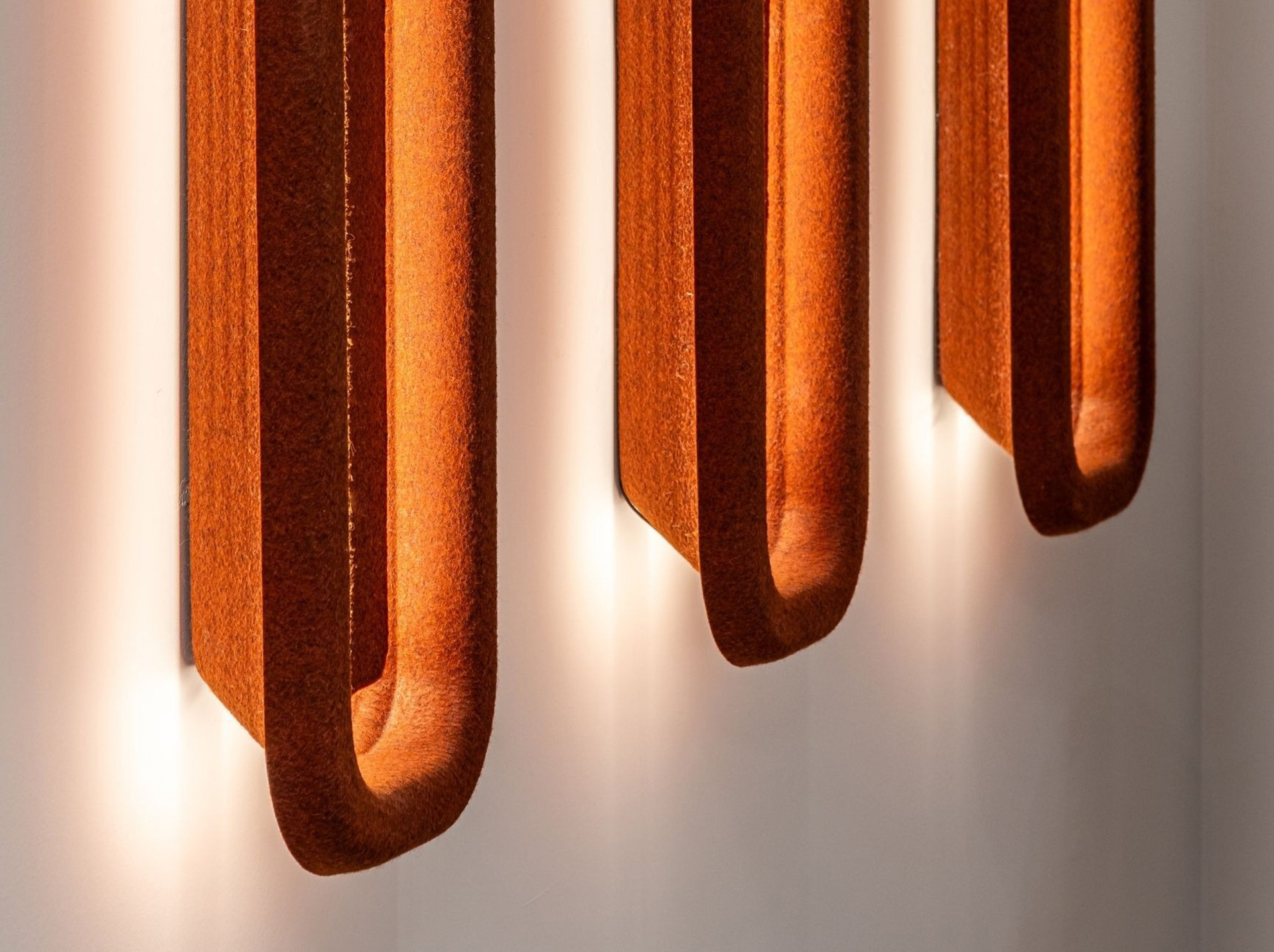 Line Wall Lamp is a wall-mounted lighting solution that combines illumination and acoustic performance in a single, refined form. Designed by Ali Berkman, Line features a soft, curved geometry that improves both visual comfort and acoustic quality in interior spaces.