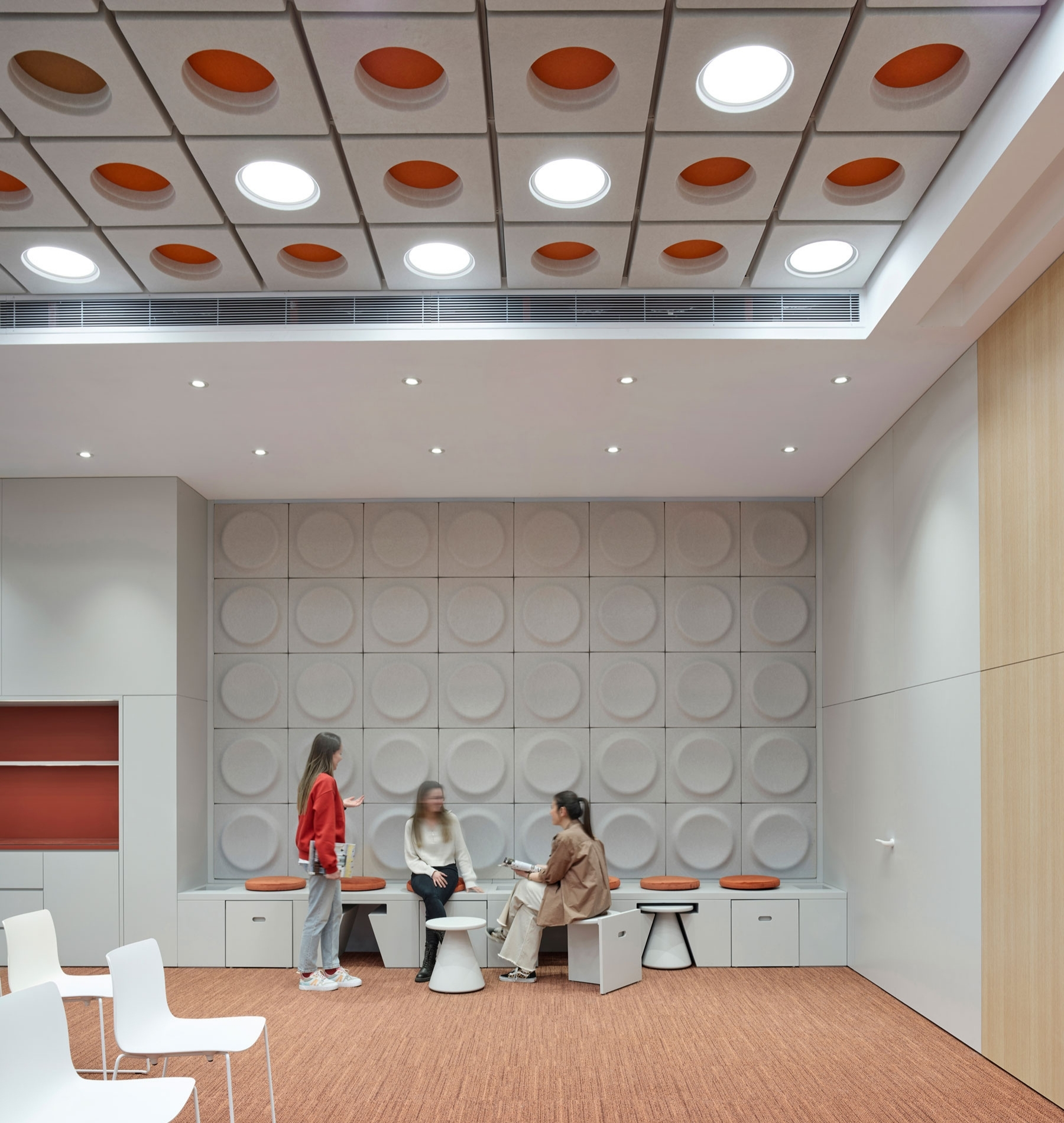 Designed for standard lay-in ceiling grids, the panels create clean and modern ceiling surfaces. Their geometry adds rhythm and visual depth to interiors while improving acoustic comfort.
