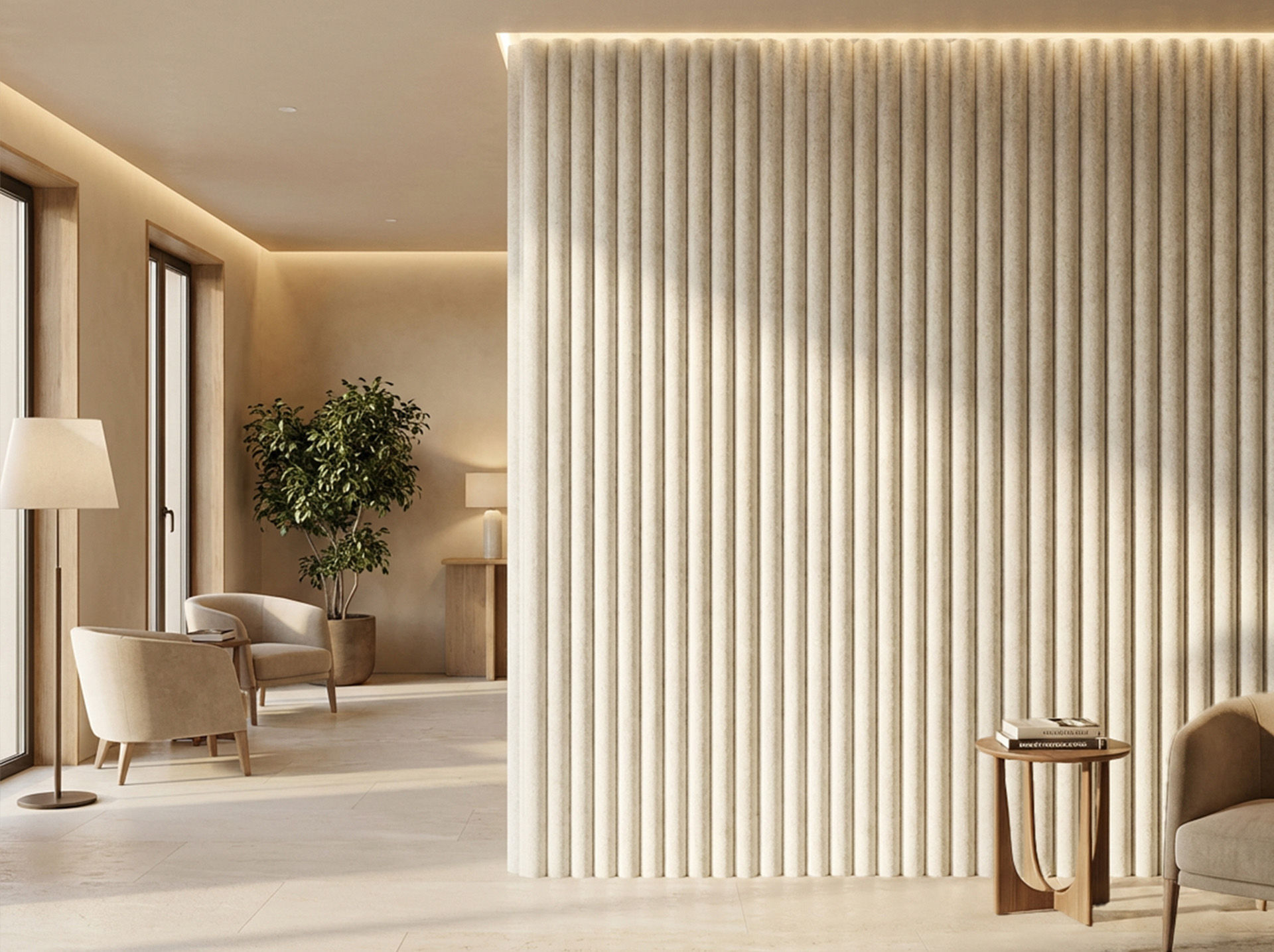 The product is available in 53 Feltouch PET felt colors. This wide palette allows designers to match different interior concepts and create customized wall compositions. From subtle tones to bold contrasts, Tunnel supports a wide range of creative design approaches.