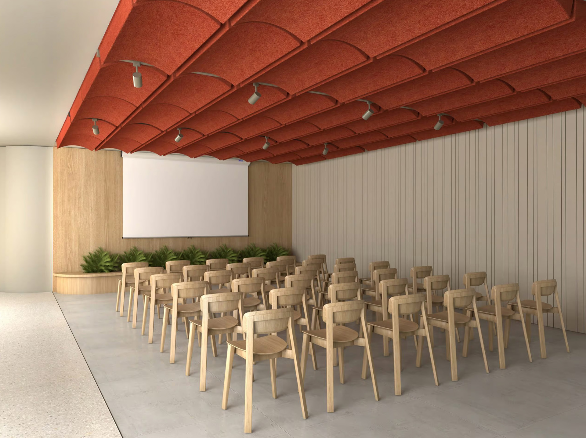 Volta Lay-In panels are suitable for offices, educational spaces, and public interiors. They create visually dynamic ceilings while improving acoustic comfort.