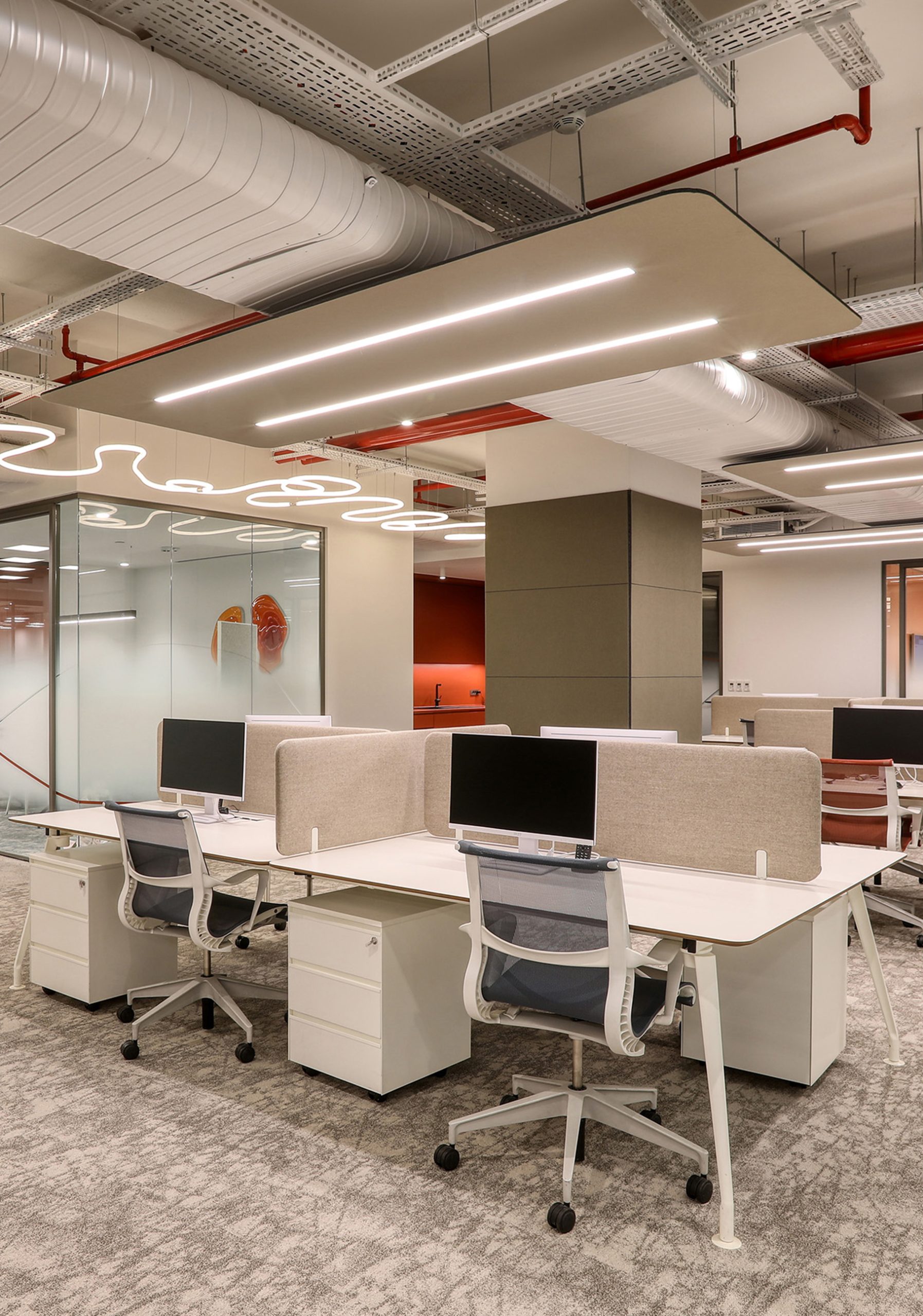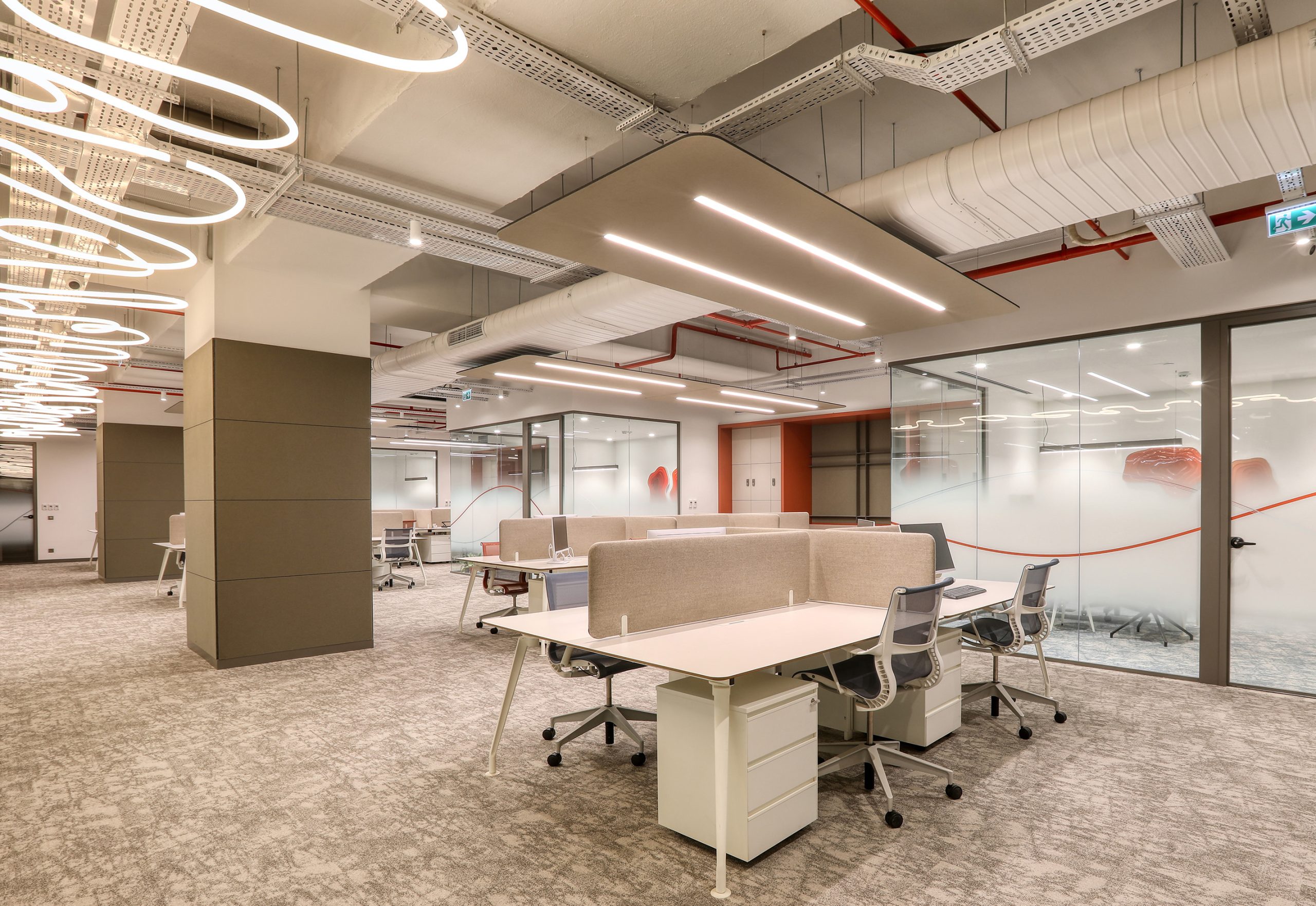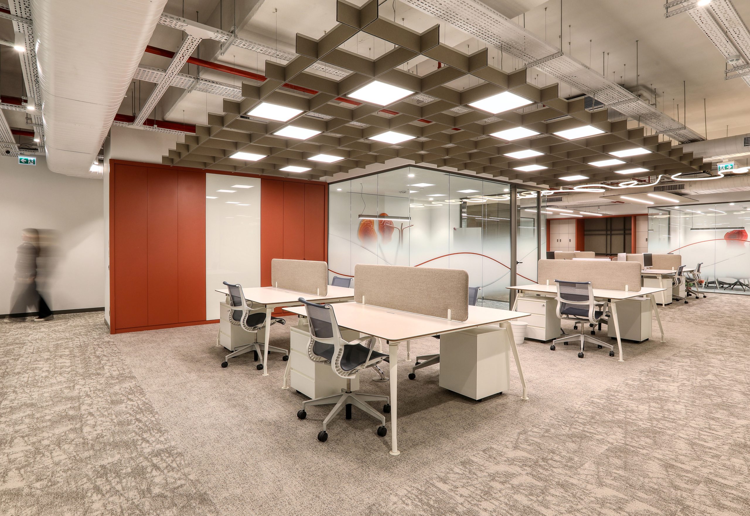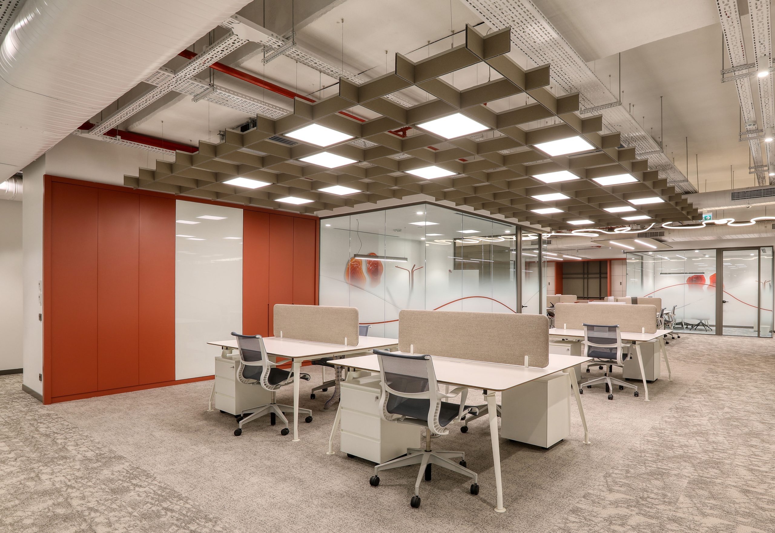 In busy office environments, conversation and human traffic increase background noise. This noise spreads easily in open areas. As a result, employees may lose focus. At Aztek Teknoloji, the acoustic design controls reverberation time and keeps the space open and clear.