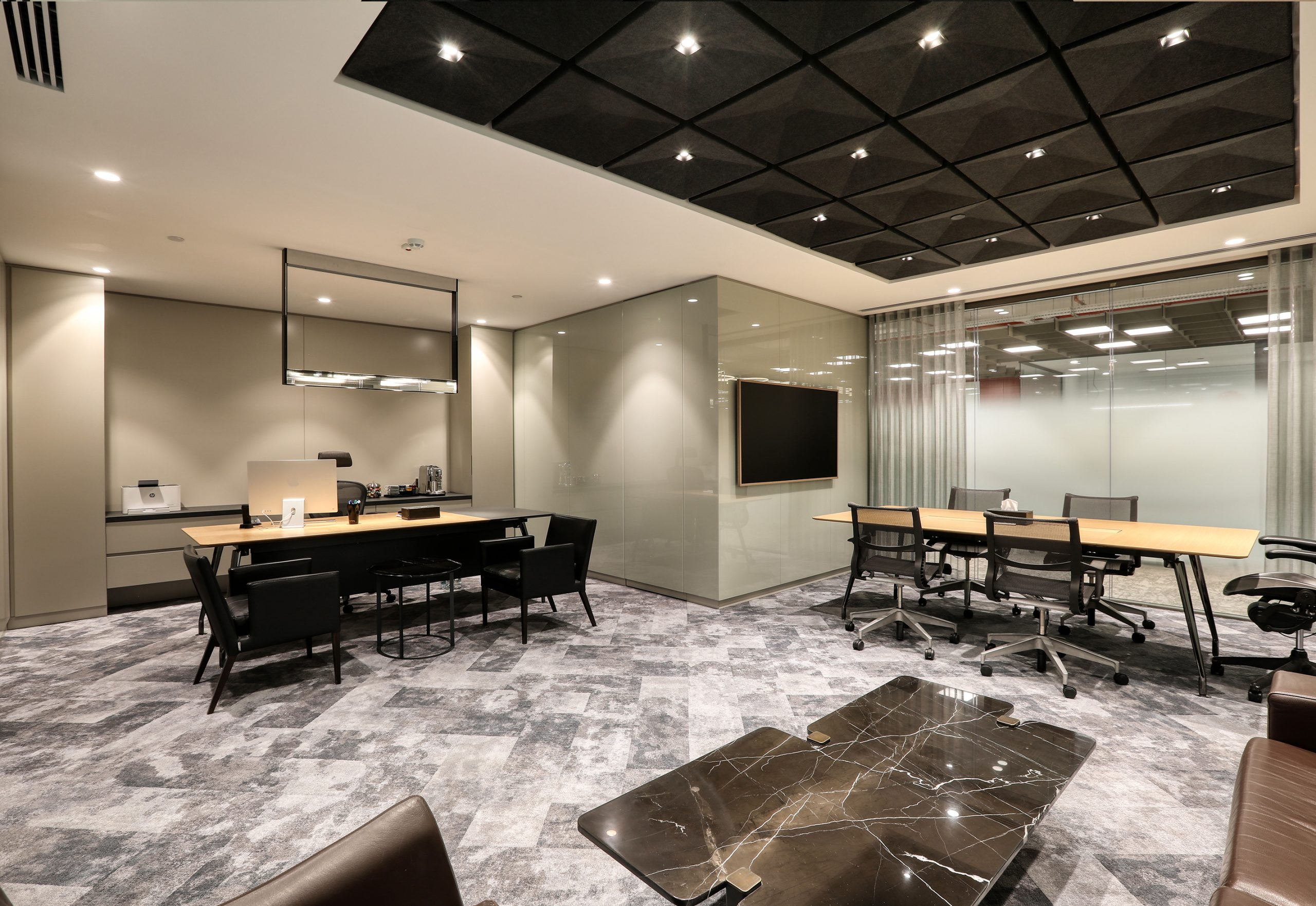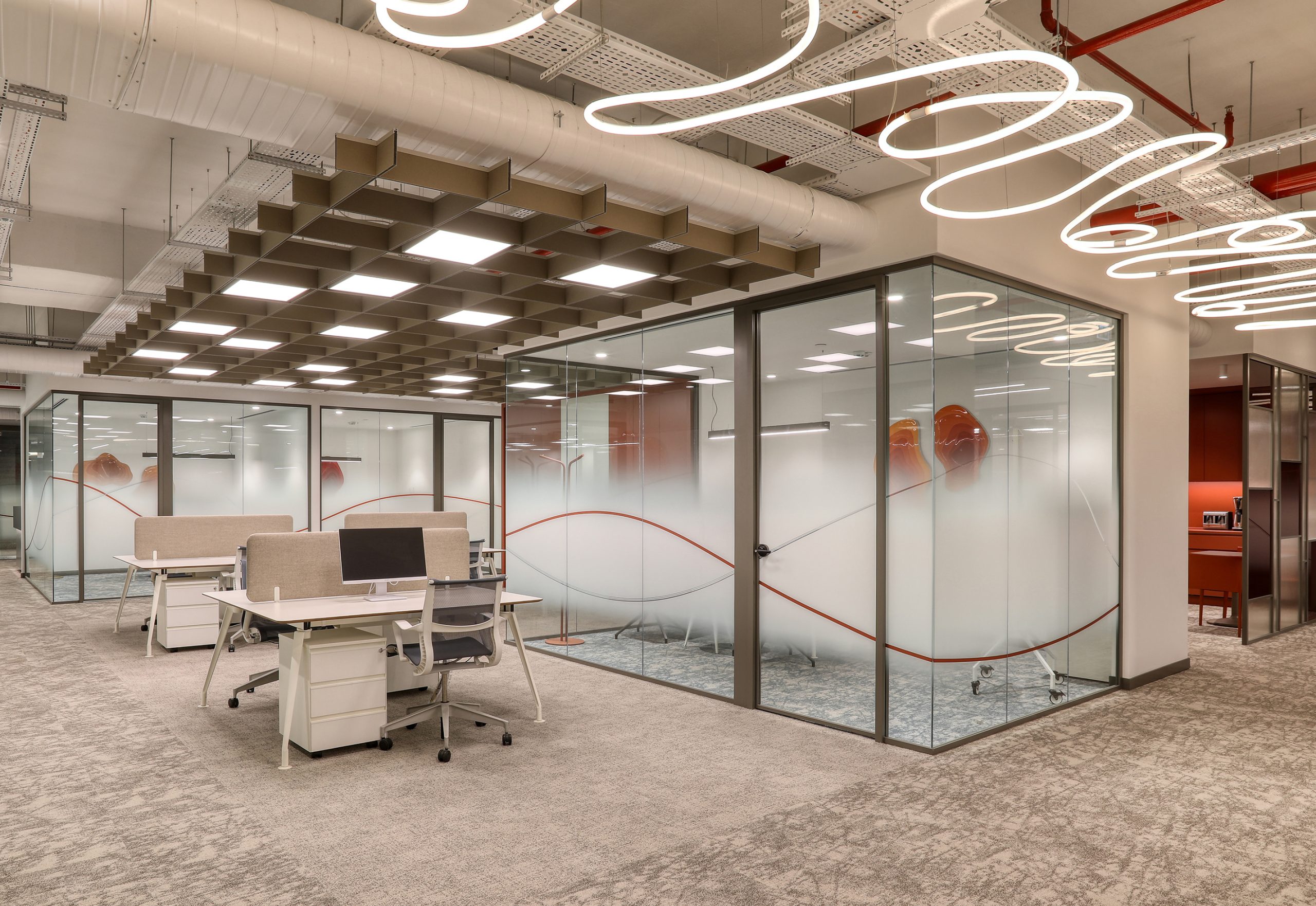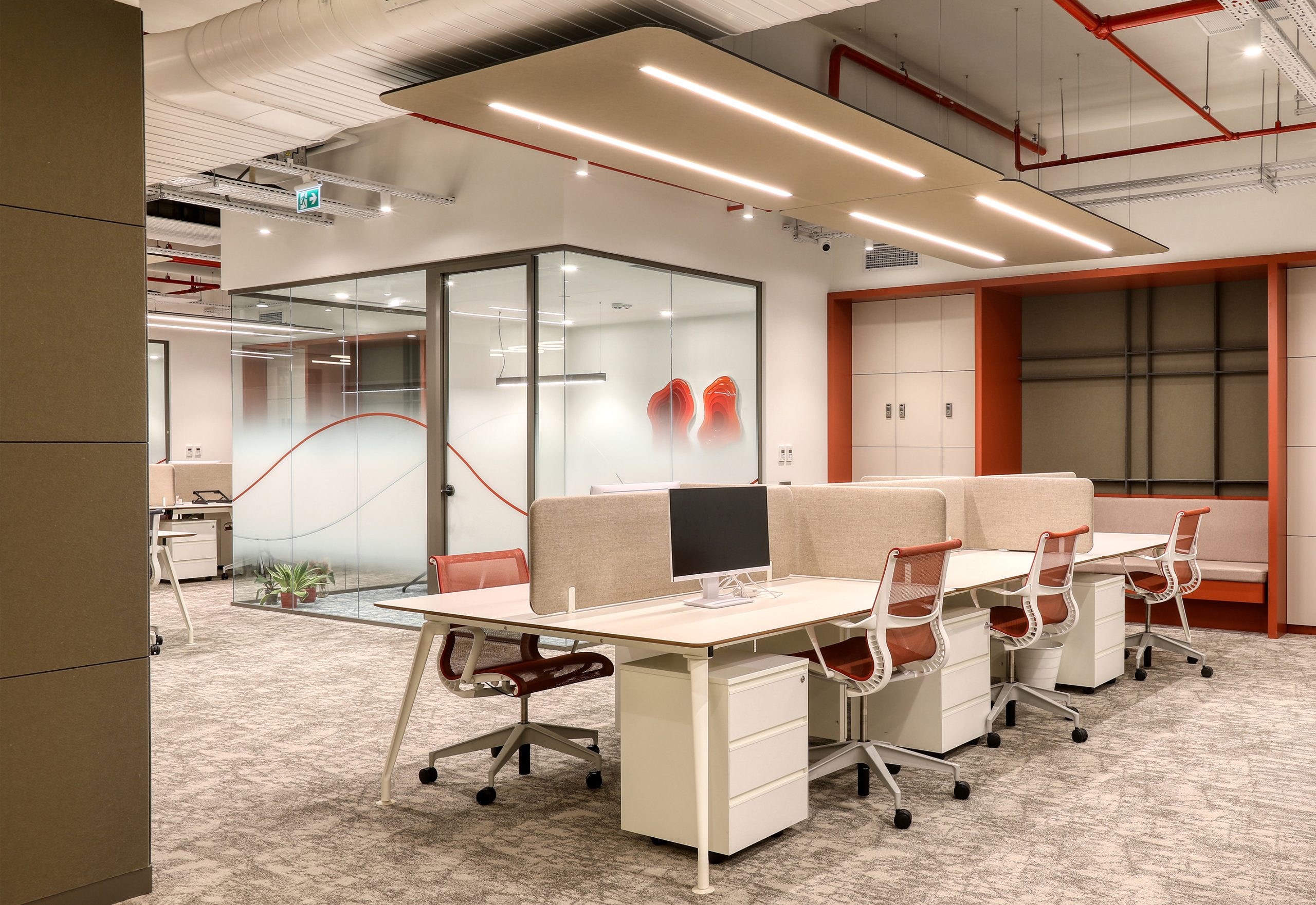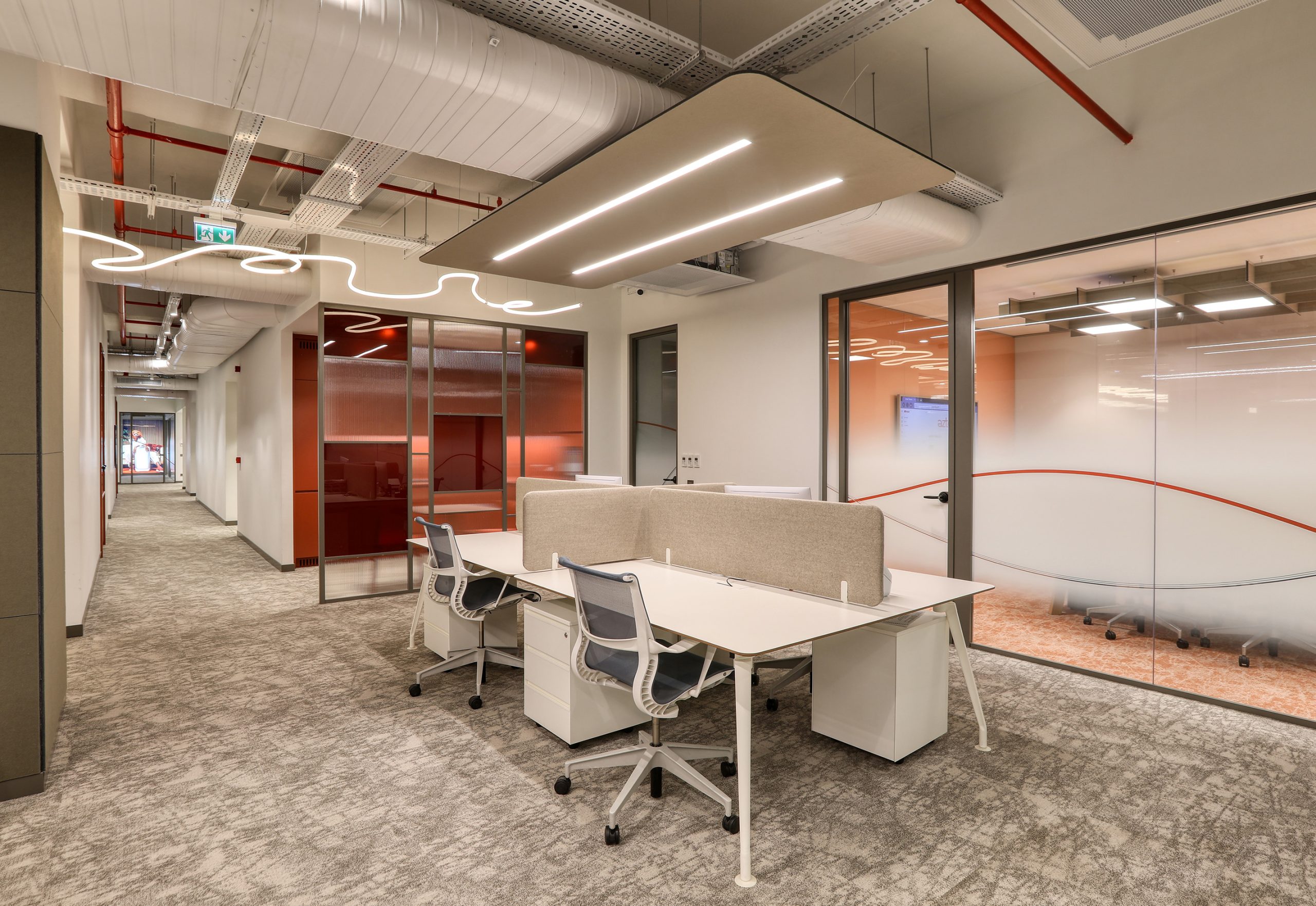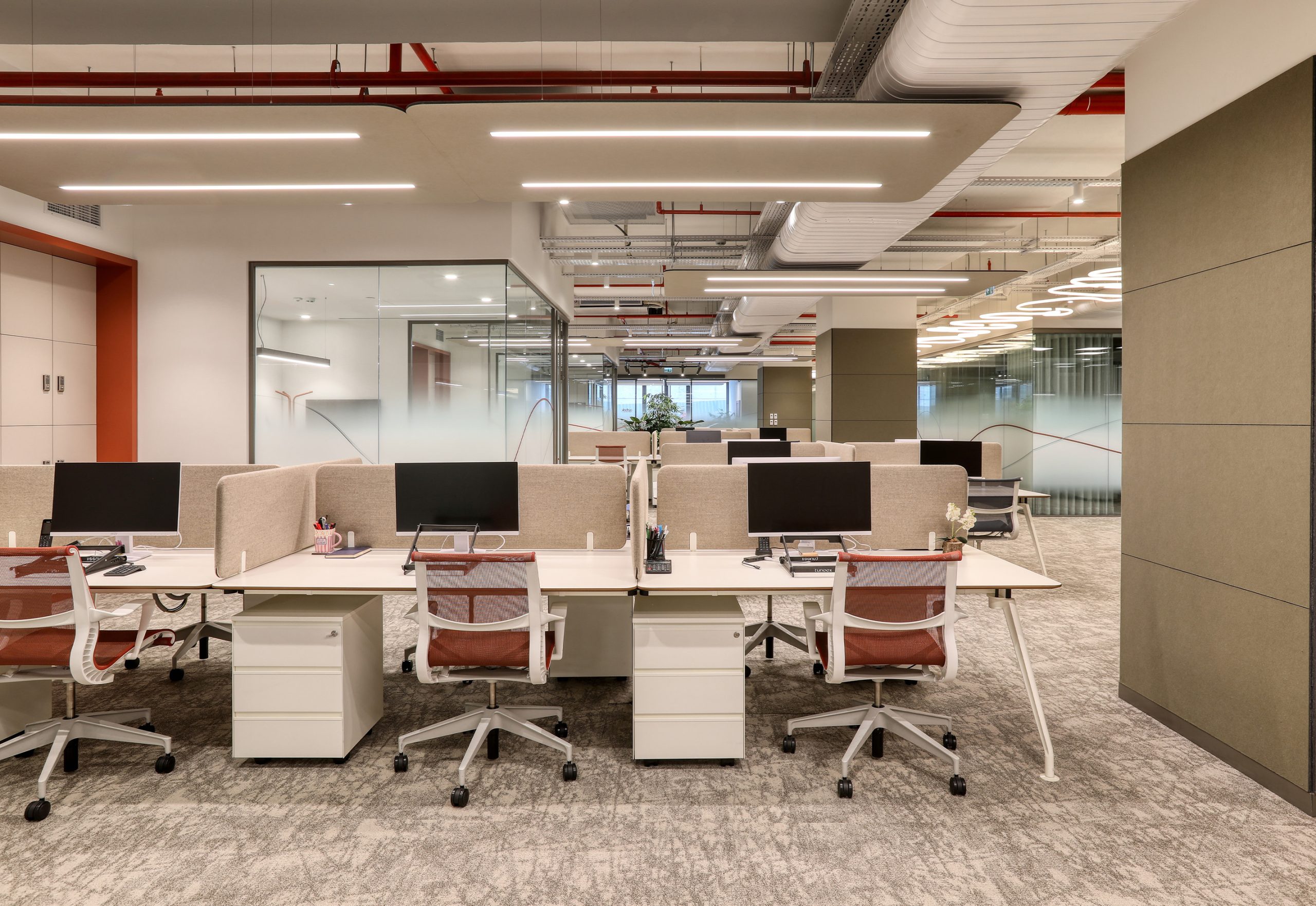 In busy office environments, conversation and human traffic increase background noise. This noise spreads easily in open areas. As a result, employees may lose focus. At Aztek Teknoloji, the acoustic design controls reverberation time and keeps the space open and clear.