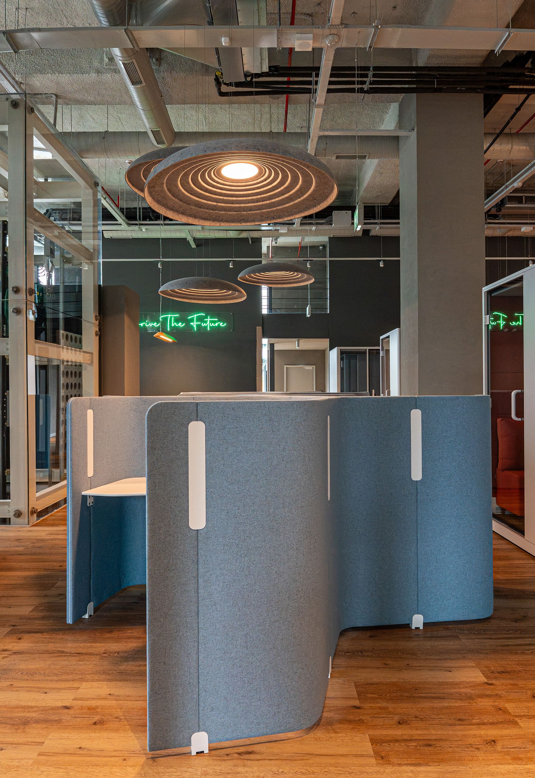 Meanwhile, the walls of the open office areas feature Octopus wall panels. Their organic geometry adds visual texture while also helping control noise levels typically generated in collaborative workspaces.