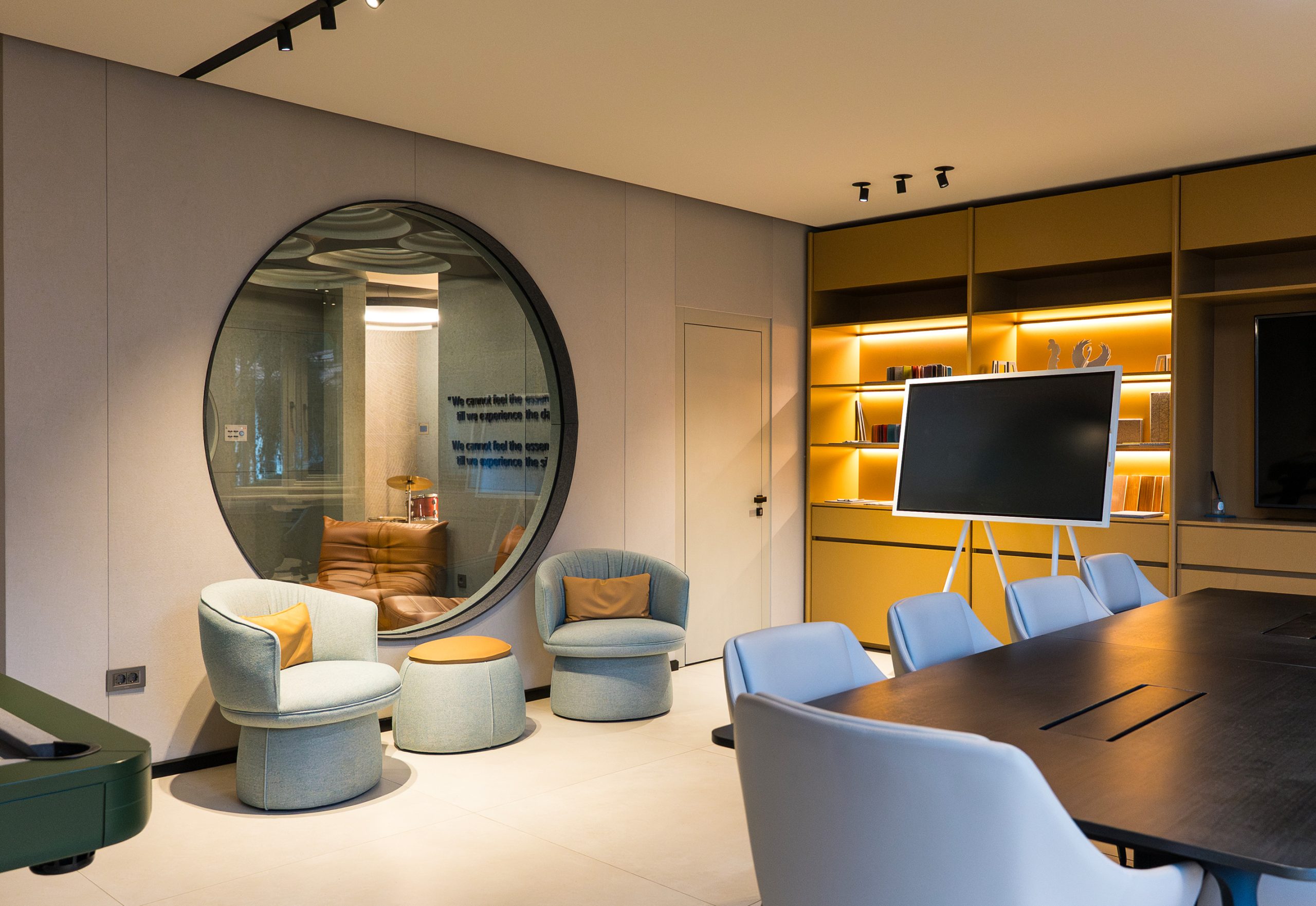 Feltouch HQ is designed as a flexible and experience-driven workplace that supports collaboration, creativity, and acoustic comfort. The interior layout offers adaptable spaces for focused work, informal meetings, brainstorming sessions, and social interaction, allowing users to easily find environments that suit different working styles.