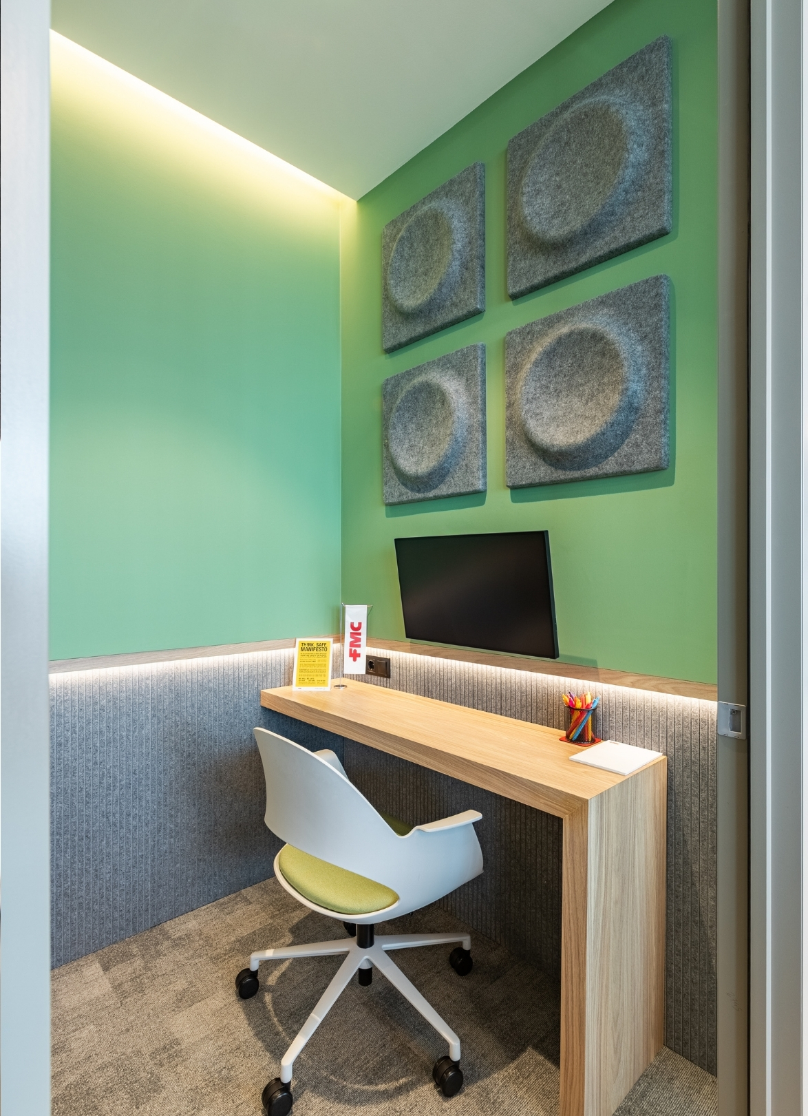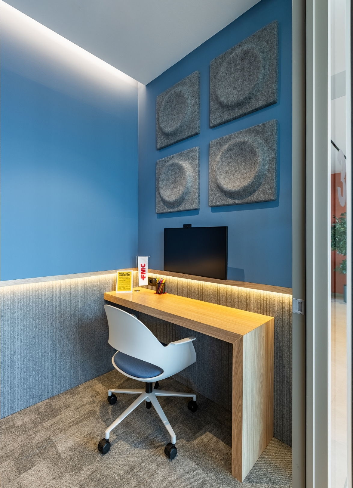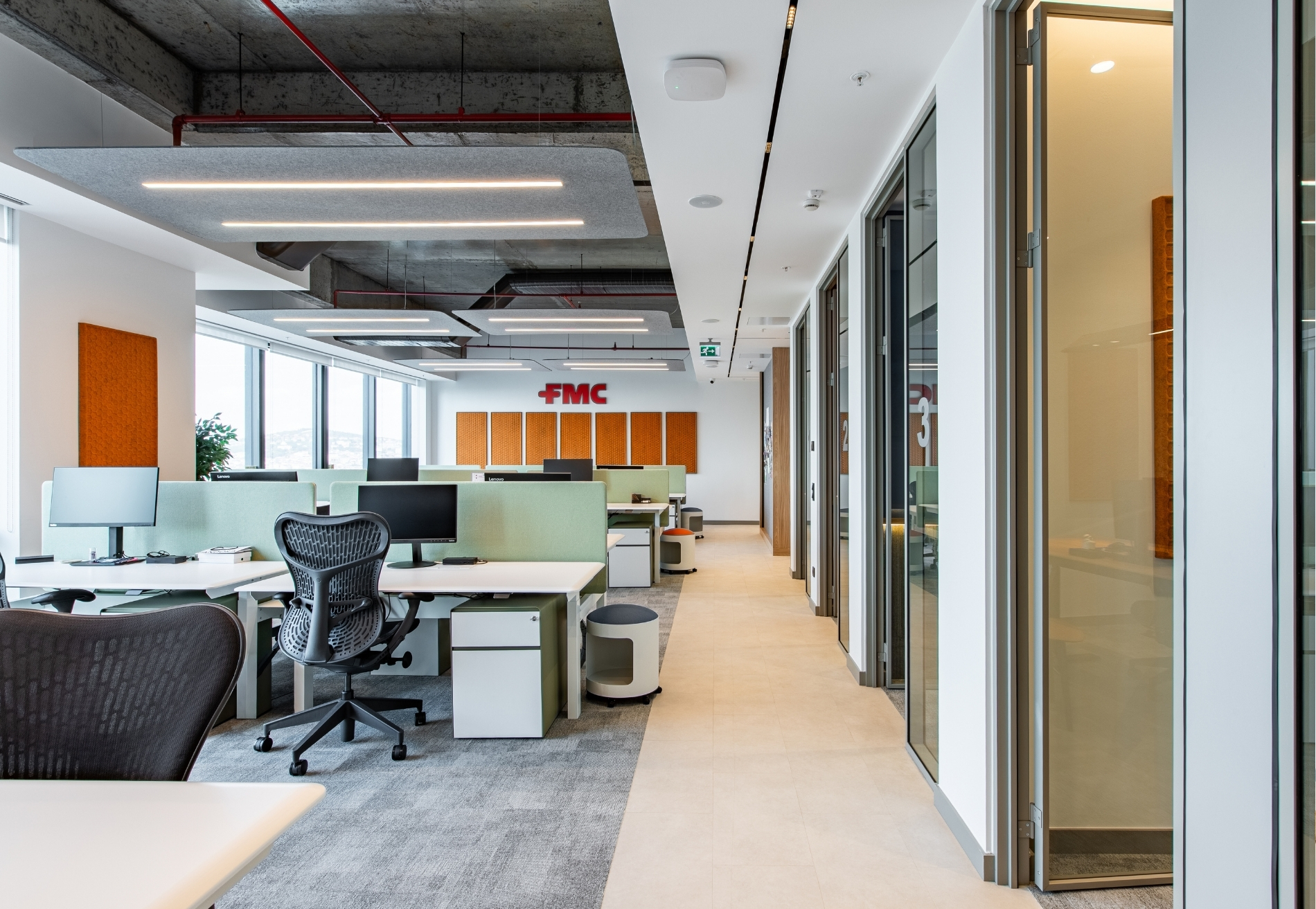 Through this holistic approach, the FMC Office achieves a modern, comfortable, and visually cohesive working environment.