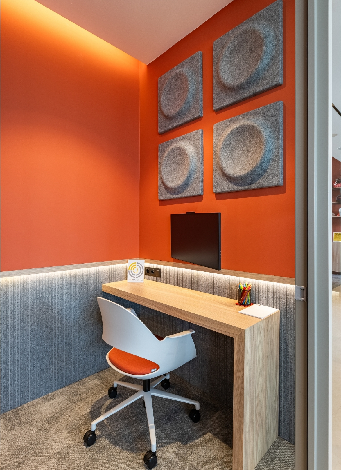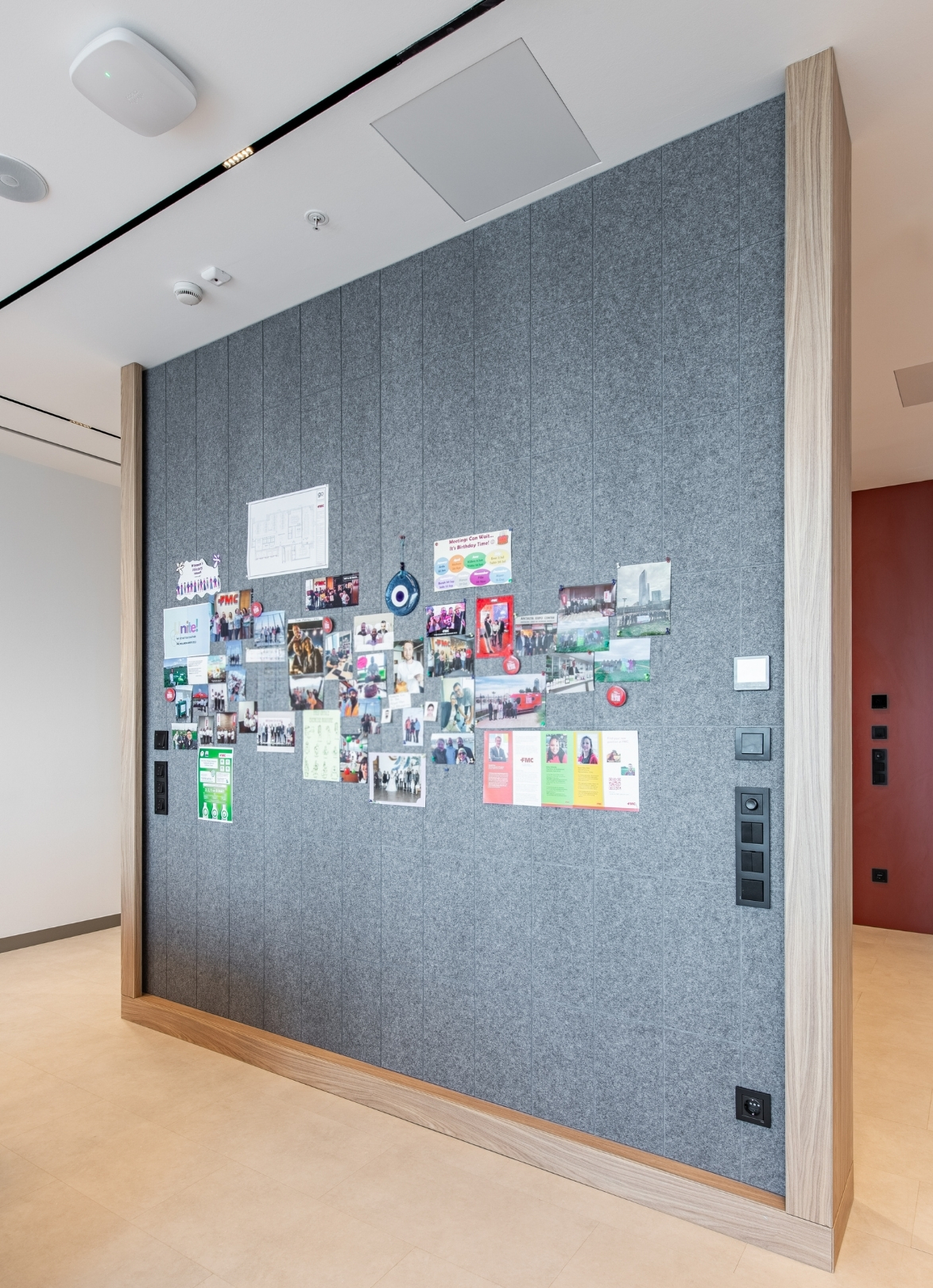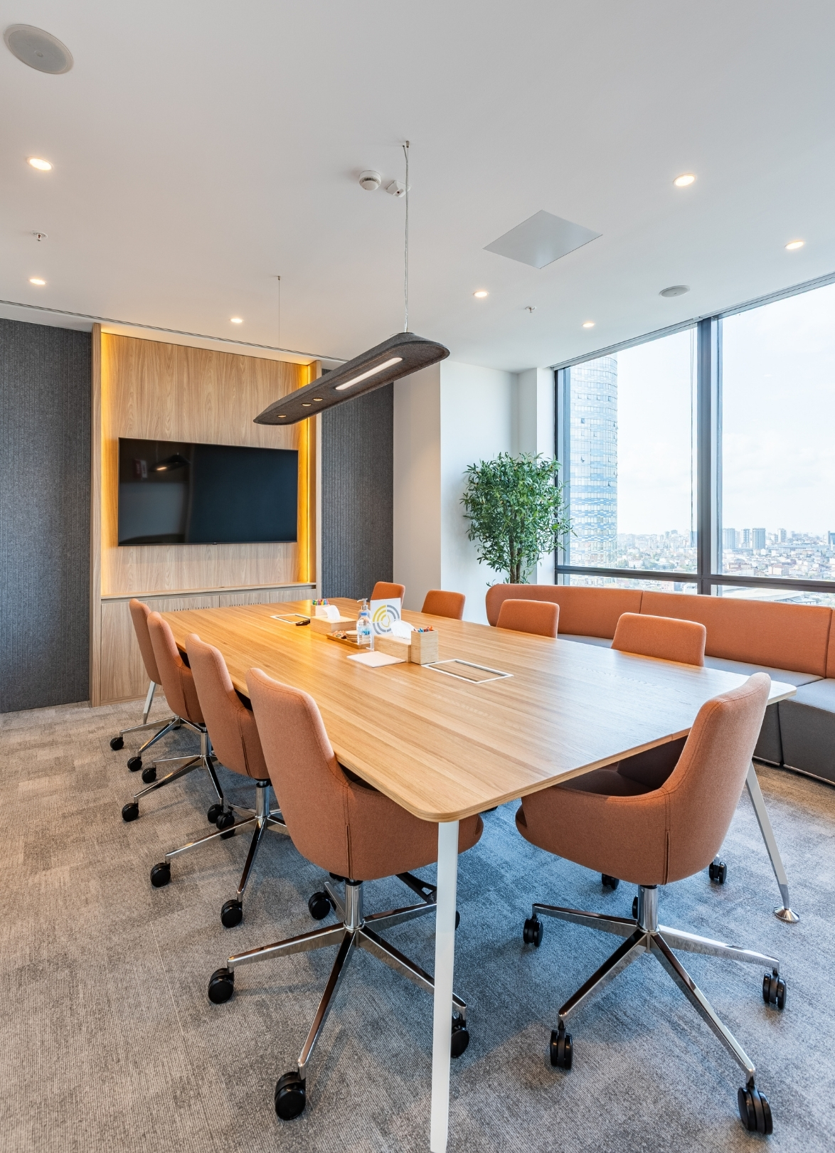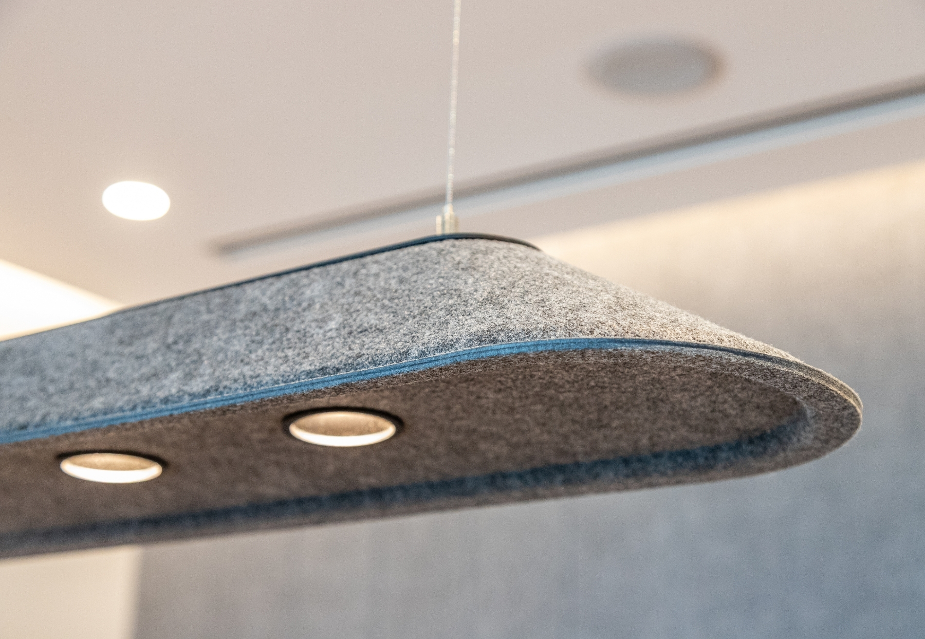 Feltouch provided customized acoustic solutions for the FMC Office project, designed by Goconcept, combining aesthetics and functionality in harmony. The project reflects Feltouch’s approach to innovation and design excellence through the seamless integration of acoustic performance and visual expression. It features Flat Cloud Lighting, Ra Task Lighting, Batura, Honeycomb, and Line claddings applied across walls, ceilings, and lighting elements to ensure optimal acoustic balance and visual harmony.