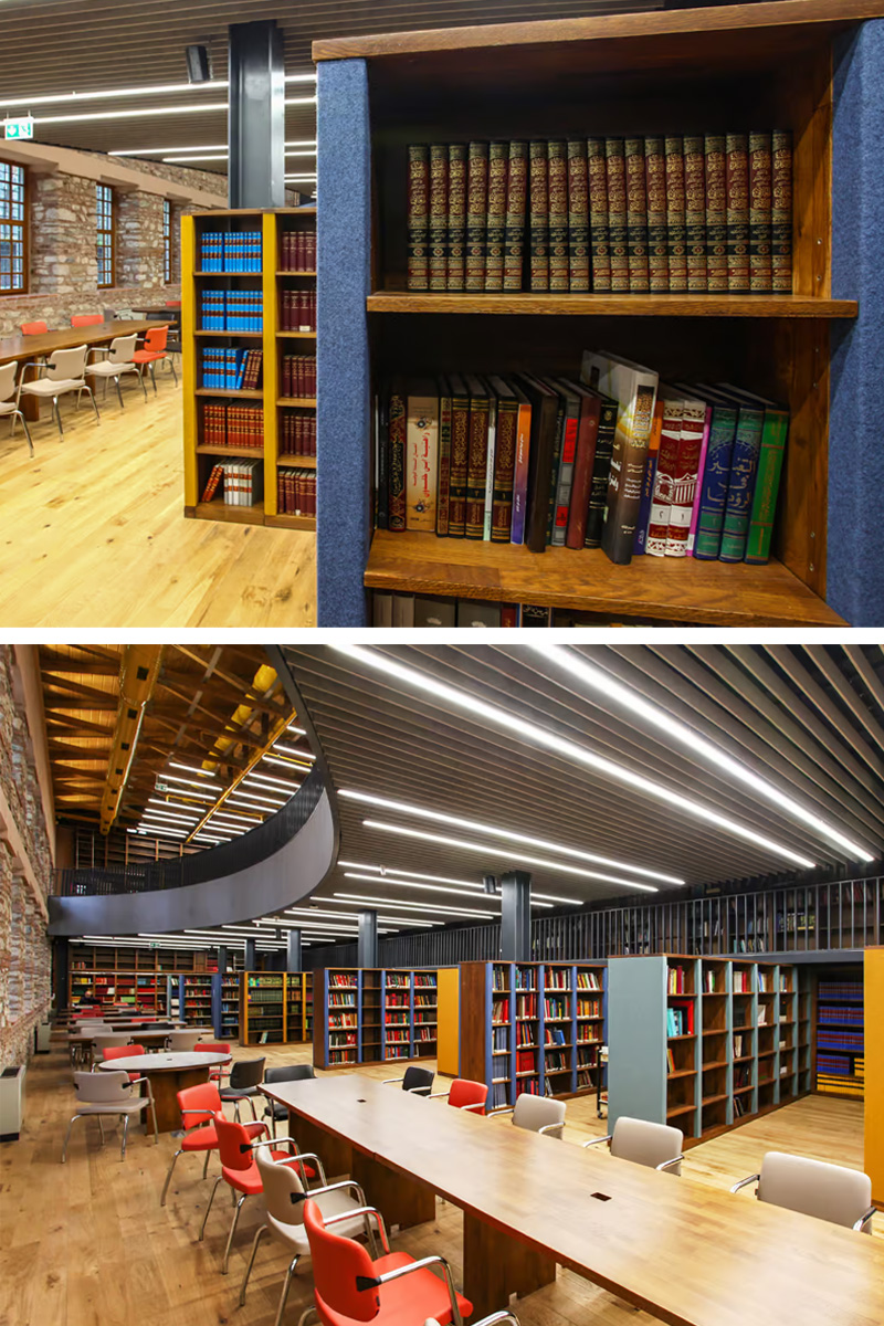 The Prof. Dr. Fuat Sezgin Library project creates a quiet and focused environment for reading and research. The design supports concentration while responding to the acoustic needs of a library space.