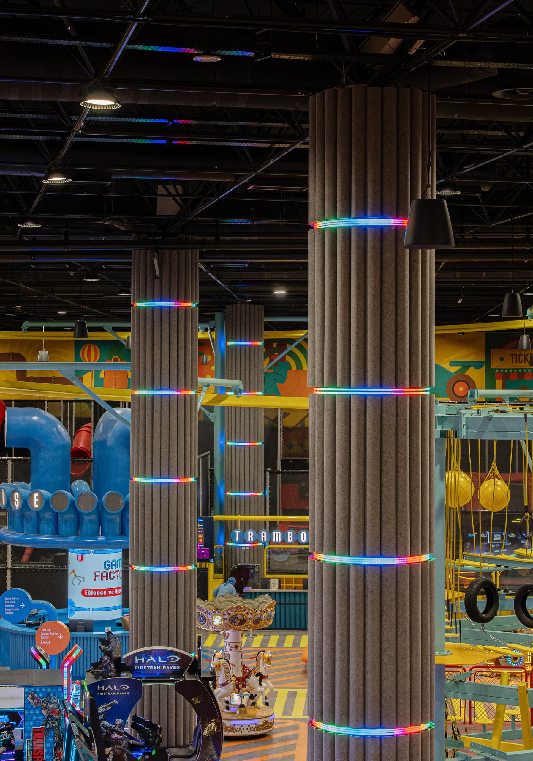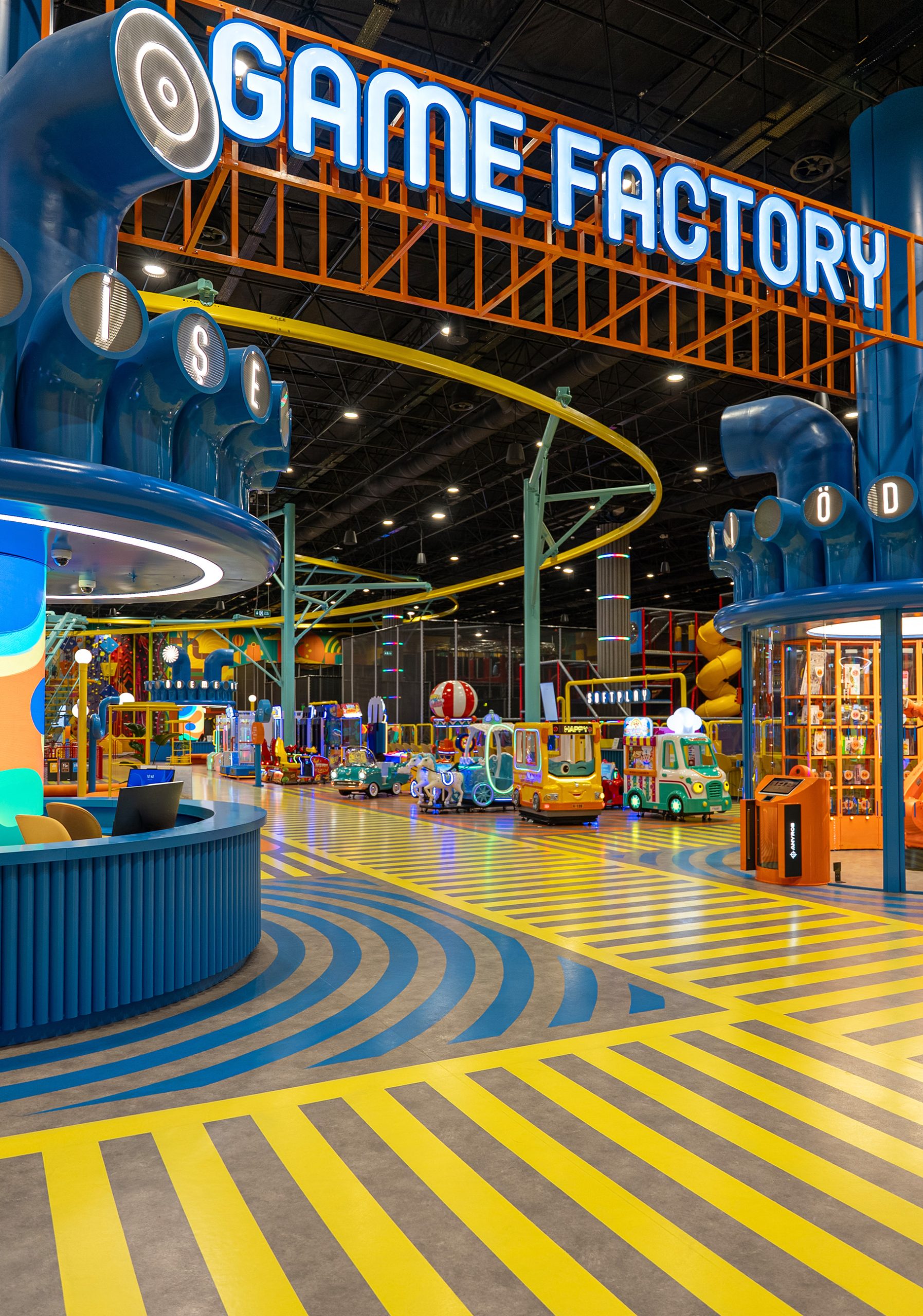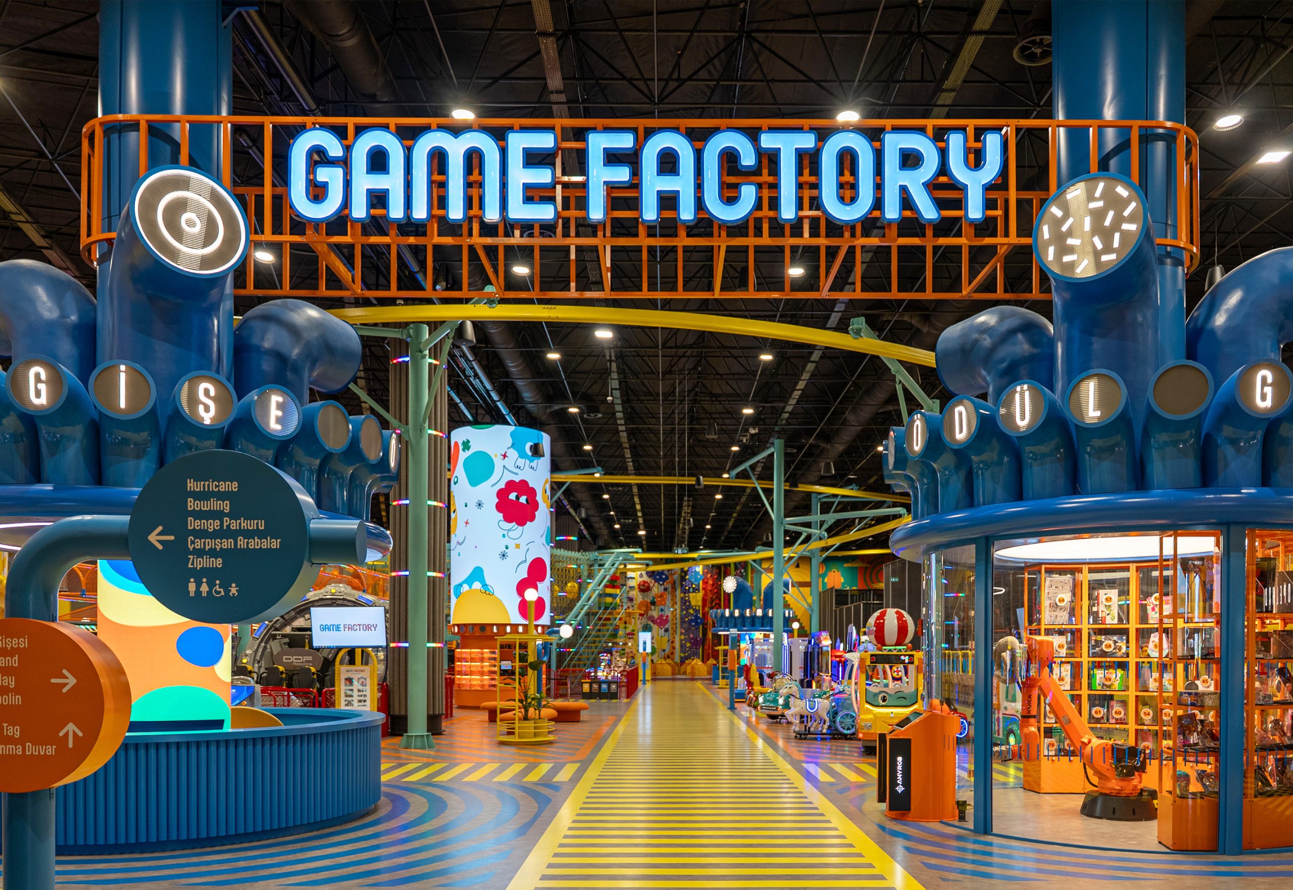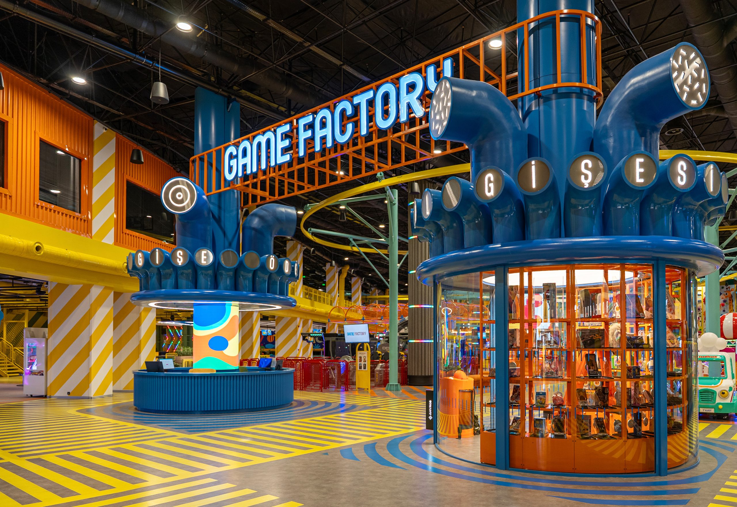 Game Factory is an entertainment area designed for visitors of all ages. It brings together different gaming zones and social interaction spaces within a single environment.