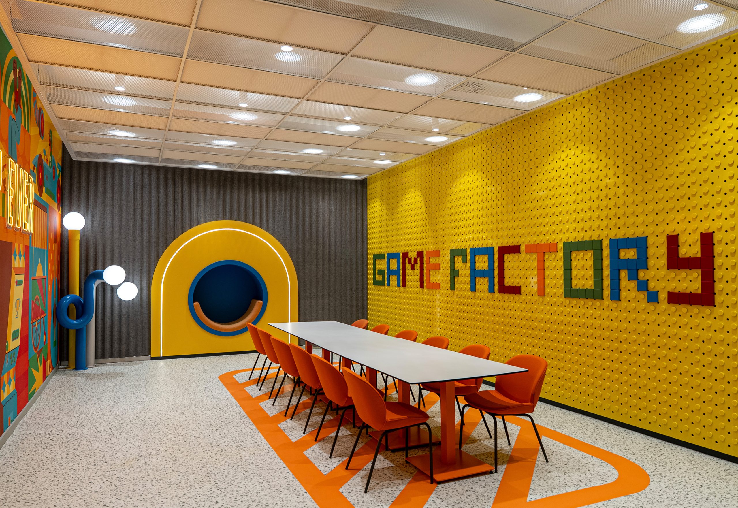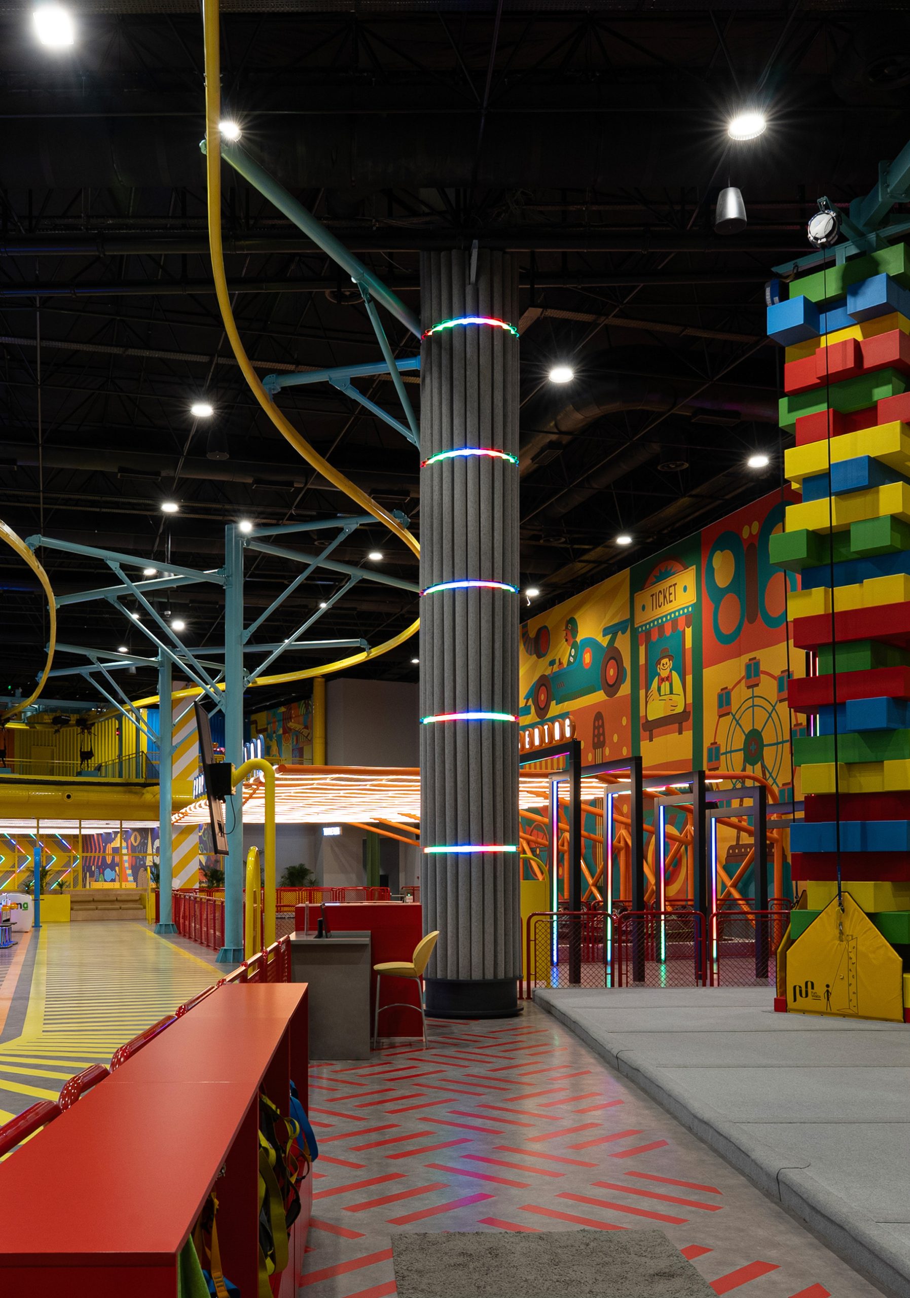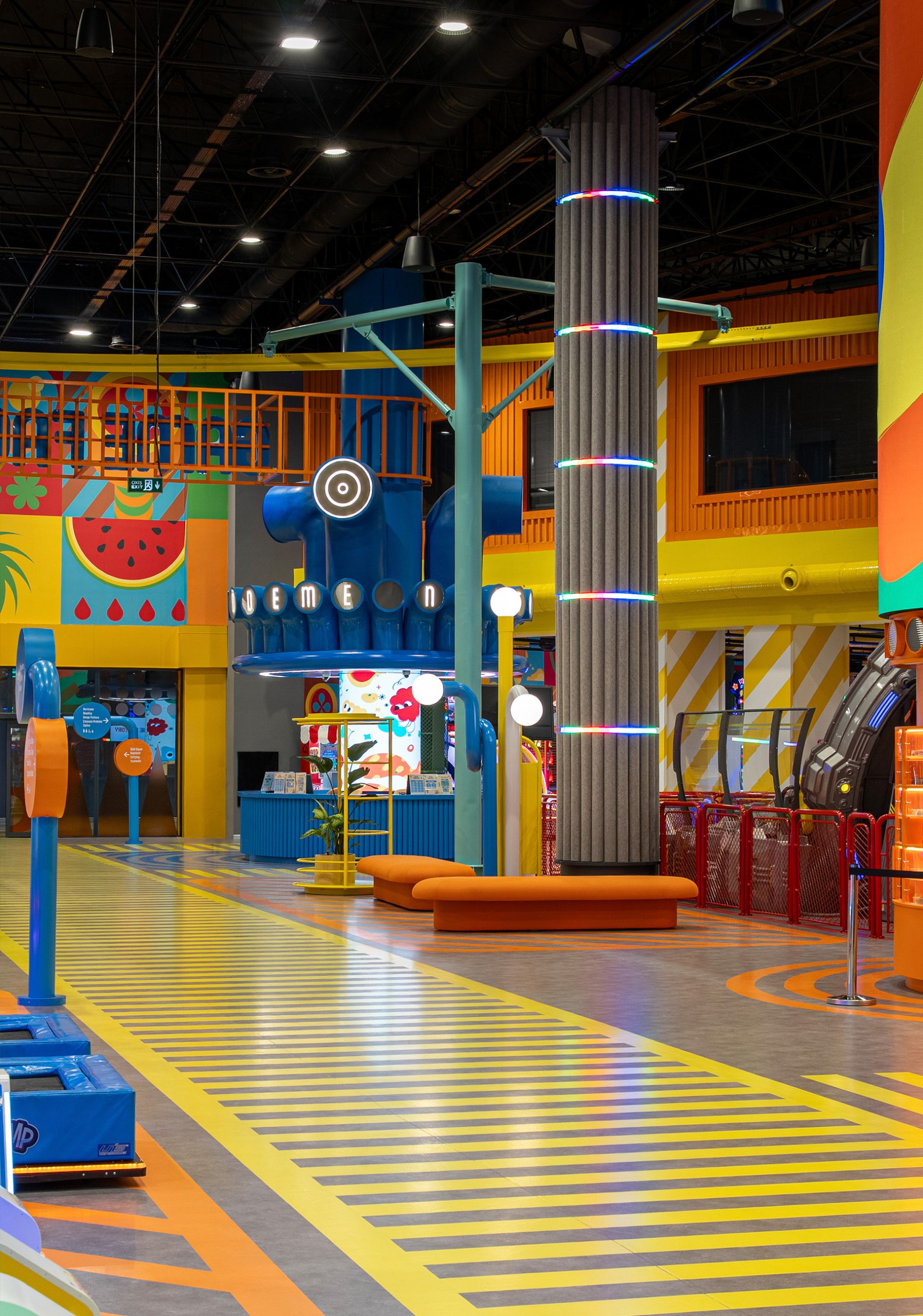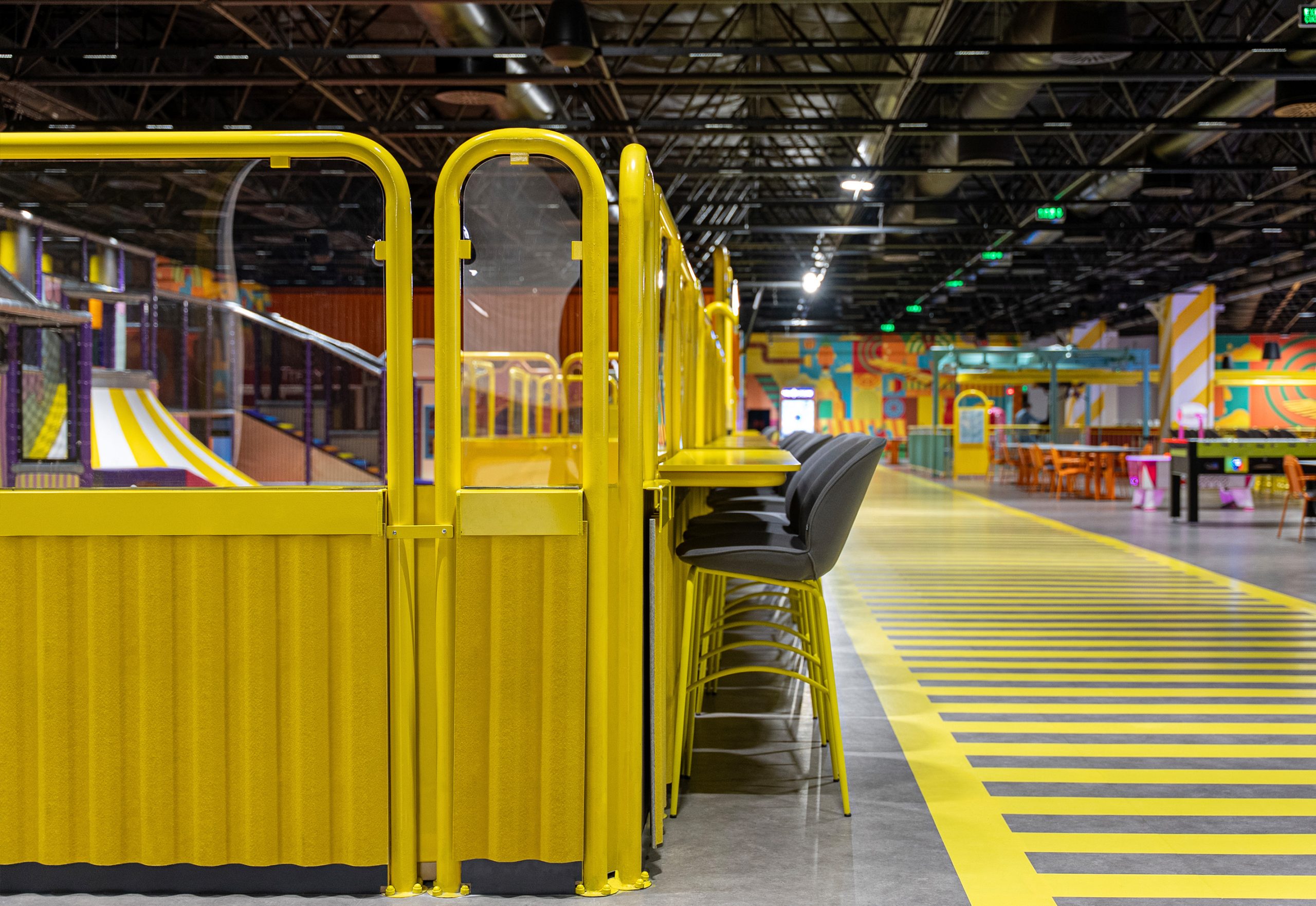 Game Factory is an entertainment area designed for visitors of all ages. It brings together different gaming zones and social interaction spaces within a single environment.