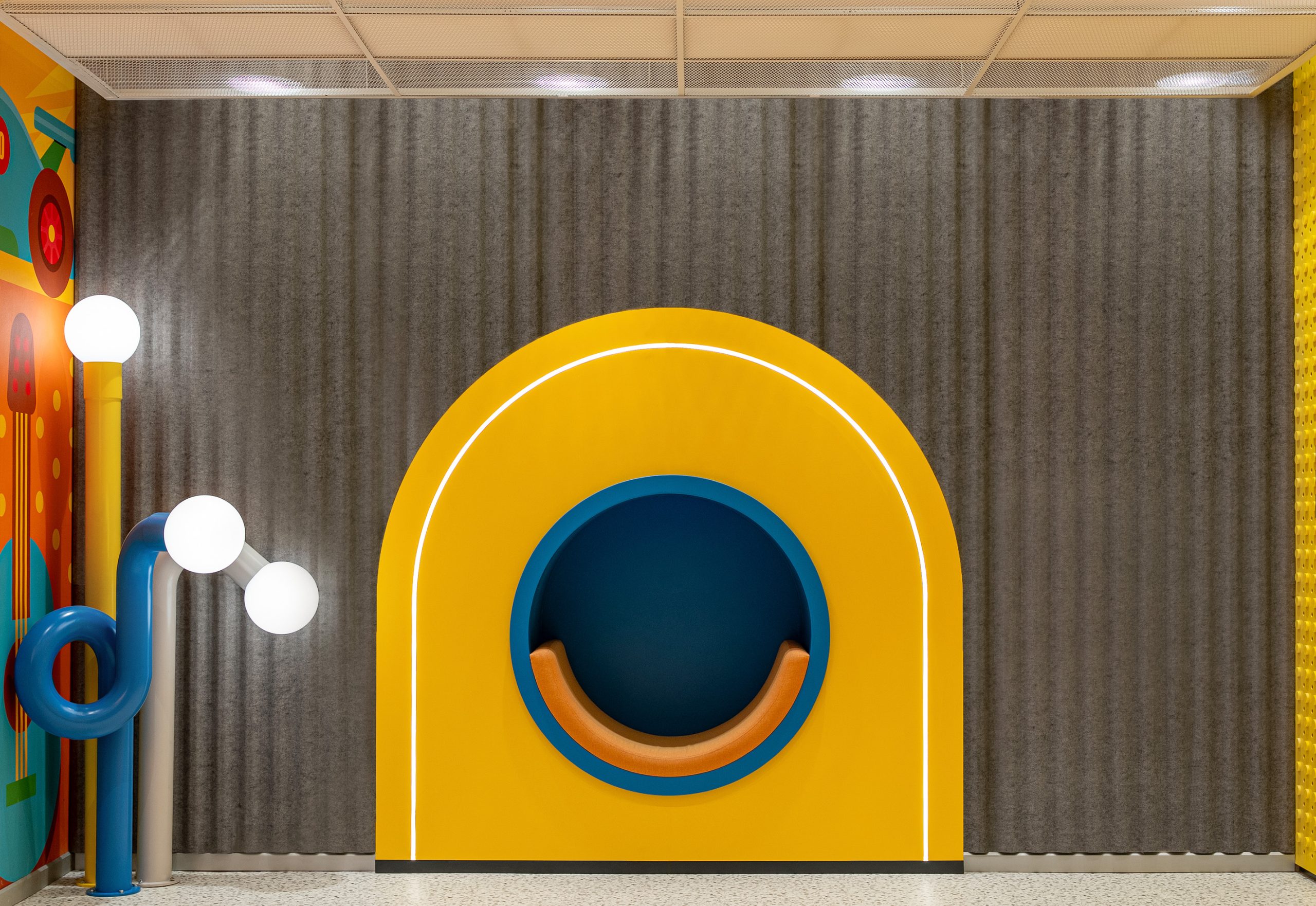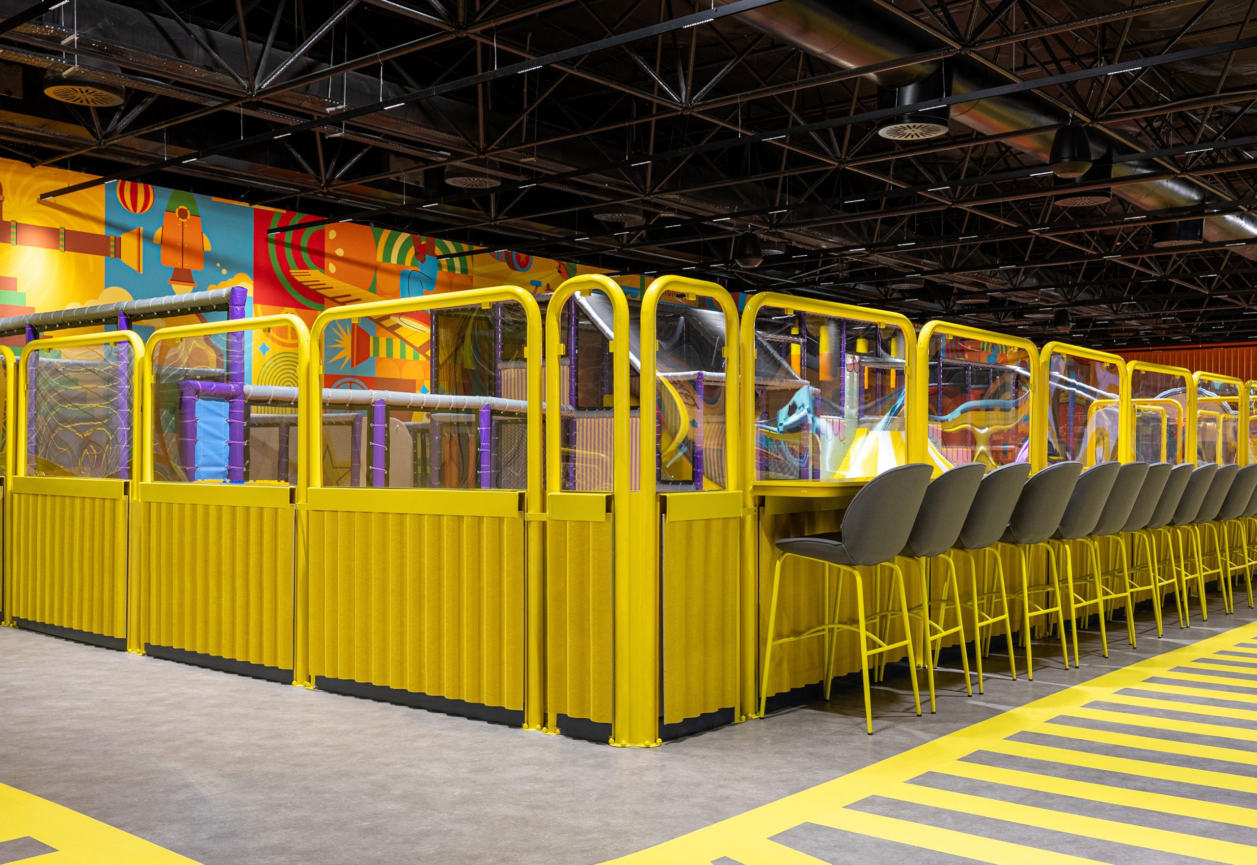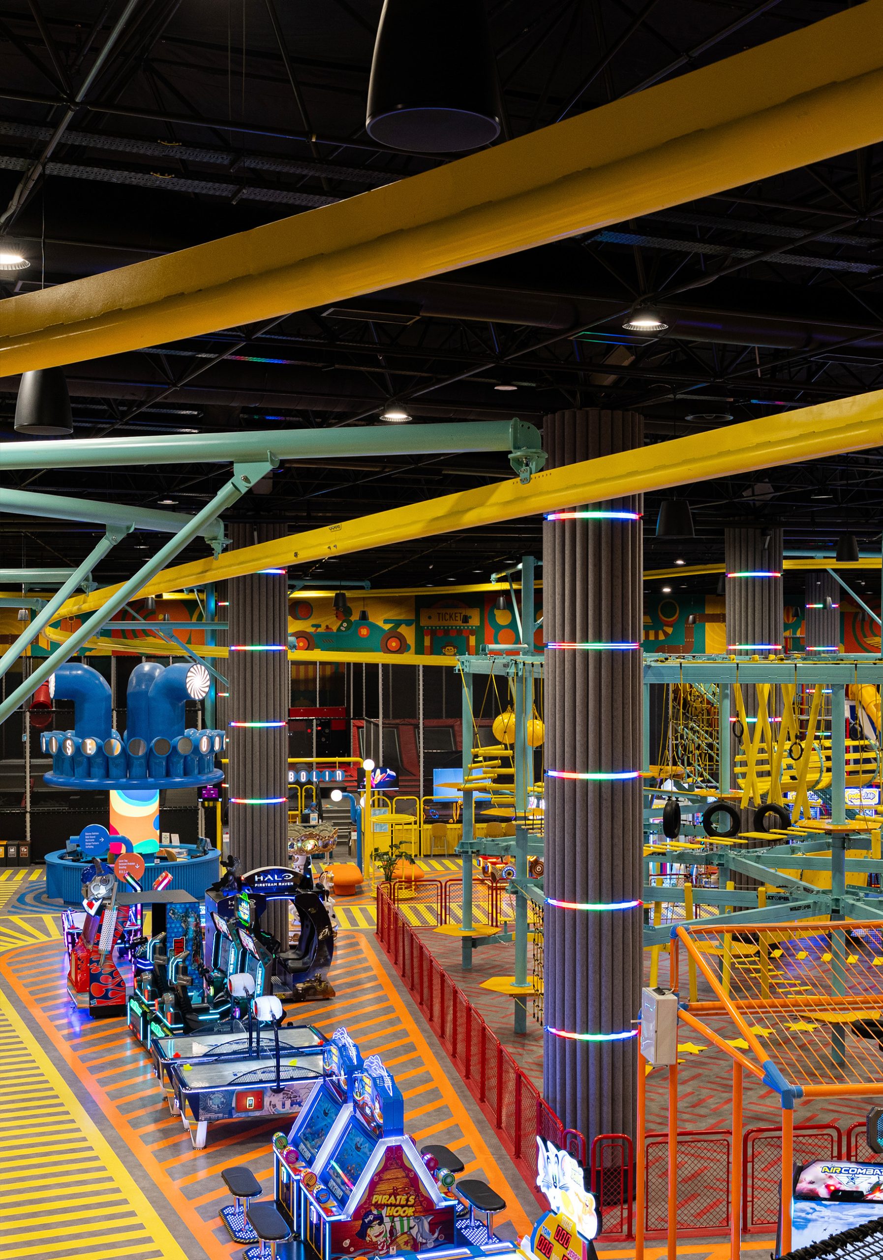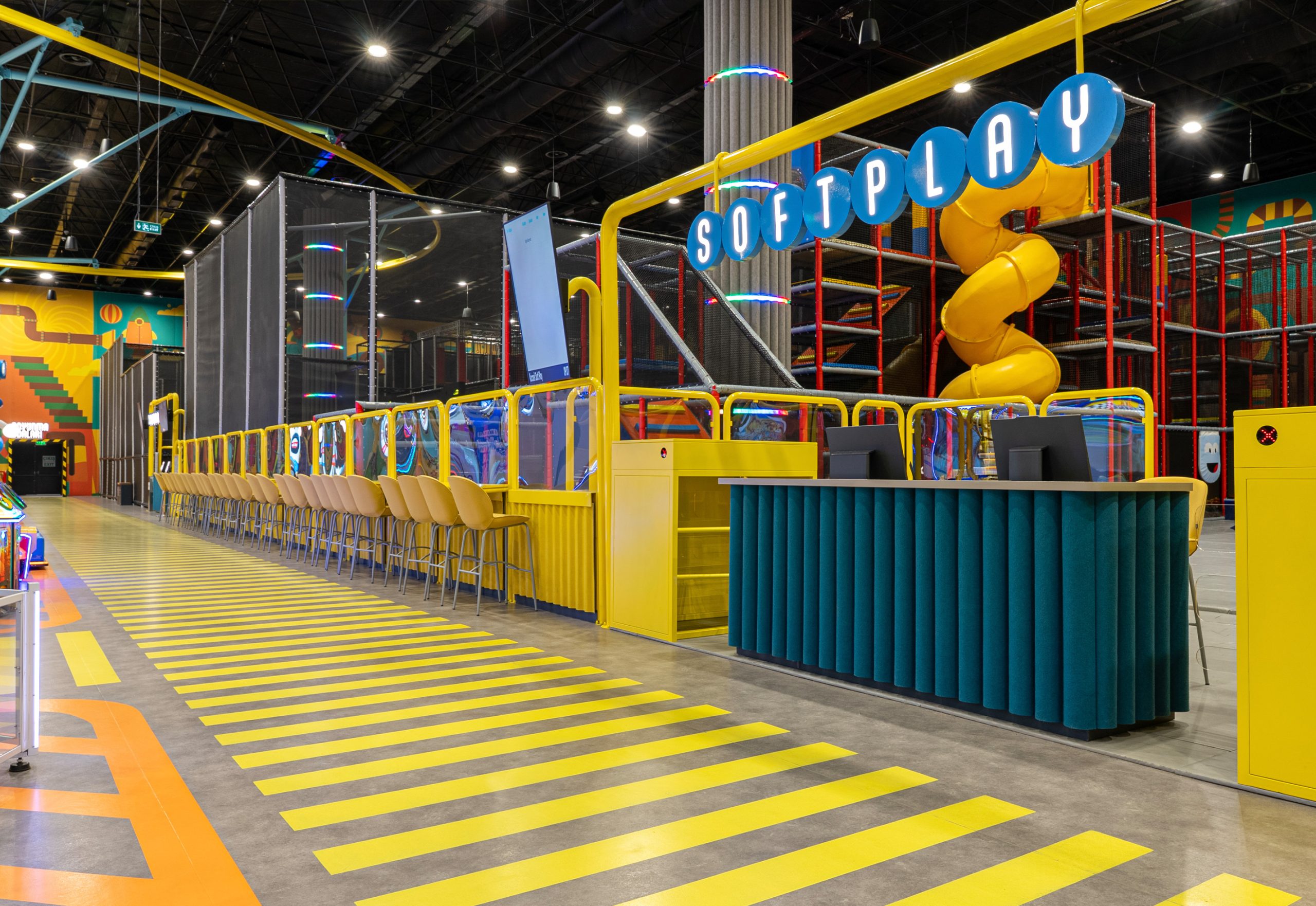 Game Factory is an entertainment area designed for visitors of all ages. It brings together different gaming zones and social interaction spaces within a single environment.