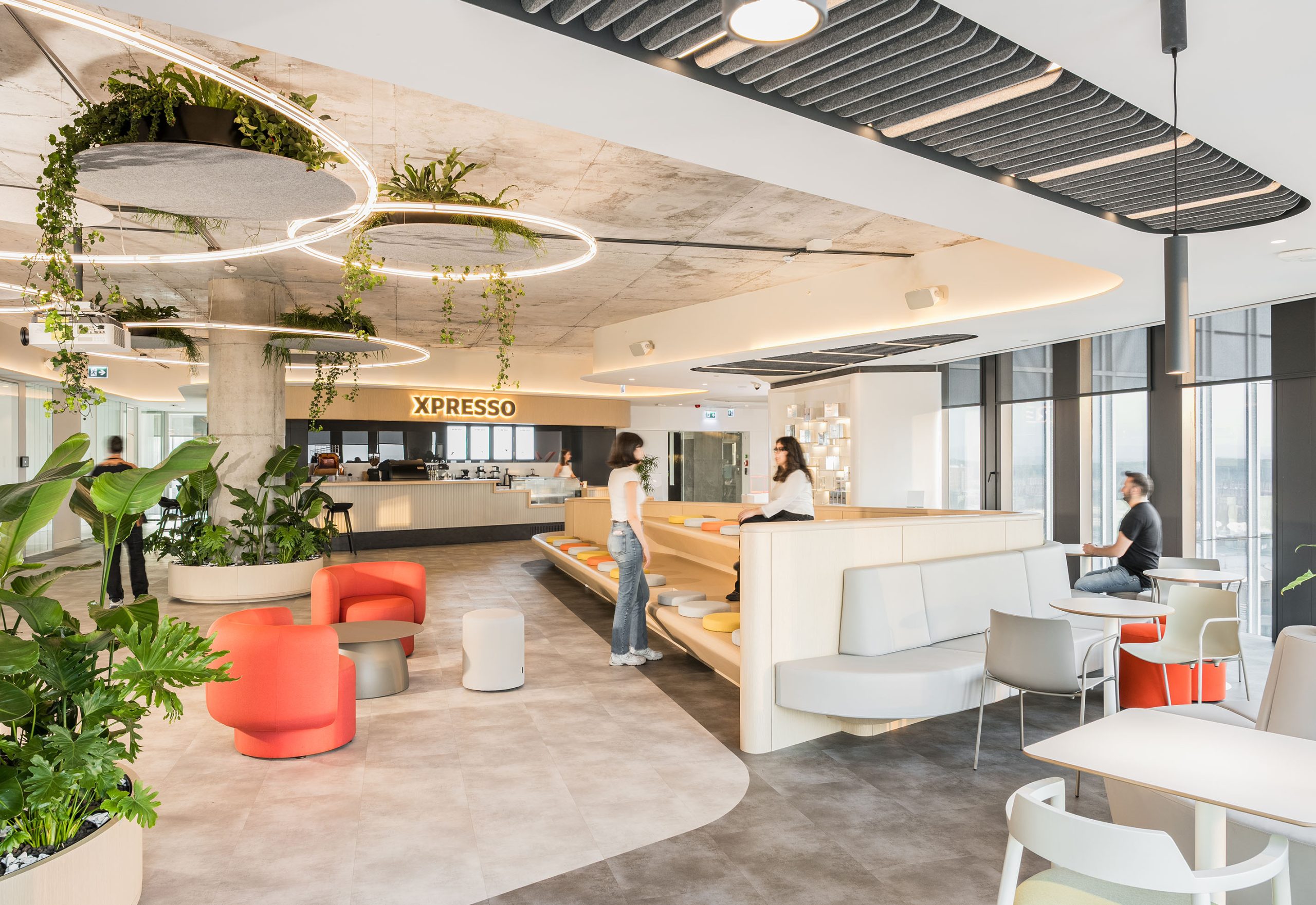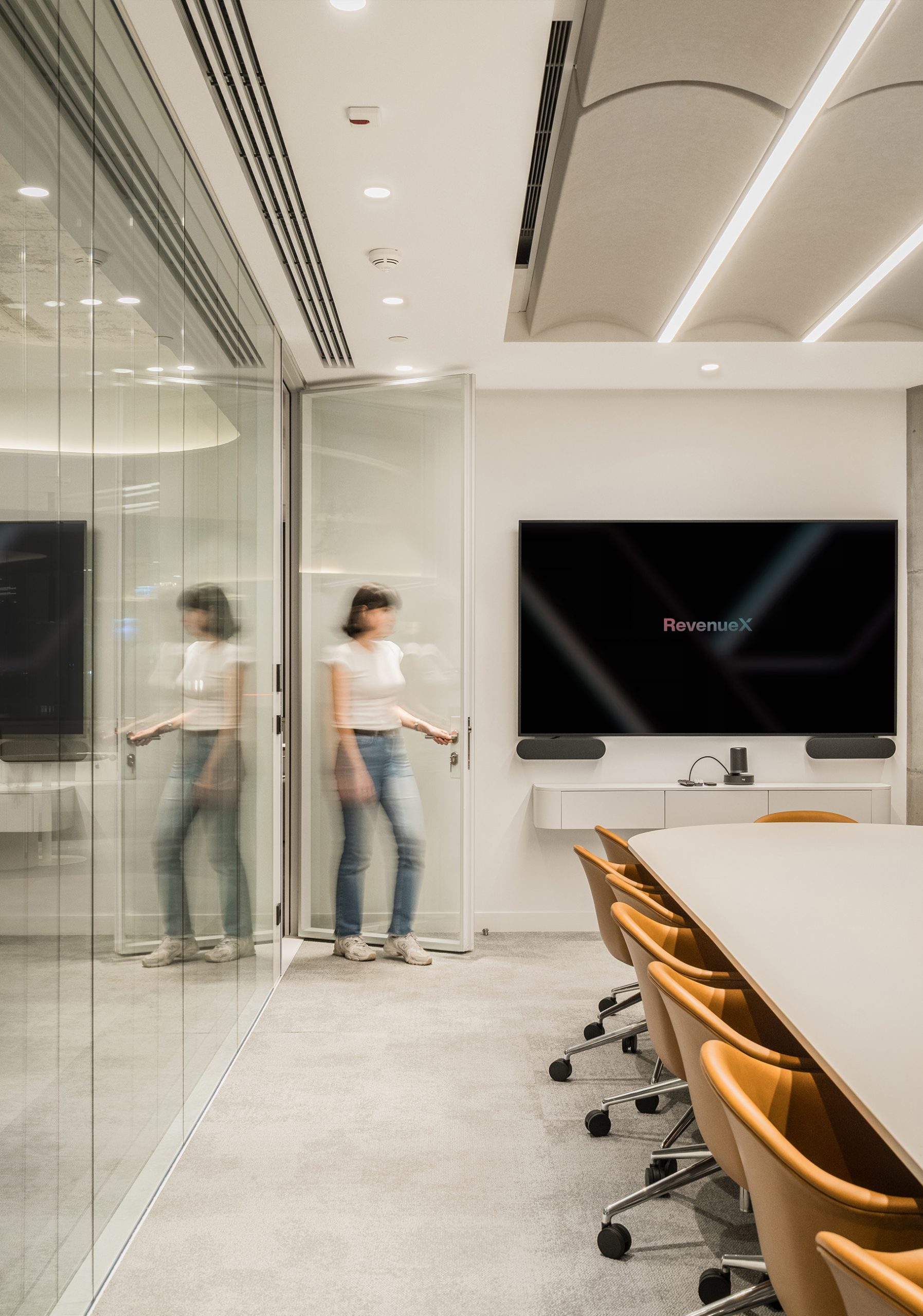 The project also features Volta Lay-in ceiling panels that combine acoustic performance with integrated lighting. The interior gains both acoustic and visual comfort.