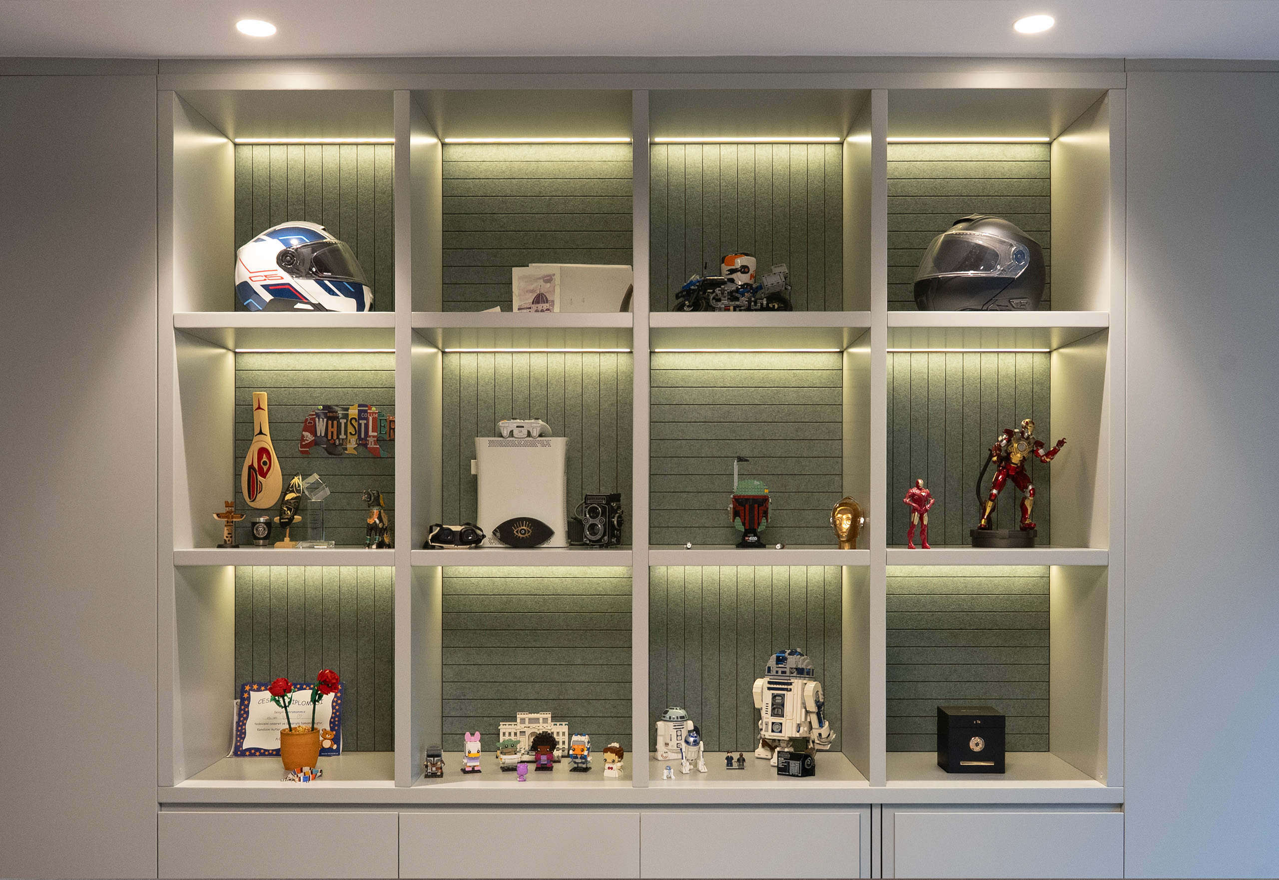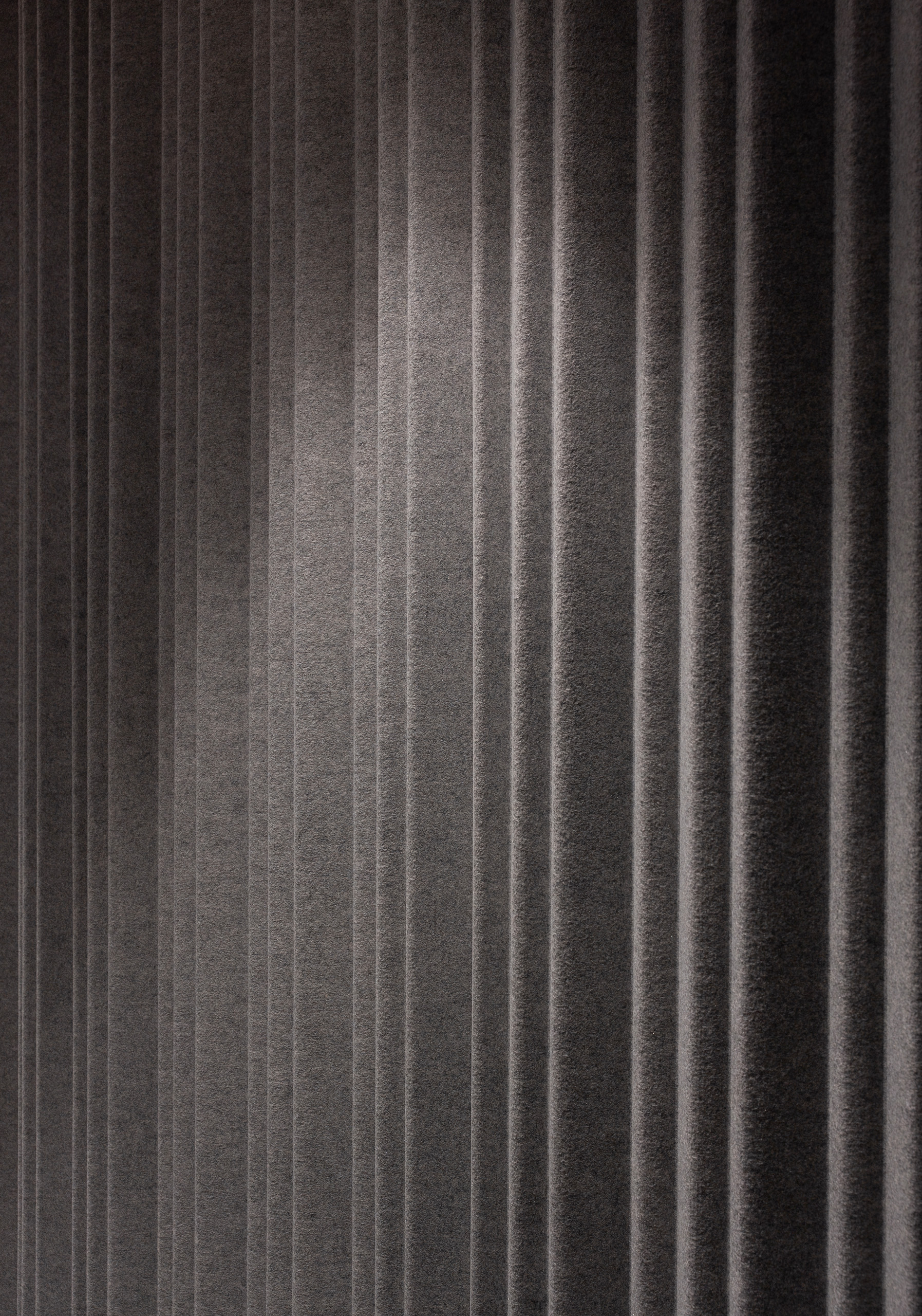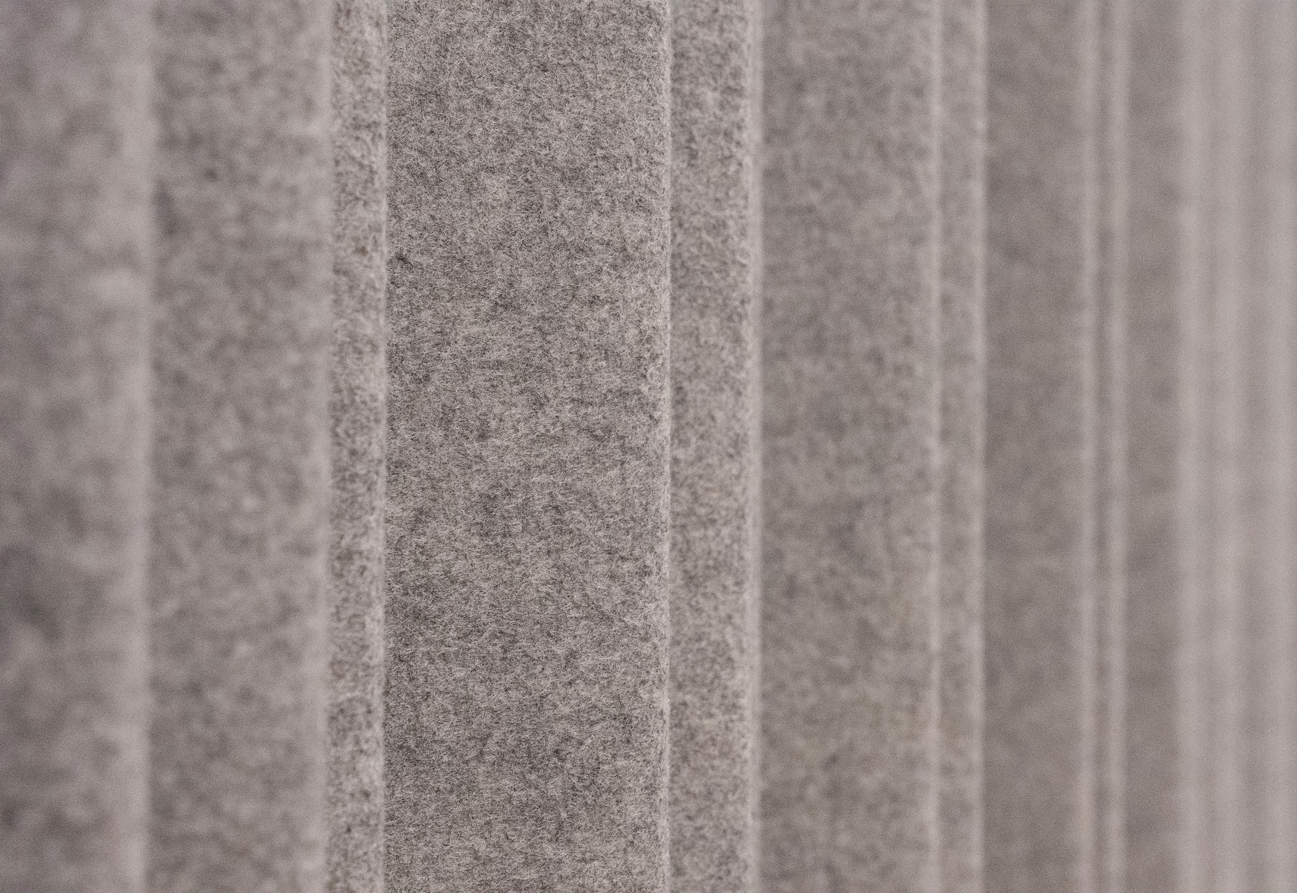In addition, Air Felt Baffle and Flat Cloud panels are applied on the ceiling in selected areas. These ceiling-mounted panels reduce reverberation time in large and high volumes. At the same time, they preserve spatial rhythm and balance.