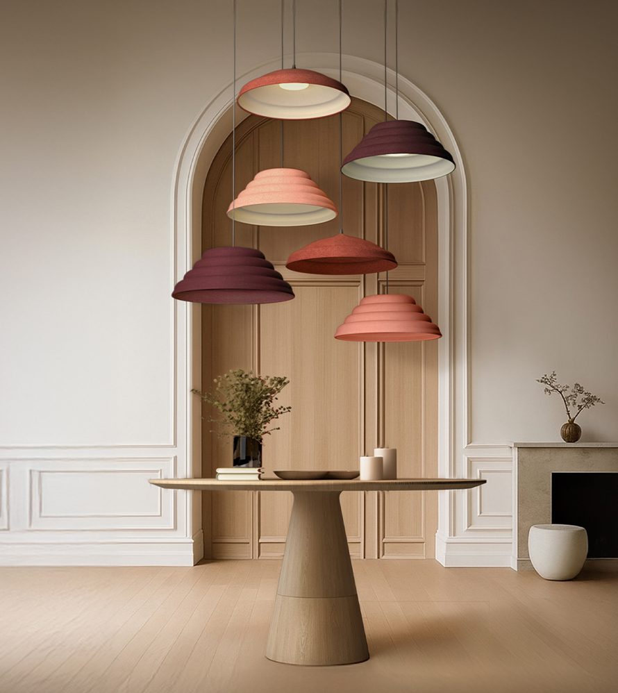 Yonoh Creative Studio created the Nube Pendant Lamp, which brings a sculptural, cloud-like softness to interior spaces.