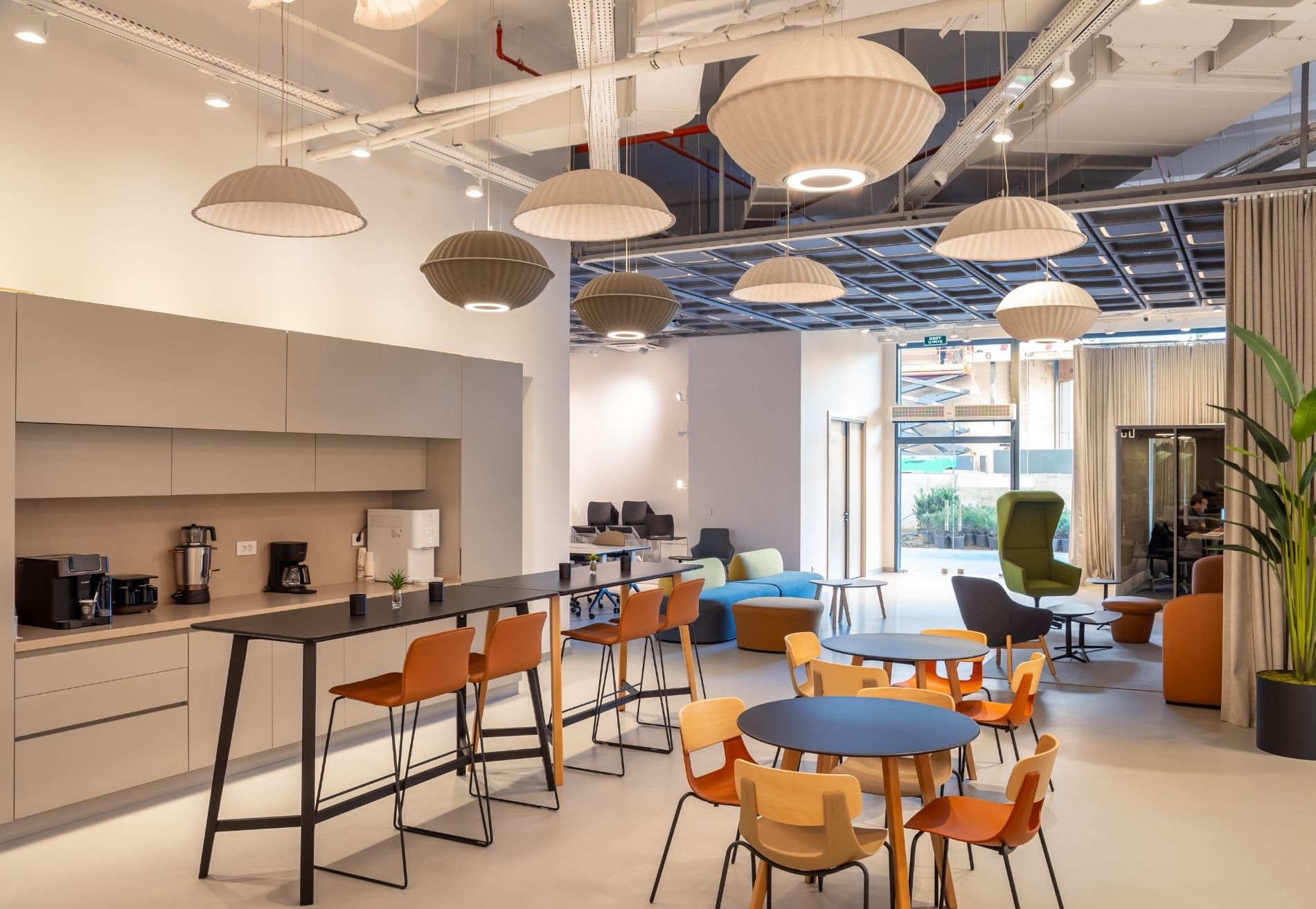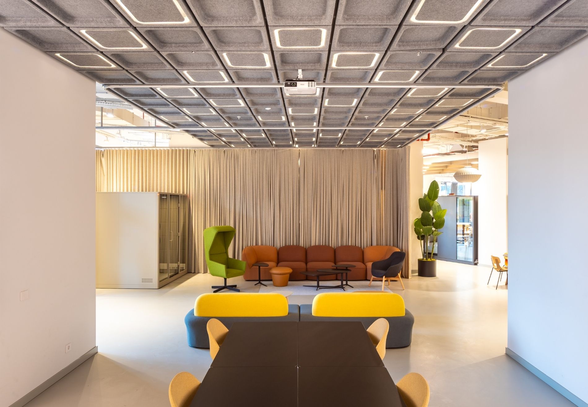 For the lighting areas, Sparkle Line, Segment, Sea Urchin, and Step acoustic lighting solutions enhance both illumination and sound comfort. These products combine functionality and aesthetics across different zones of the experience center.