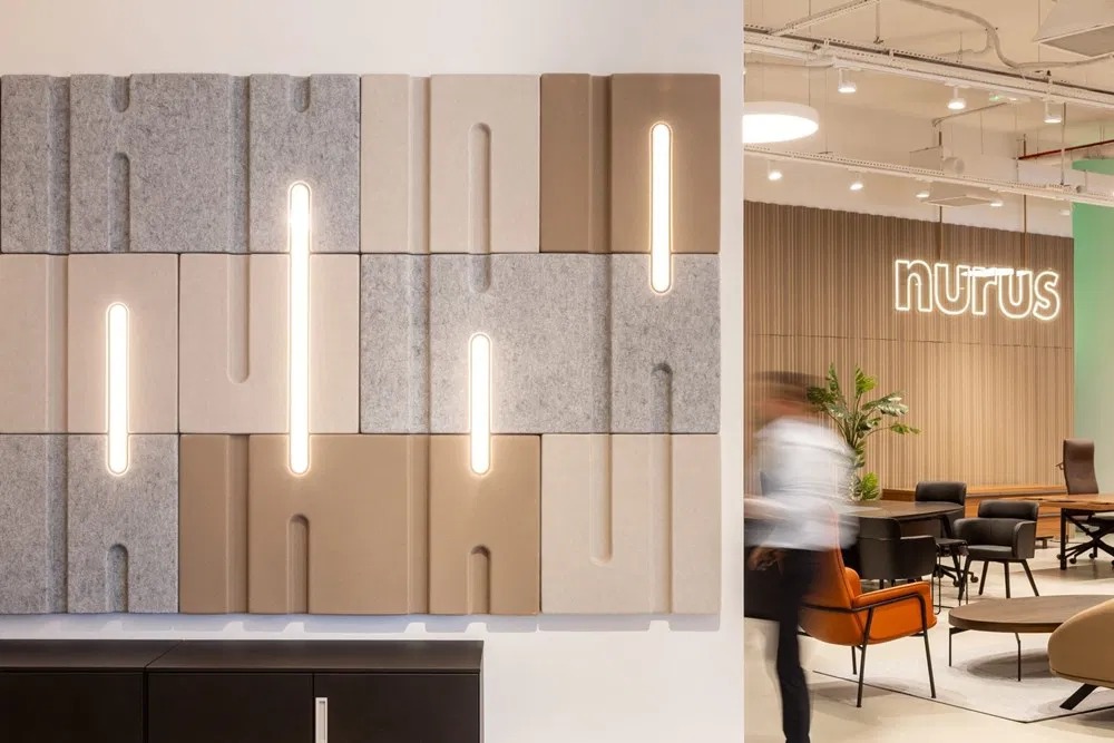 Nurus’s İzmir store showcases products that combine technology, engineering, and user experience for both office and home workspaces. Within this environment, Feltouch’s acoustic solutions are seamlessly integrated to support various spatial scenarios, enhance sound comfort, and improve overall workplace performance.