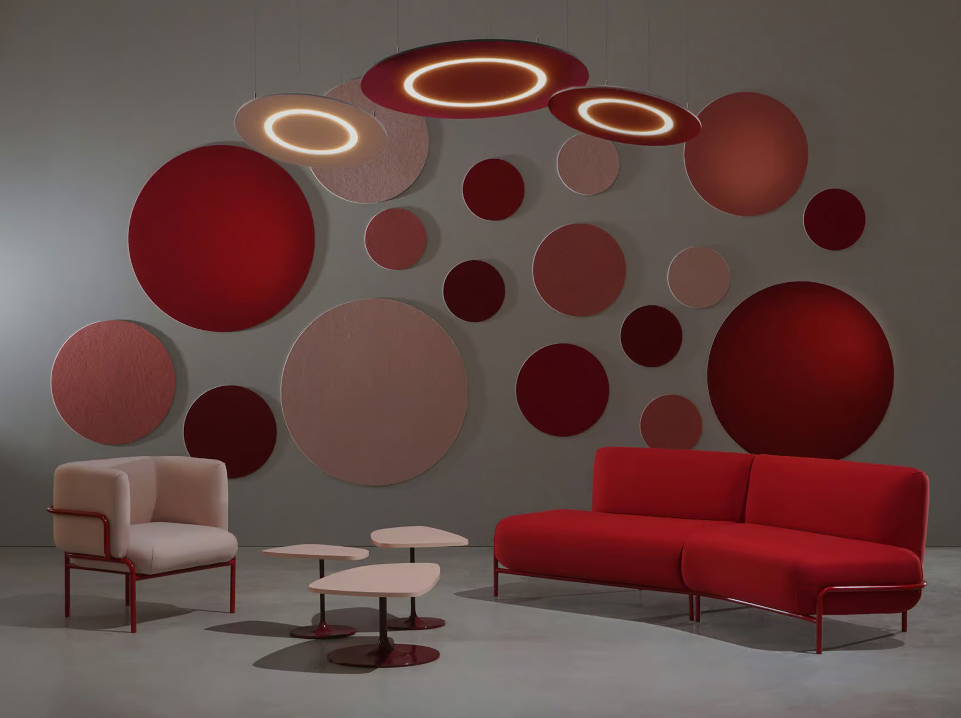 Circles is available in 53 Feltouch PET felt color options, making it easy to match different interior concepts.