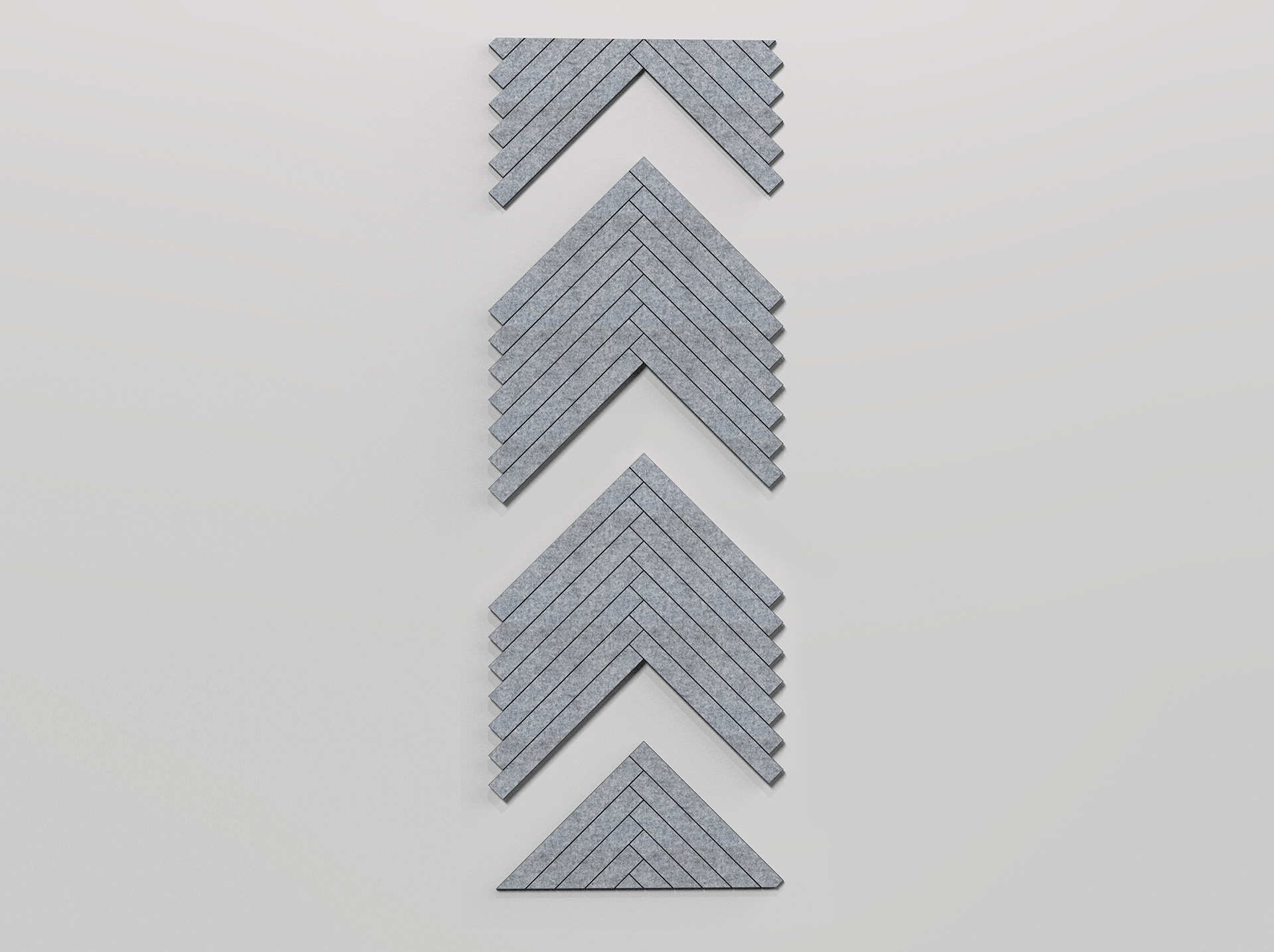 The panels form a continuous fishbone pattern on walls. Designers combine the pieces to create large surface compositions.