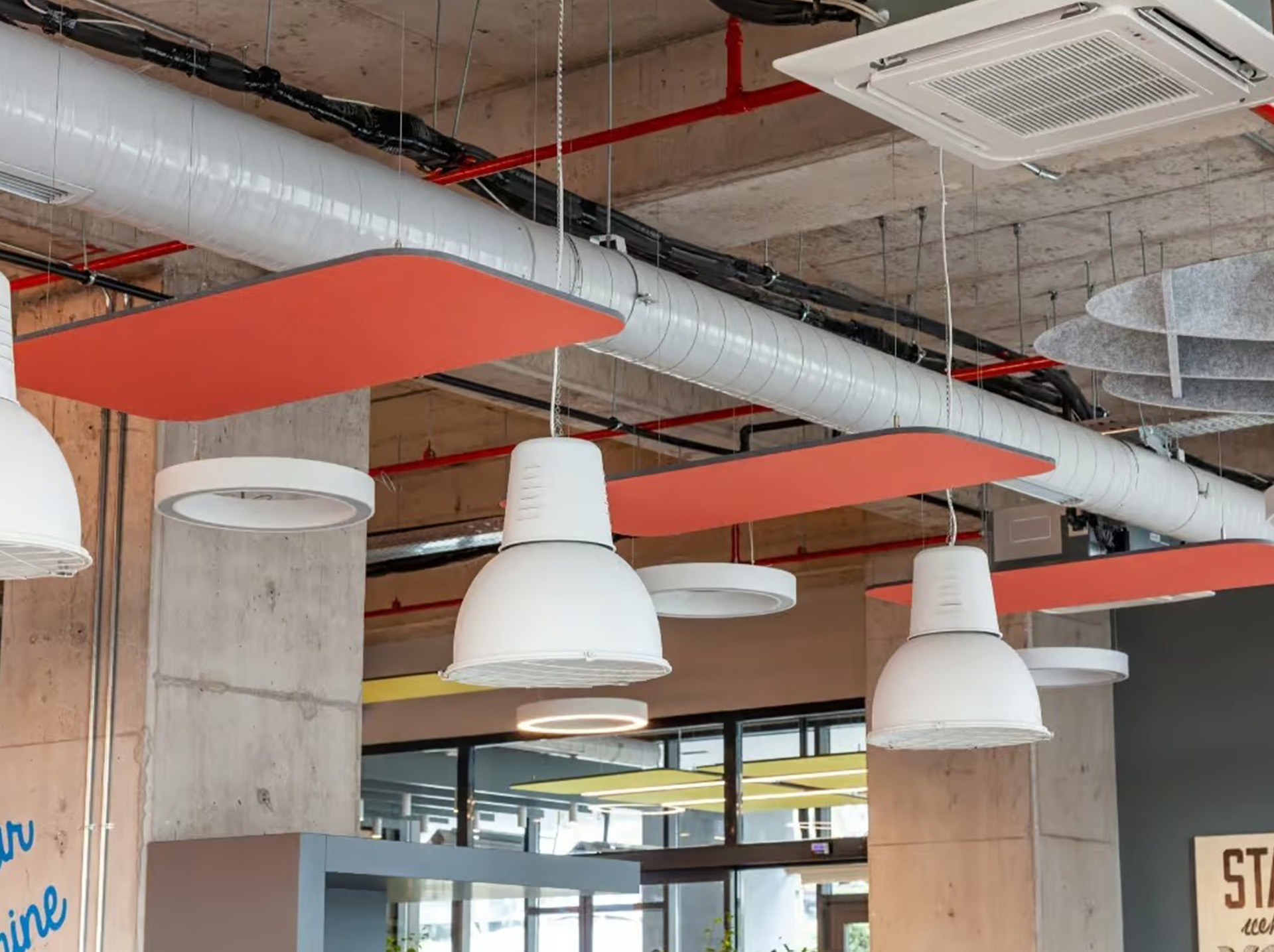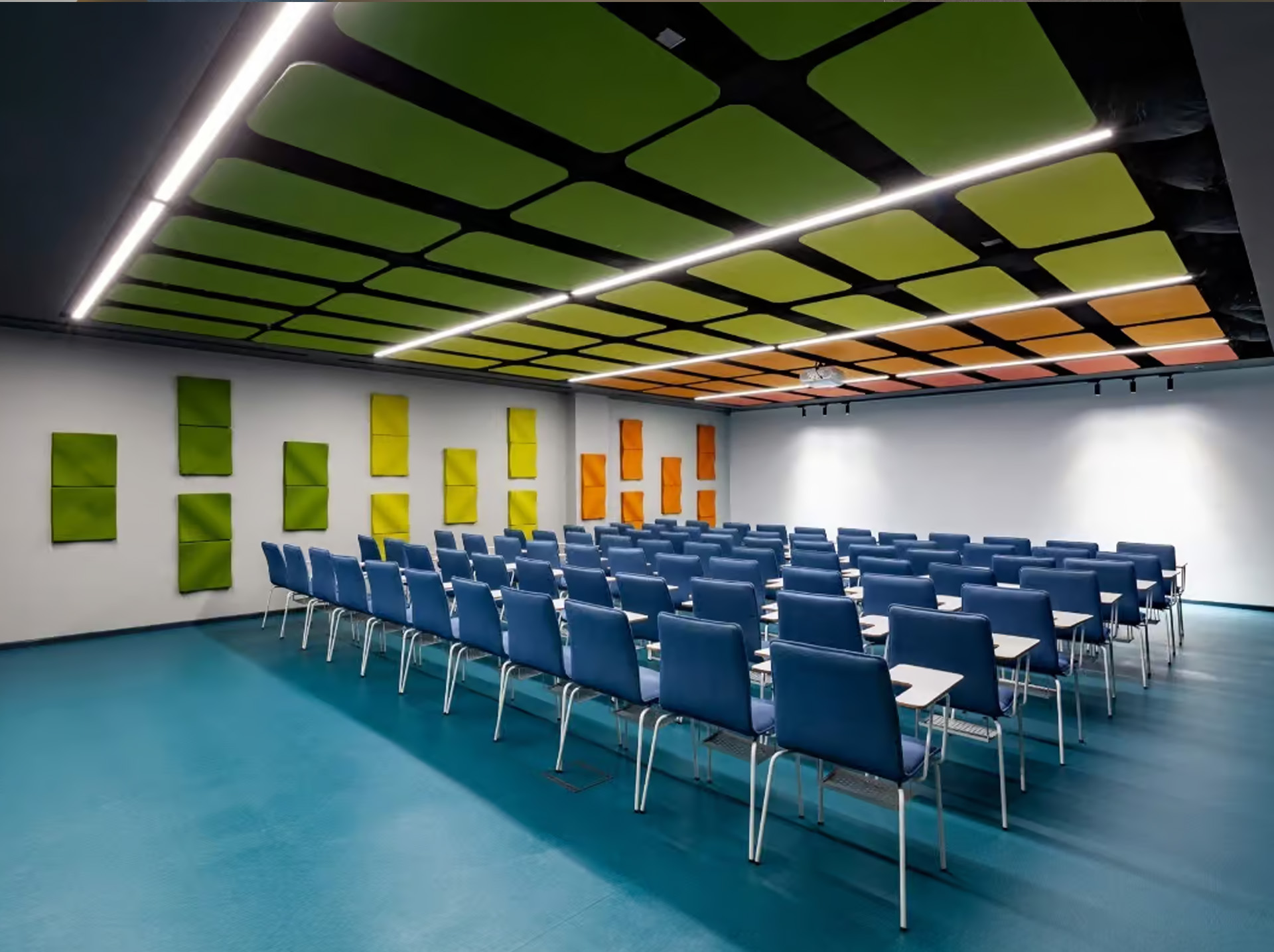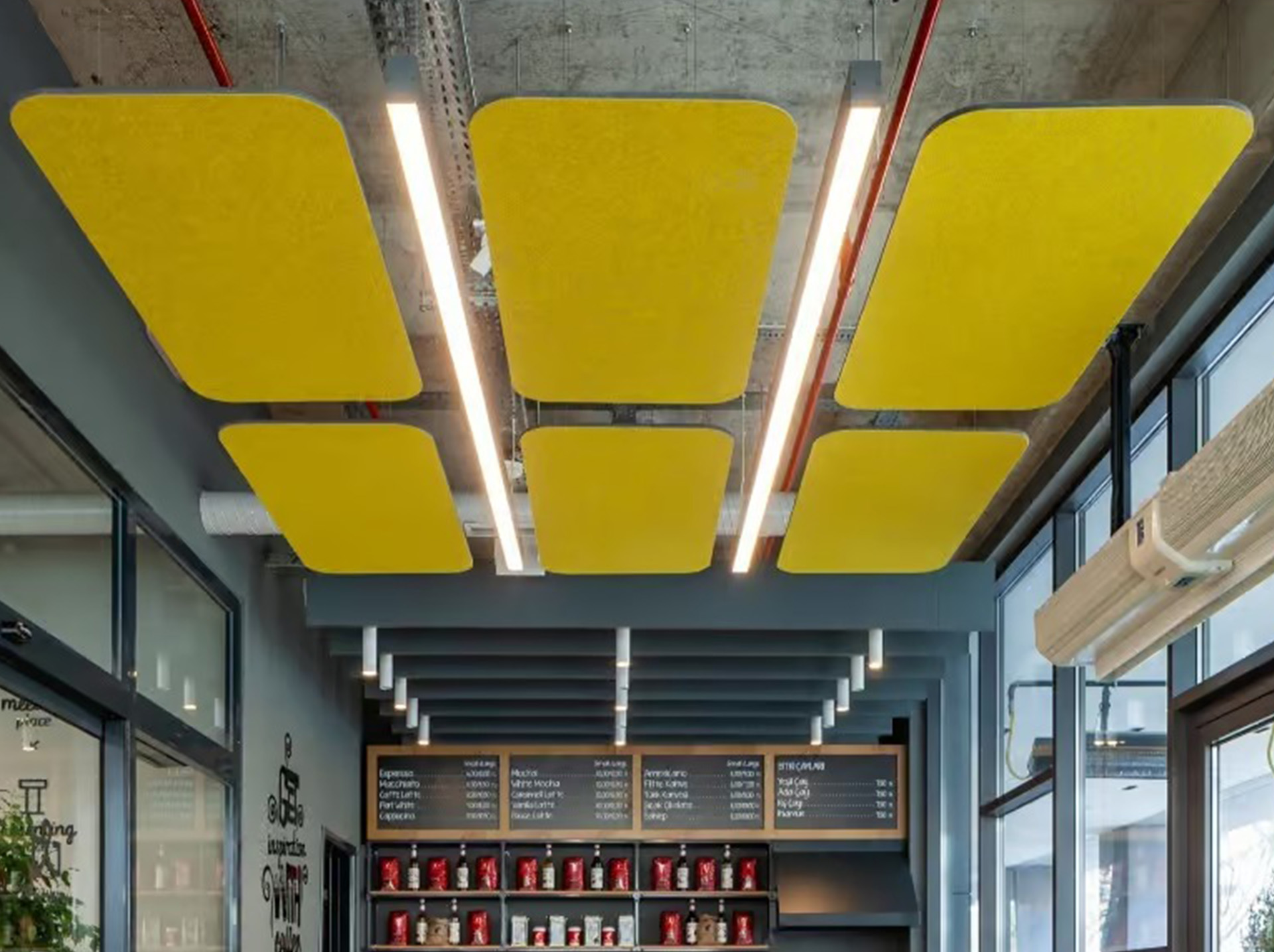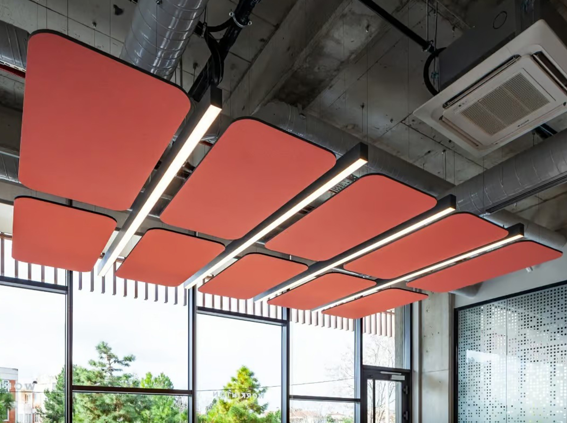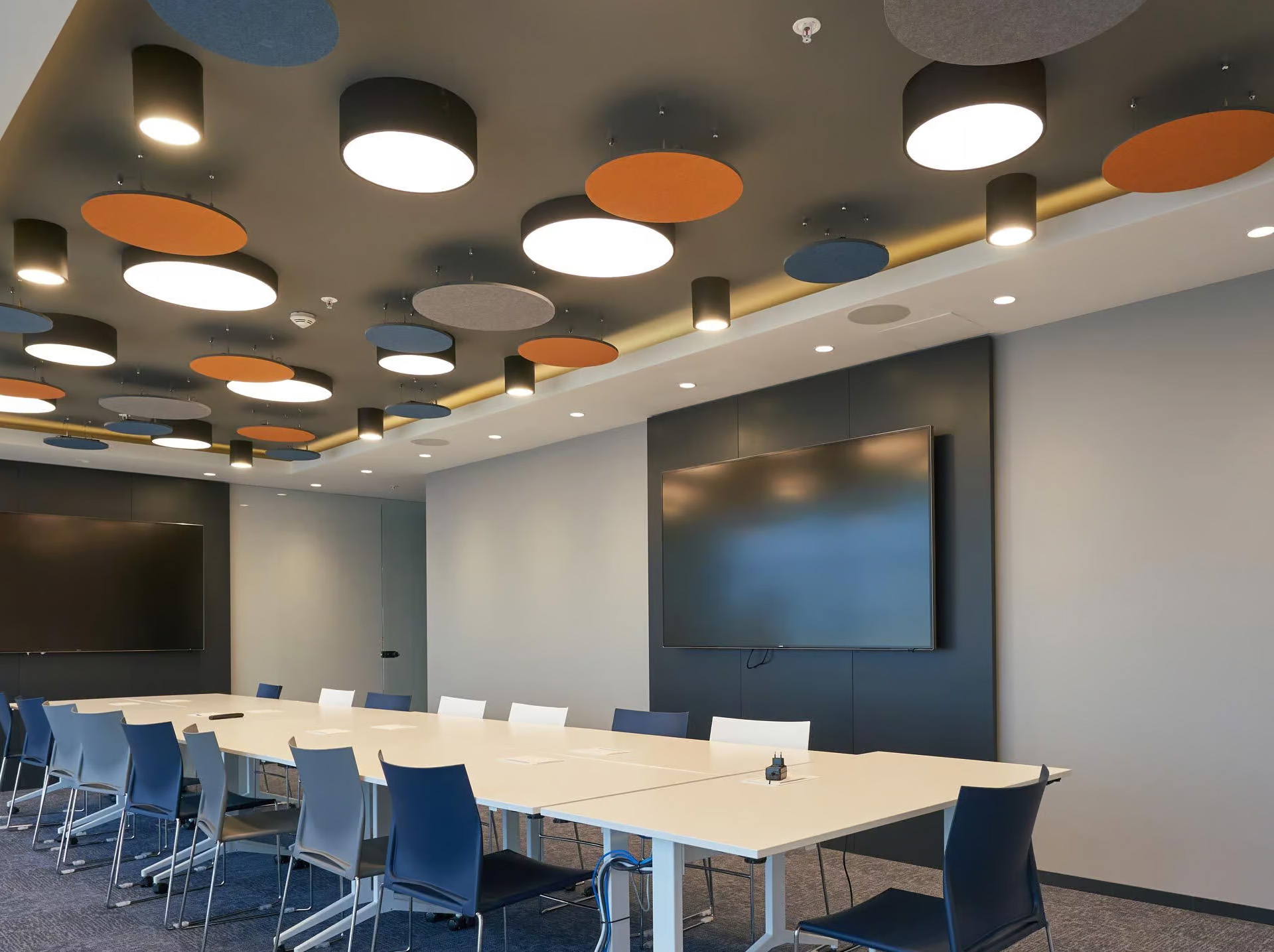 The lightweight structure makes suspended installation simple. Designers can place single panels or combine multiple panels to create larger acoustic compositions. Flat Cloud panels come in 53 Feltouch PET felt colors. Designers can easily match these colors with different interior palettes. Flat Cloud Acoustic Panel works well in offices, open-plan workspaces, meeting rooms, educational buildings, hospitality venues, and public interiors where acoustic comfort is important.