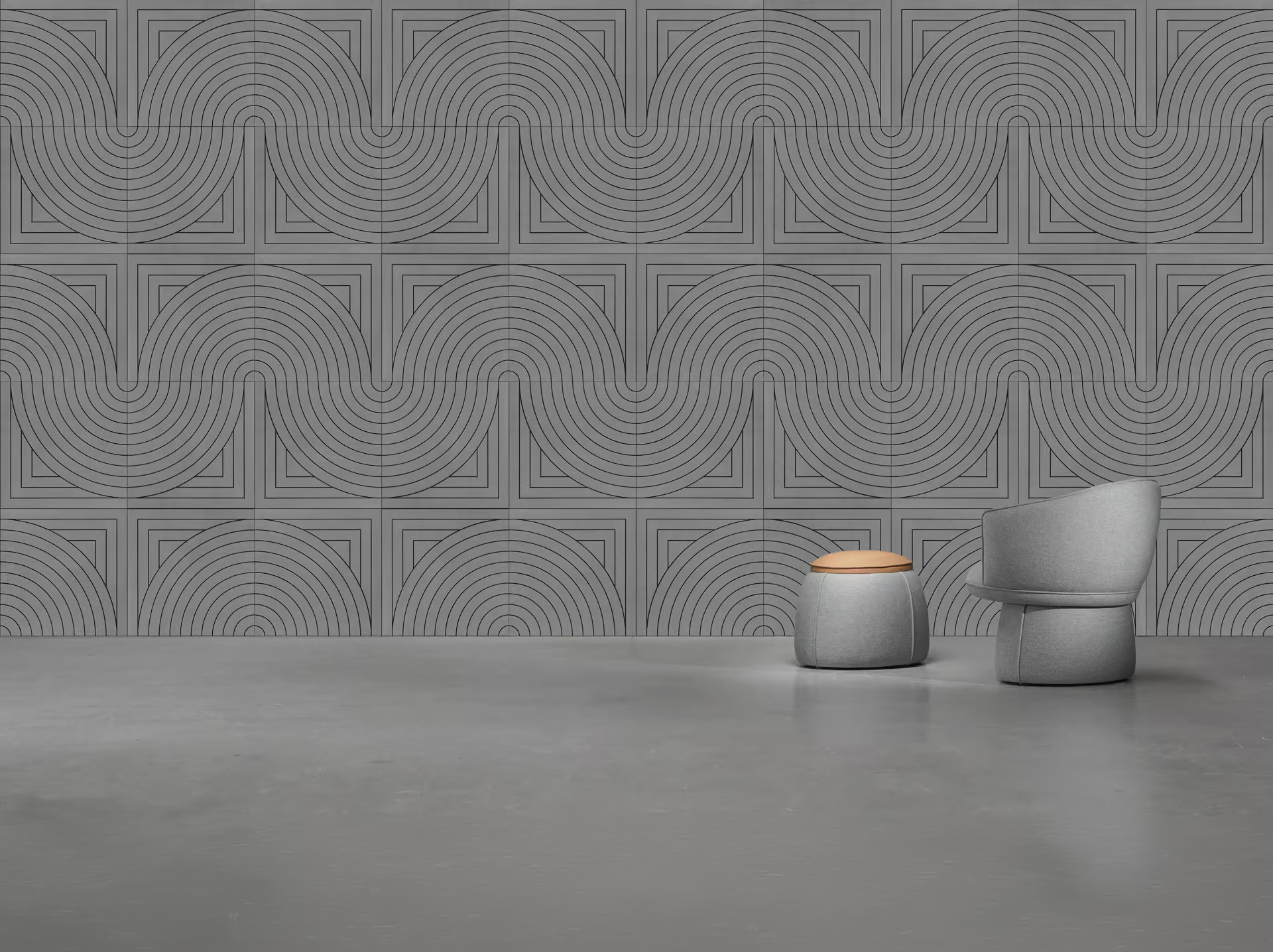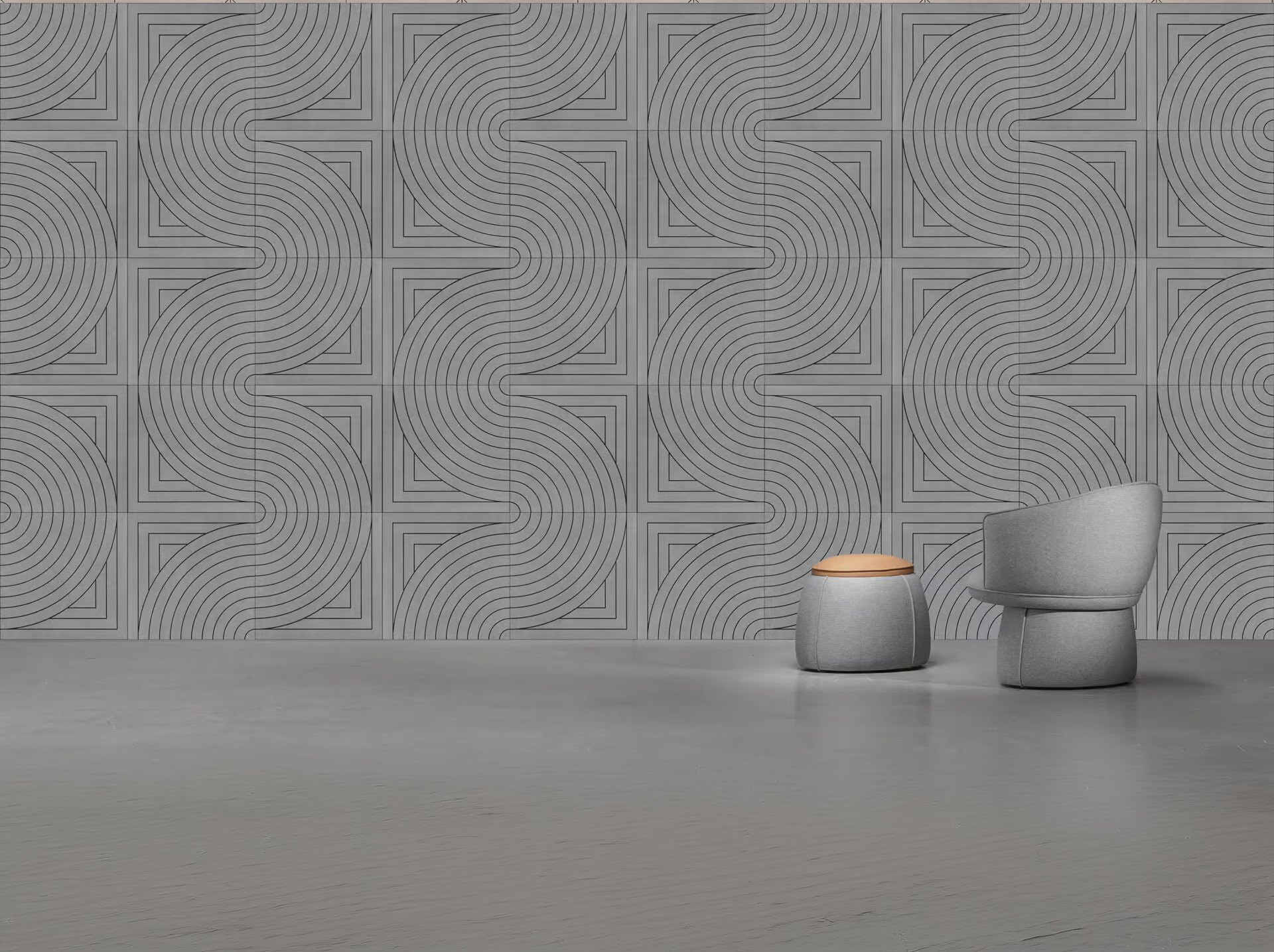 The collection includes two pattern options, allowing designers to create dynamic geometric wall compositions. By combining different panels, designers can build continuous surface patterns and distinctive architectural layouts.