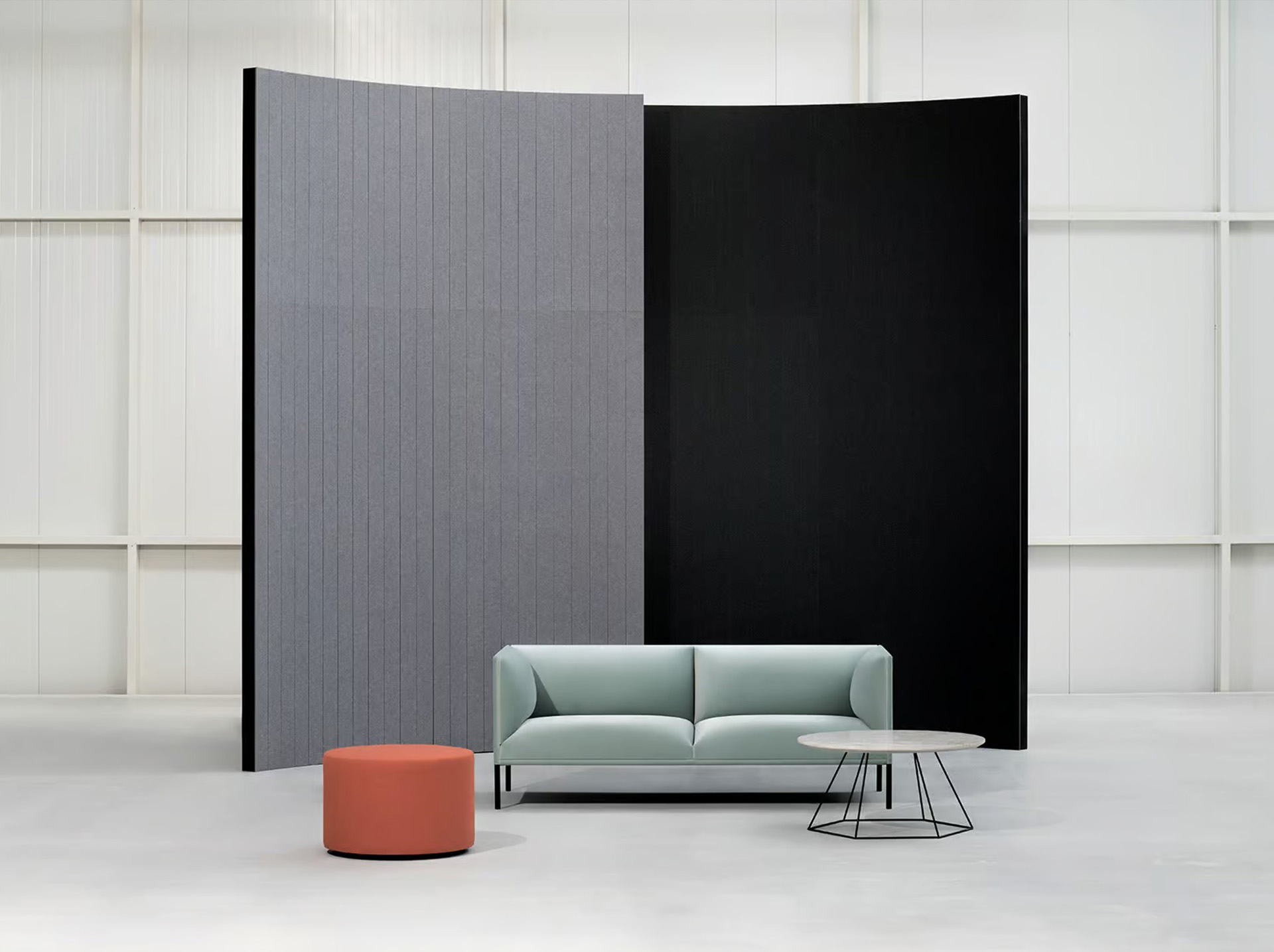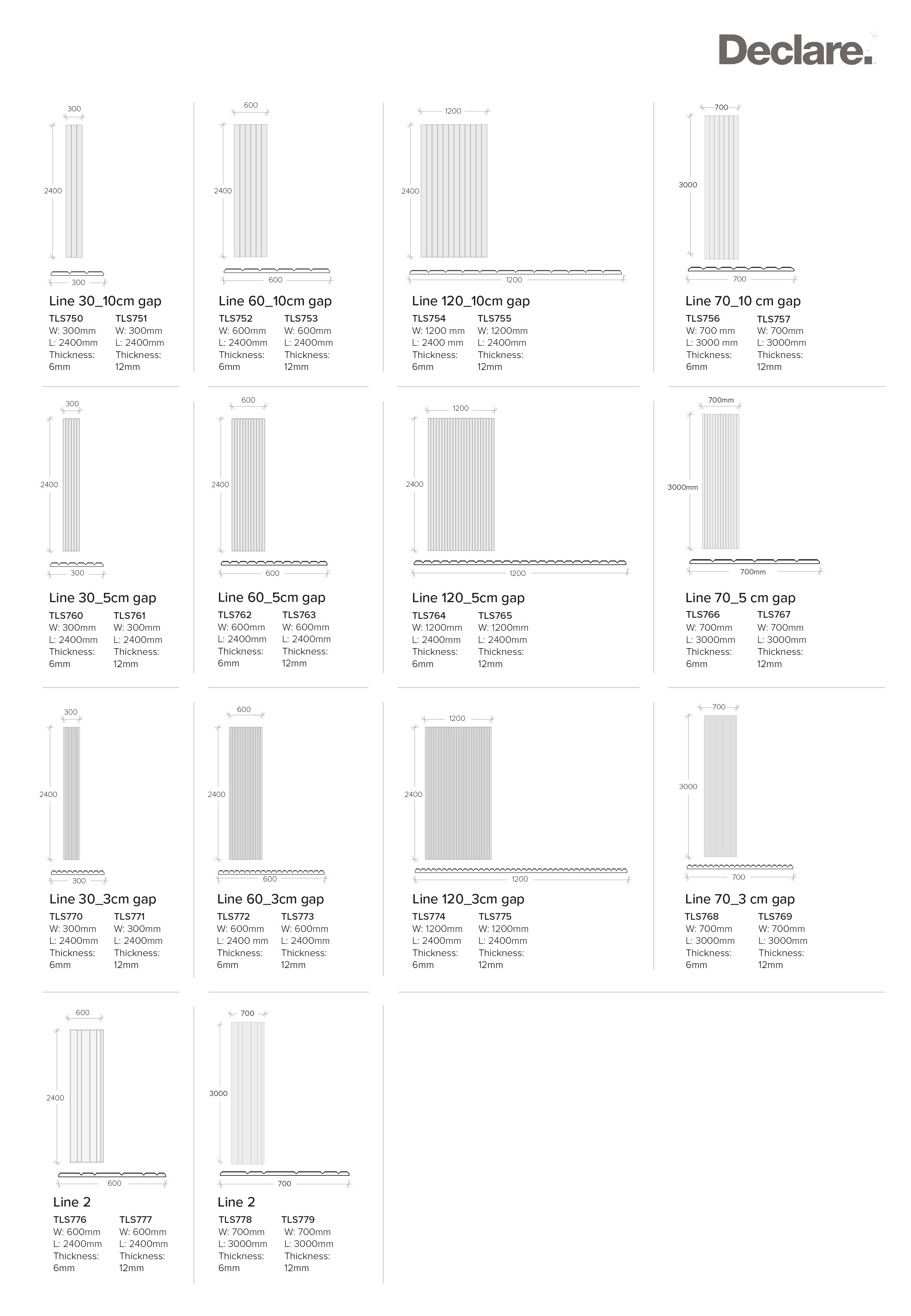 The collection offers different panel dimensions and spacing options. Designers can create compositions with different densities and scales. Line panels also come in 53 Feltouch PET felt color options, making it easy to match different interior concepts.