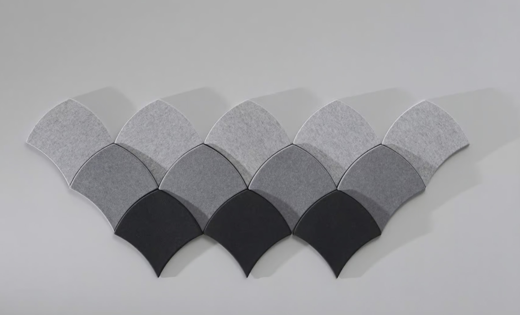The lightweight and semi-rigid structure makes installation simple and practical. Designers can arrange the panels in repeating patterns or combine different Feltouch colors to create expressive surface compositions.