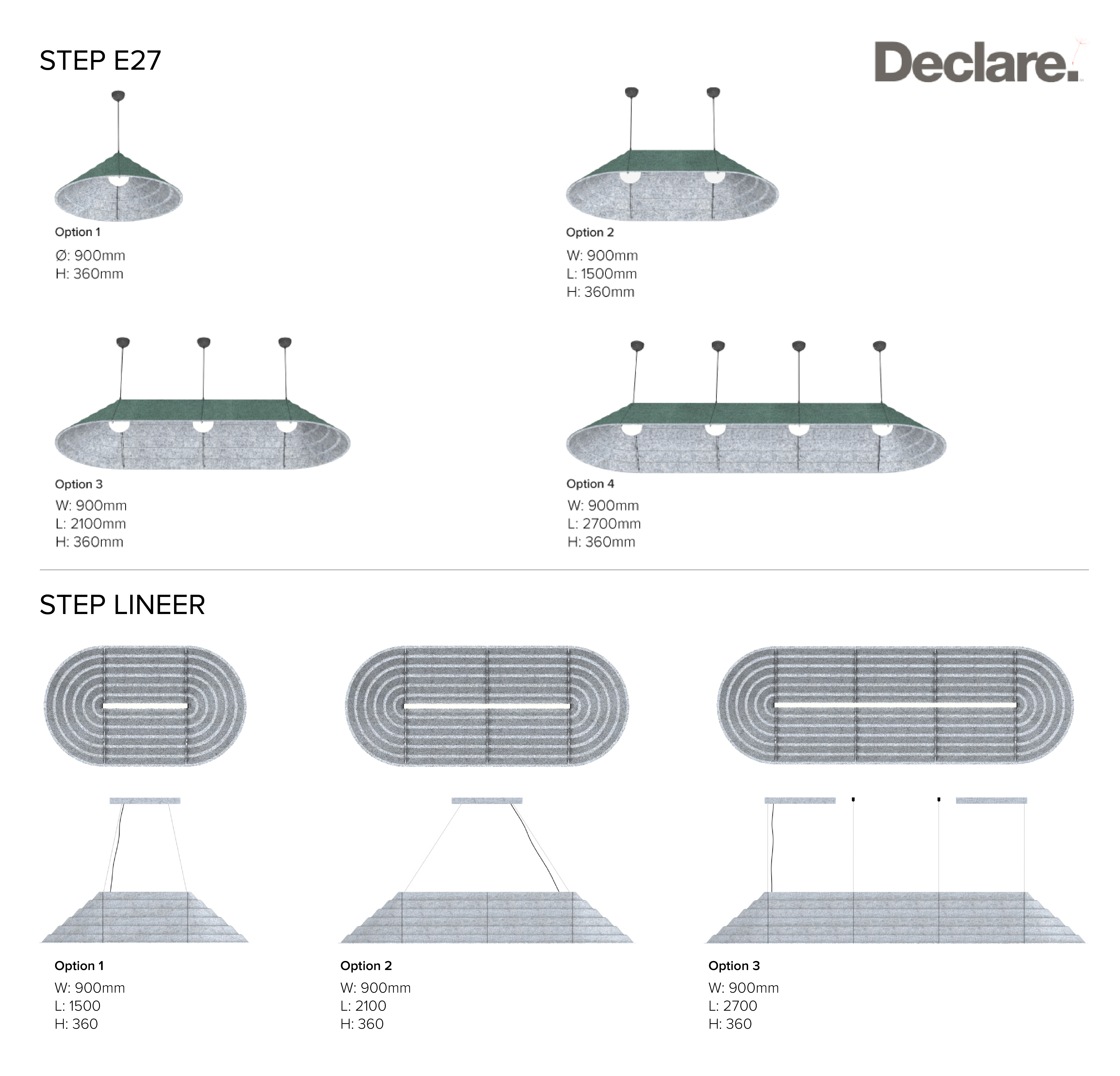 Produced in recycled PET felt, STEP lampshades have a dual function: they reflect light and absorb sound.