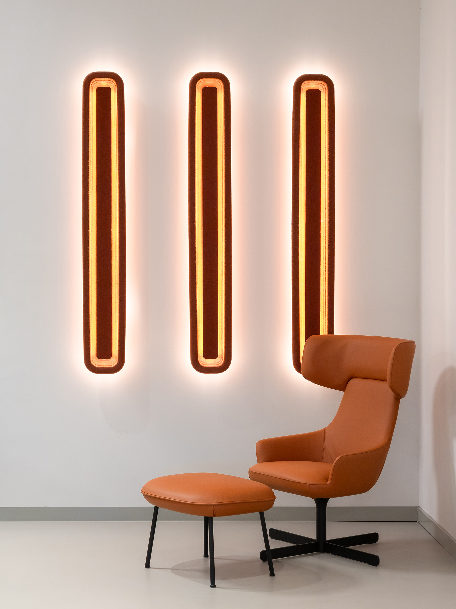 Line Wall Lamp is a wall-mounted lighting solution that combines illumination and acoustic performance in a single, refined form. Designed by Ali Berkman, Line features a soft, curved geometry that improves both visual comfort and acoustic quality in interior spaces.