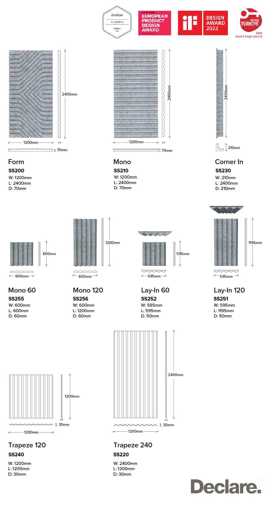 Available Dimensions (mm)