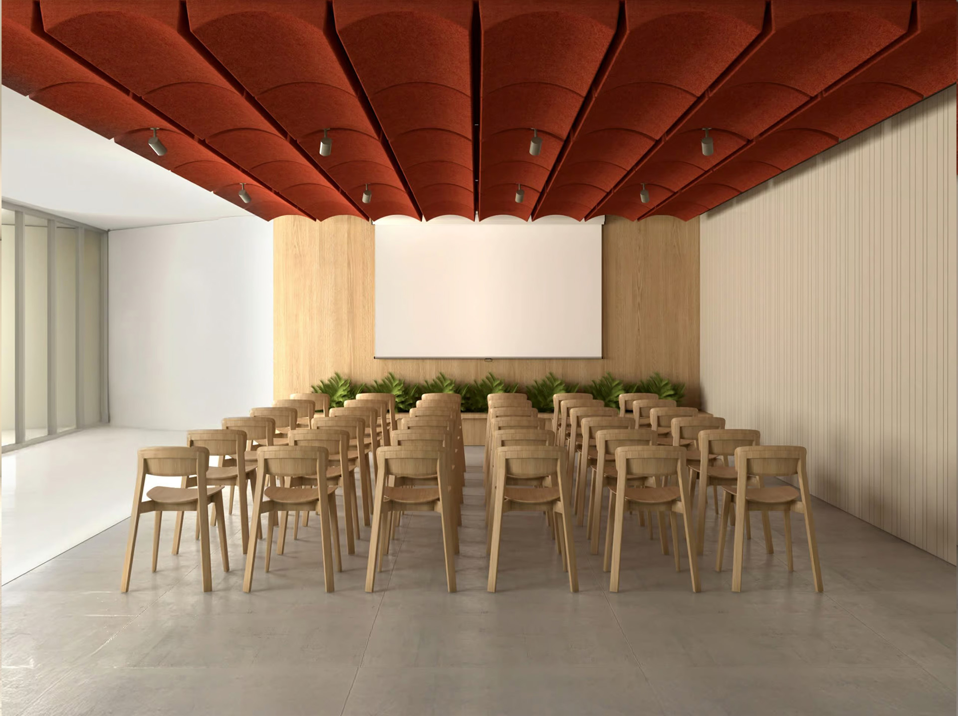 Volta Lay-In panels are suitable for offices, educational spaces, and public interiors. They create visually dynamic ceilings while improving acoustic comfort.