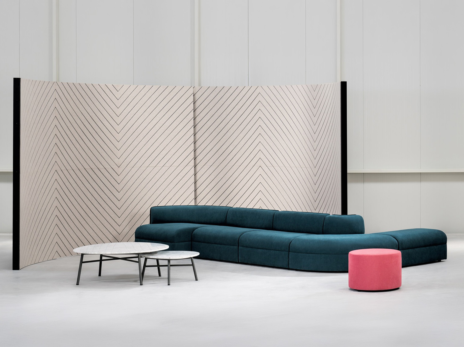 Zig-Zag panels use PET felt produced from 50% recycled material. This makes the product a sustainable acoustic solution. The collection also offers 53 Feltouch PET felt color options, allowing designers to match different interior concepts.