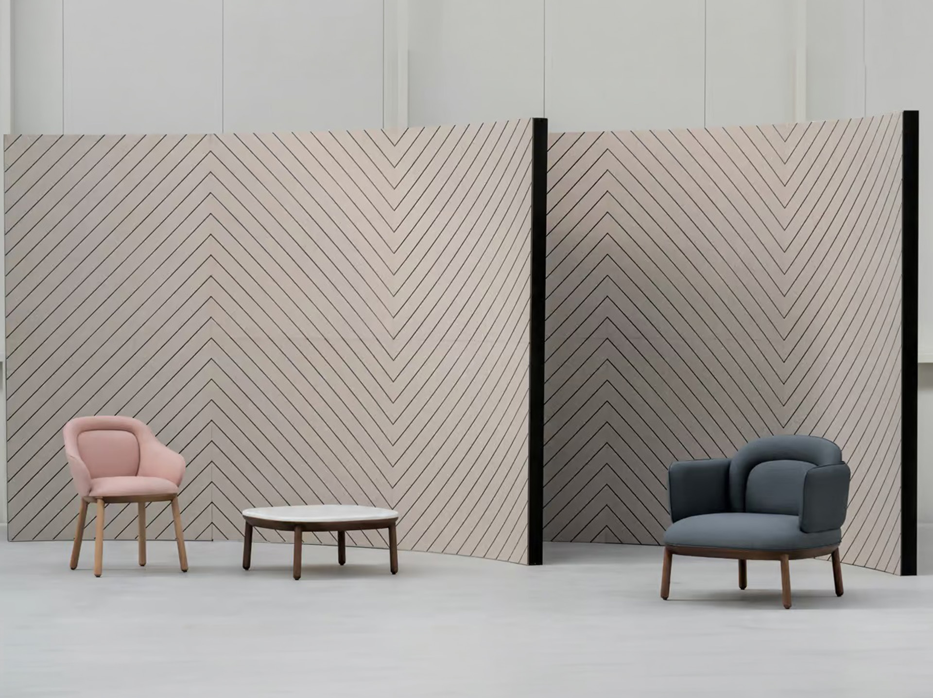 Designers can use Zig-Zag panels to create continuous wall surfaces or graphic compositions. The repeating diagonal lines bring a strong visual character to interior spaces.
