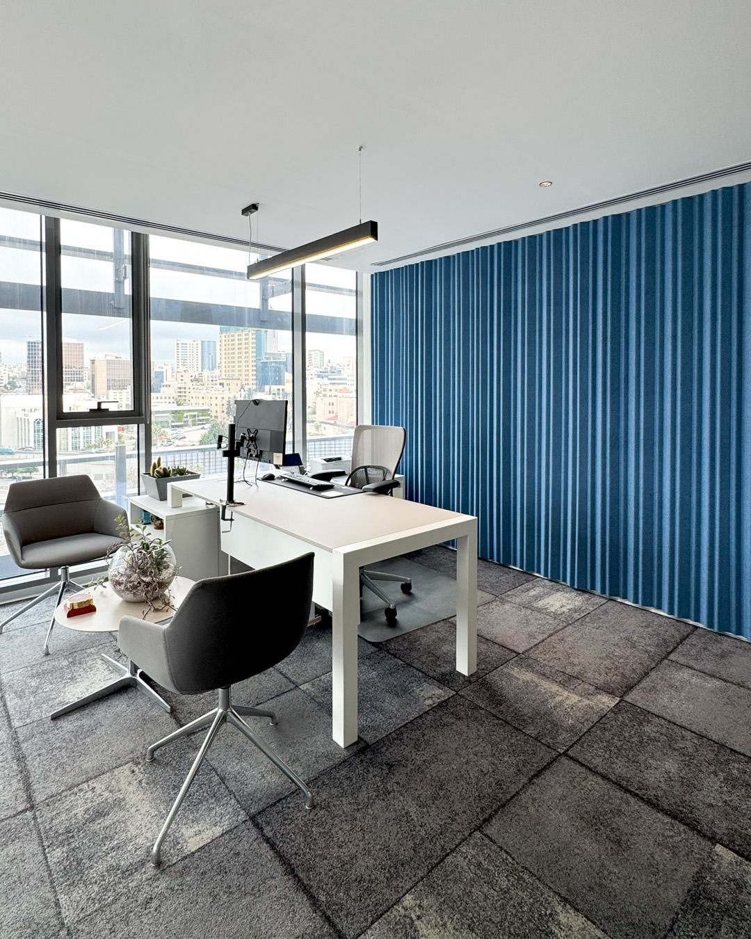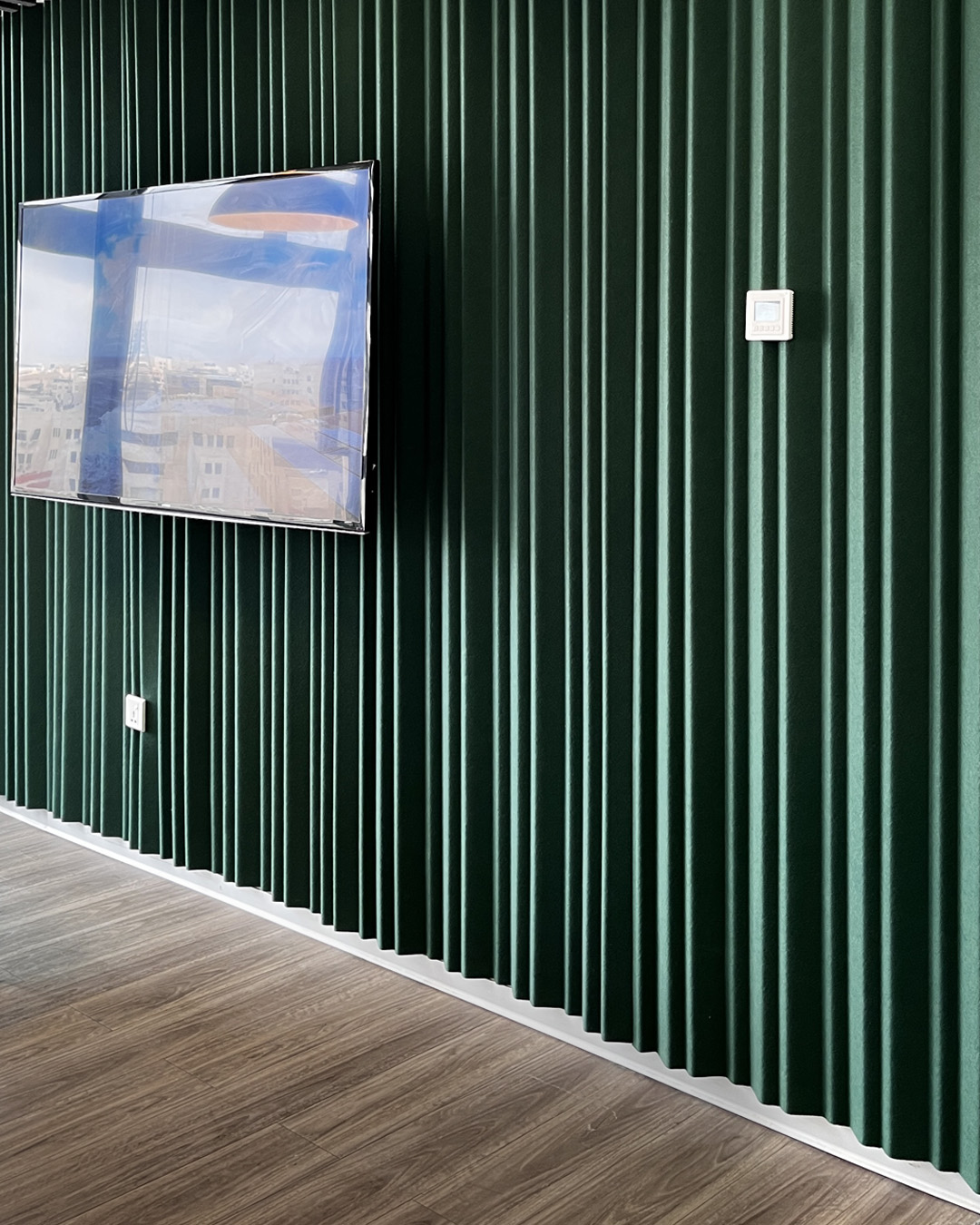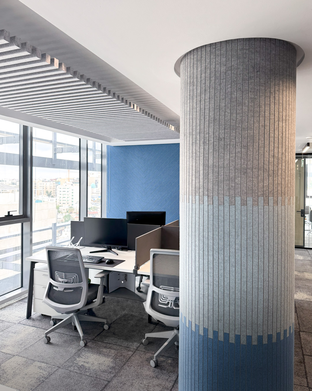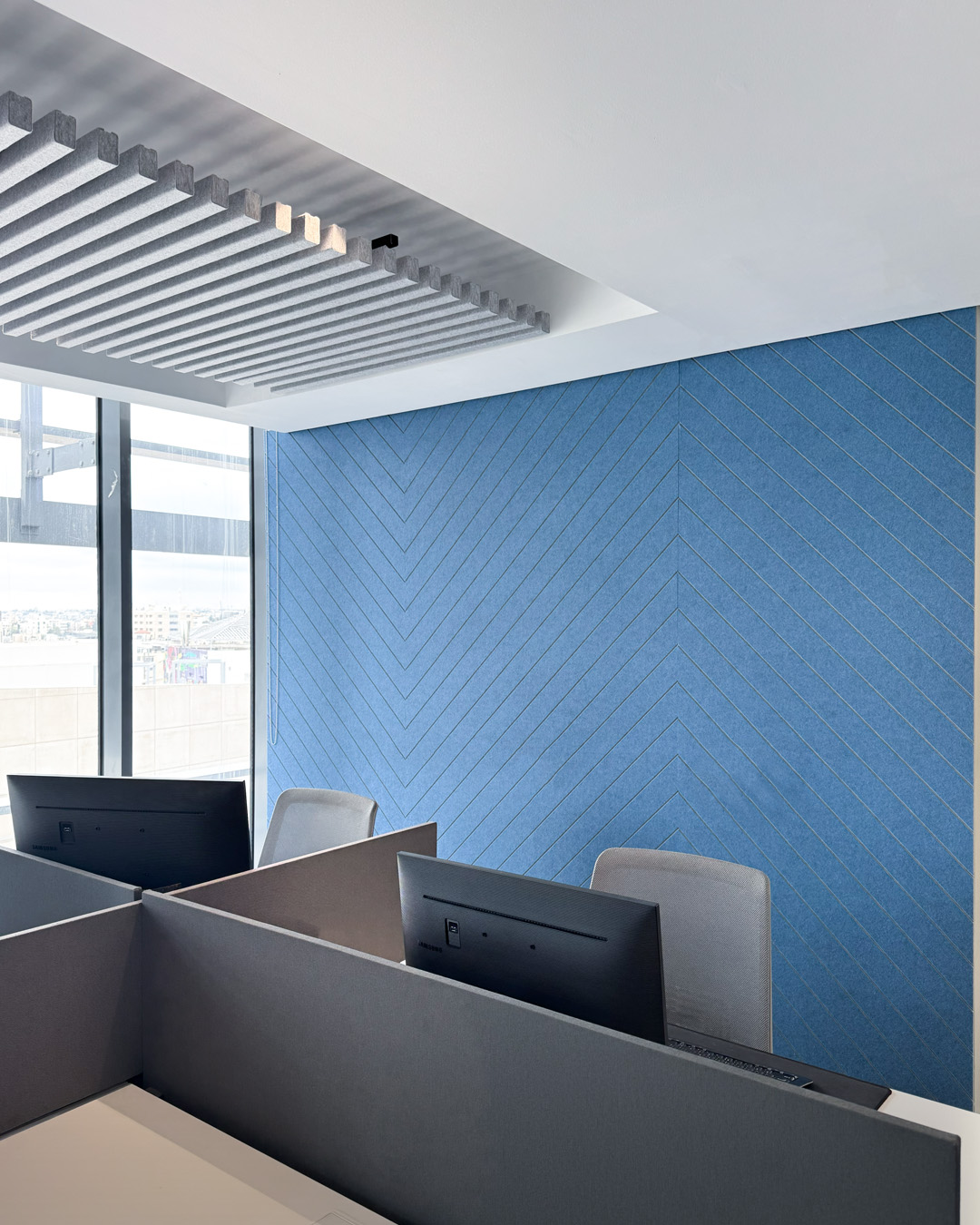 In the project carried out for Amin Kawar & Sons Co., solutions that balance acoustic comfort with aesthetic refinement were implemented. Acoustic panels in varying thicknesses and patterns were selected to complement the architectural character of the space while offering functional benefits.