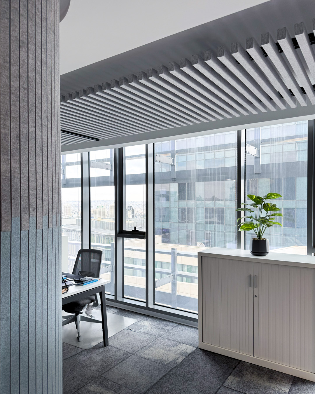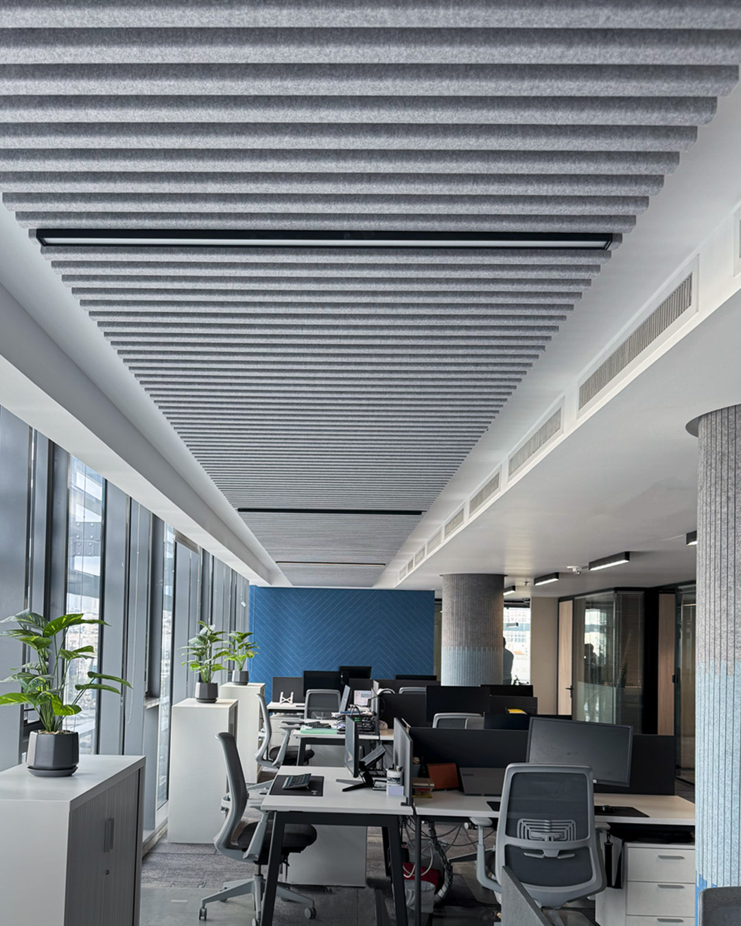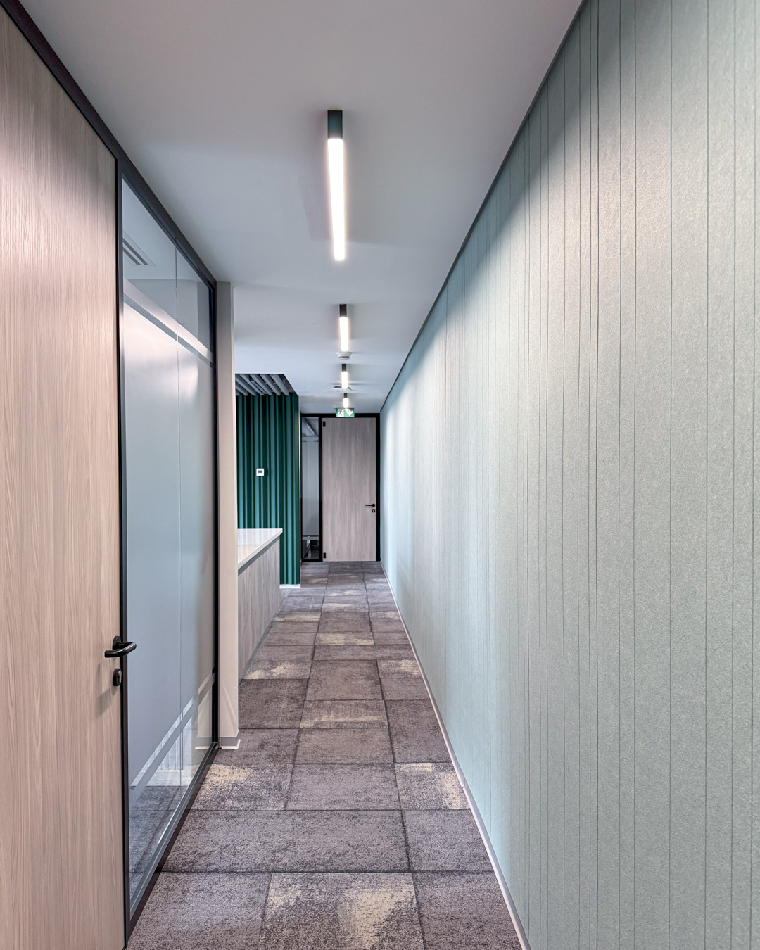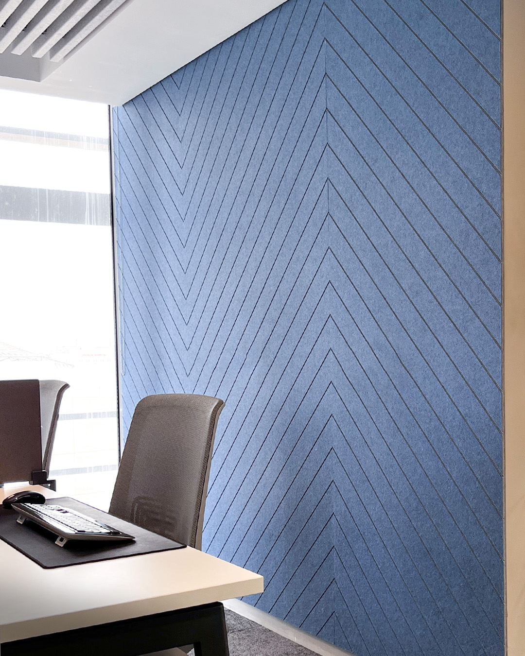 In the project carried out for Amin Kawar & Sons Co., solutions that balance acoustic comfort with aesthetic refinement were implemented. Acoustic panels in varying thicknesses and patterns were selected to complement the architectural character of the space while offering functional benefits.