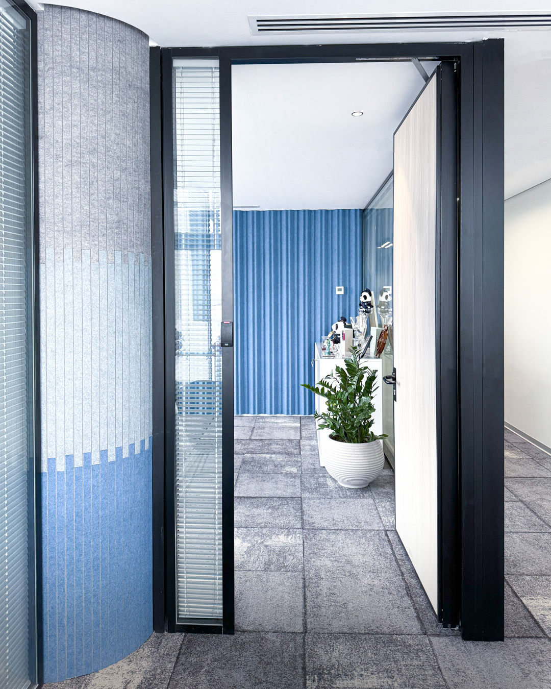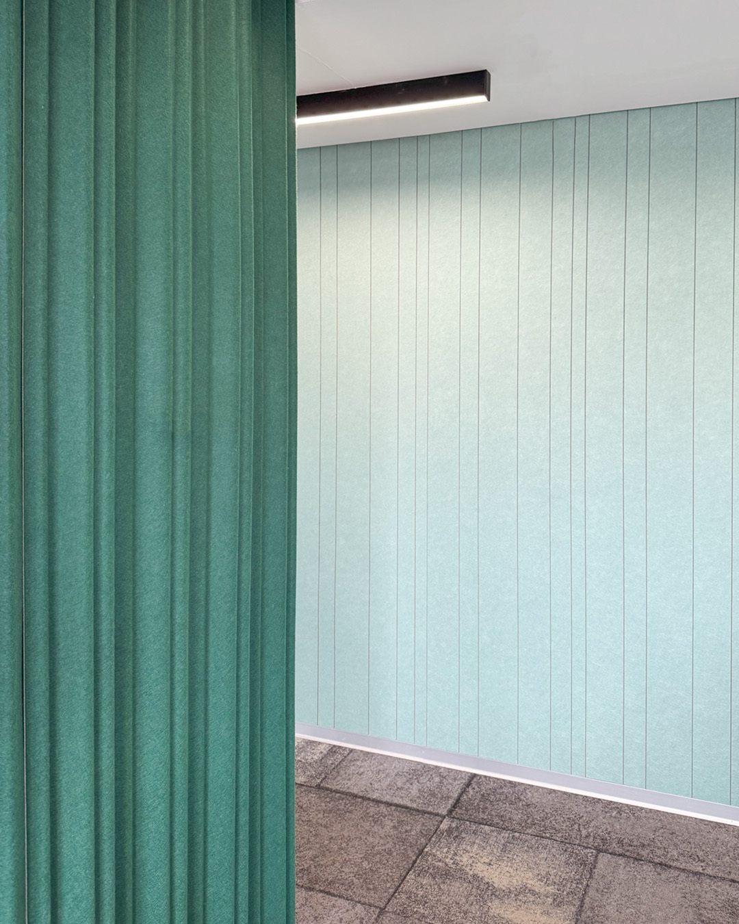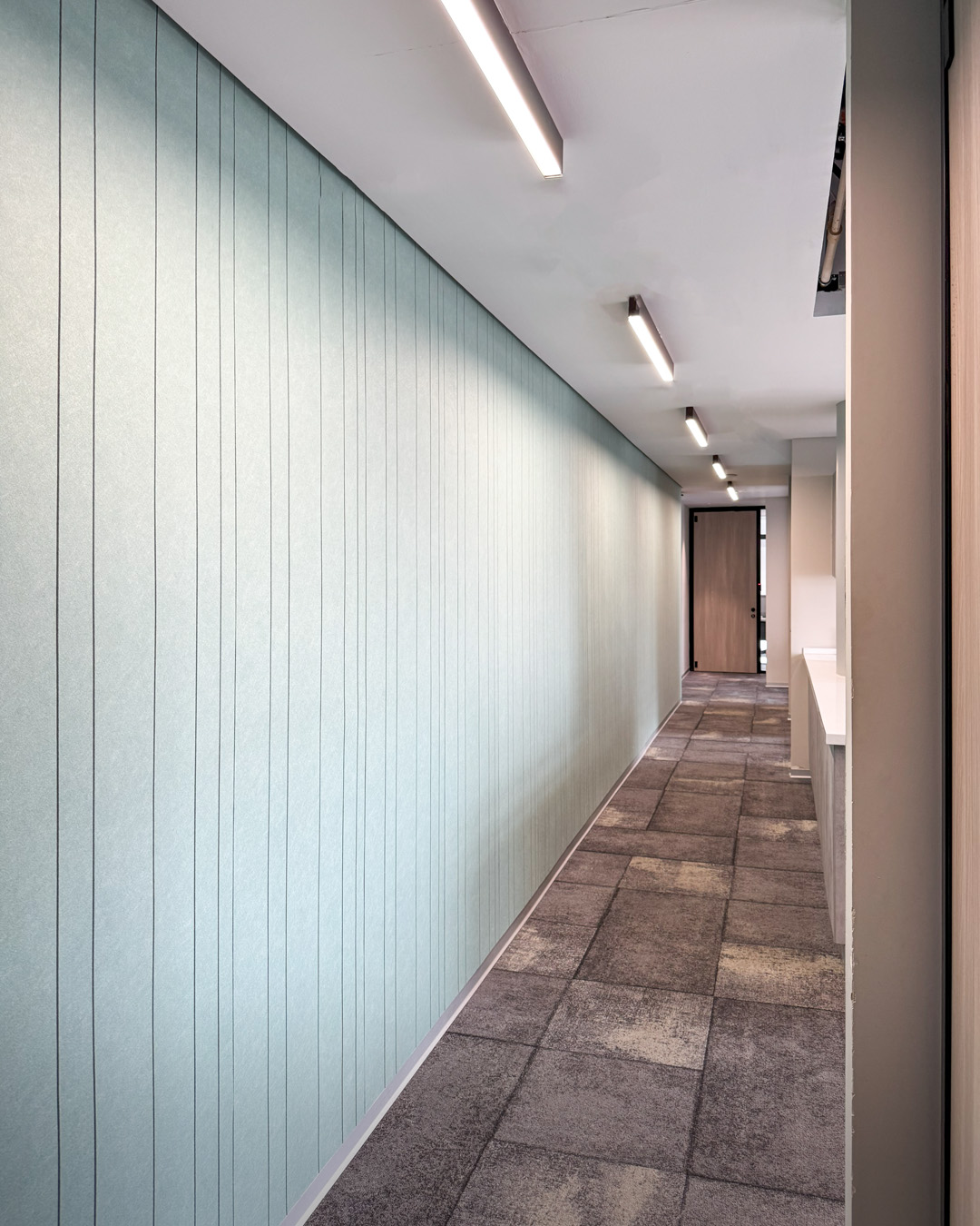 Cracker panels, known for their three-dimensional surface effect, enhanced both the spatial rhythm and the acoustic environment. FLM06 was used for 11.808 m² and FLM29 for 9.0932 m² of the wall surfaces, making the Cracker modules one of the most striking features of the project.