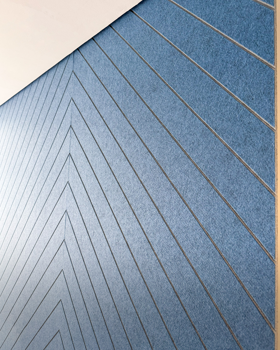For the wall applications, 26.691 m² of 6mm thick Tiles in Line and Irregular patterns were applied in FLM31, delivering a sense of continuity and coherence. Additionally, 12mm thick Chevron-patterned panels in FLM06 were installed across two separate areas—9.4464 m² and 7.158 m²—adding texture and depth.