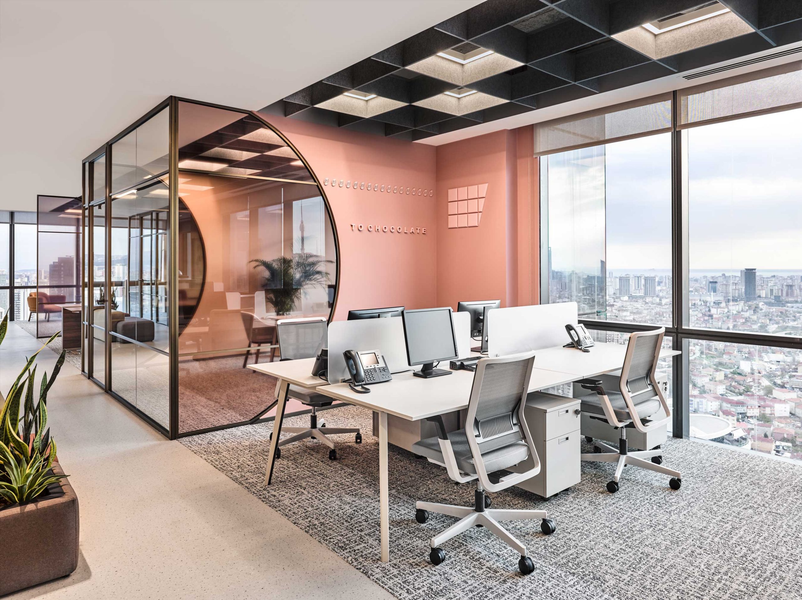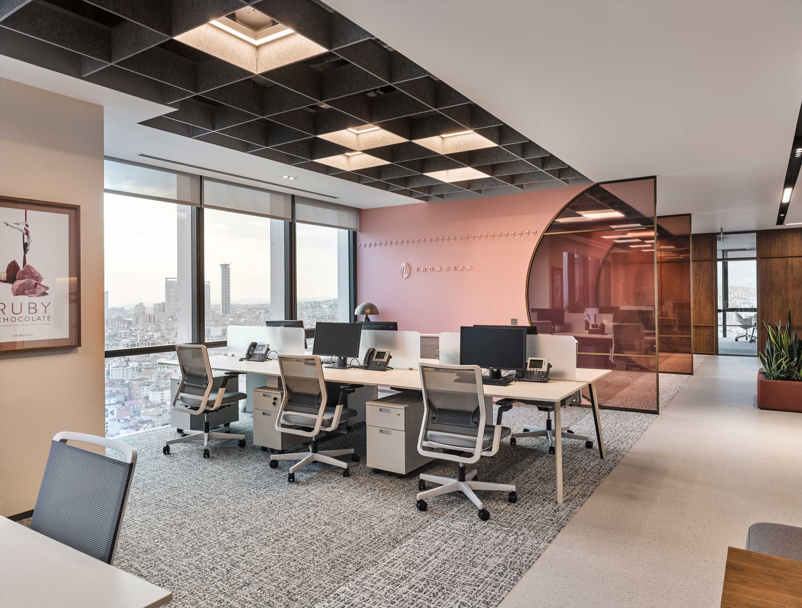 Barry CallebautProject name: Barry Callebaut Designed by: Studio13 Architects – Deniz Yetkin Photographer: İbrahim Özbunar Feltouch products: Baffle Acoustic Solutions: Ceiling Panel