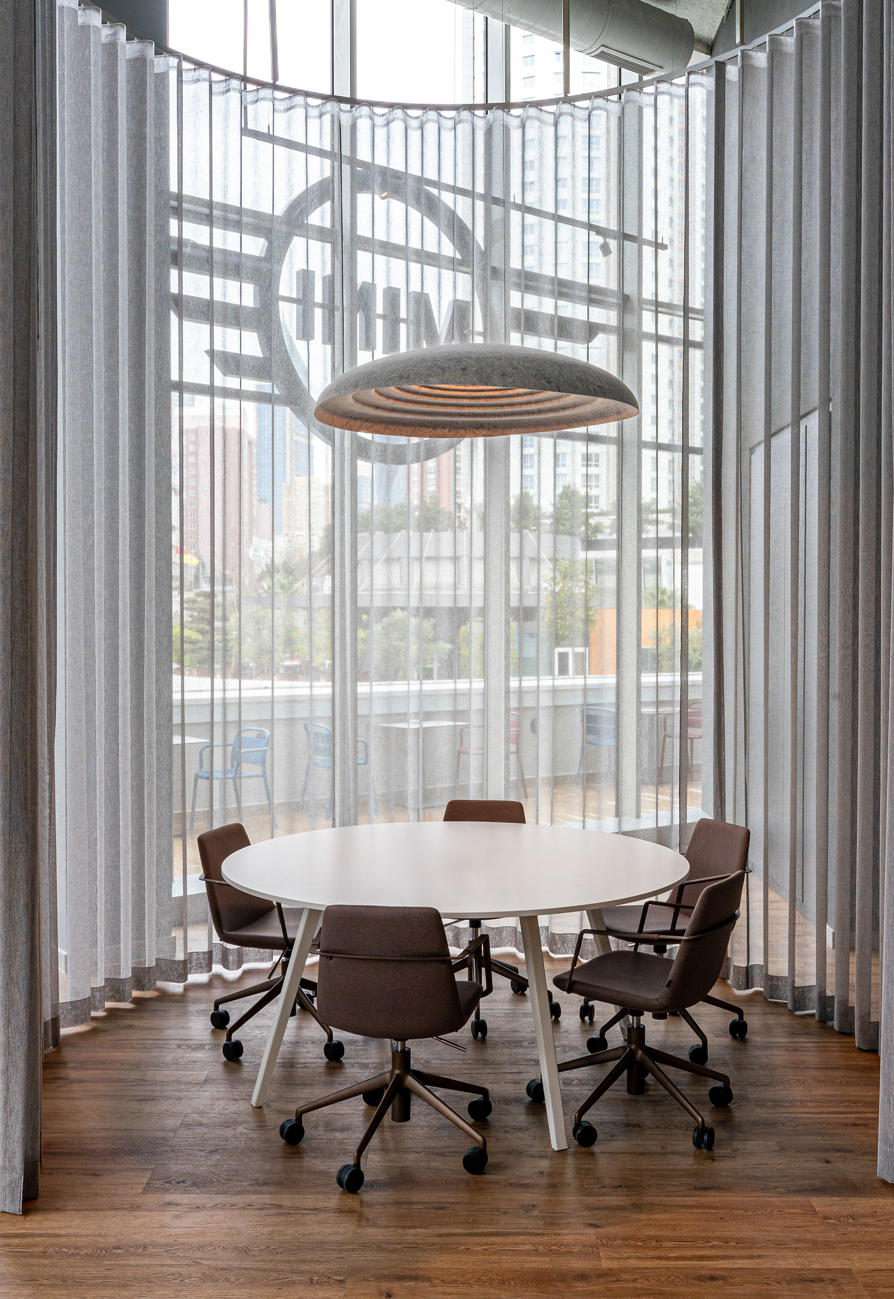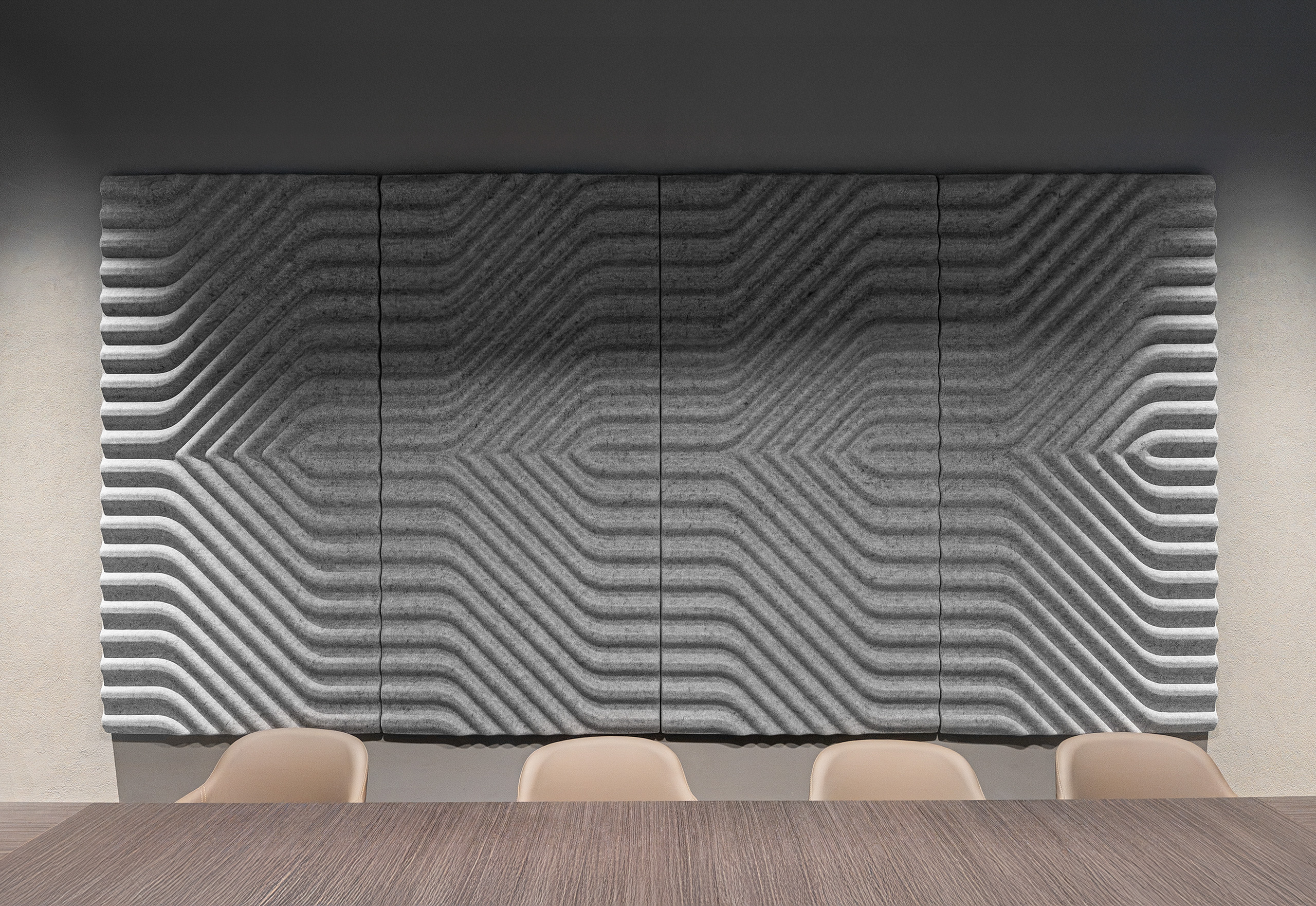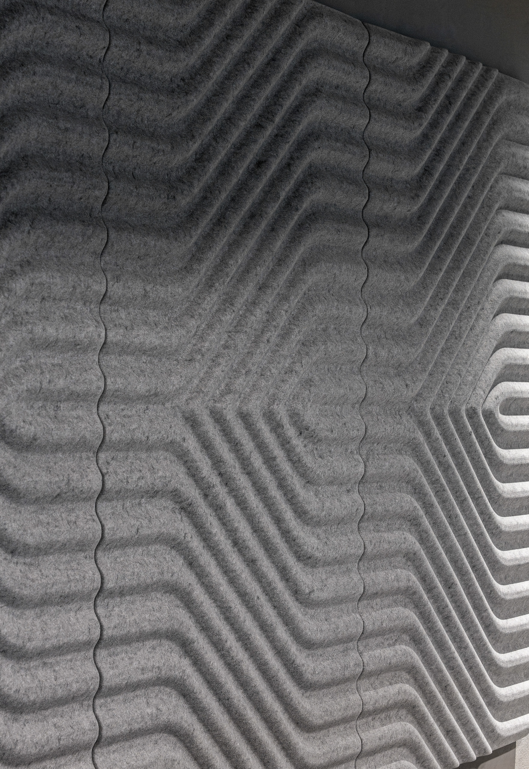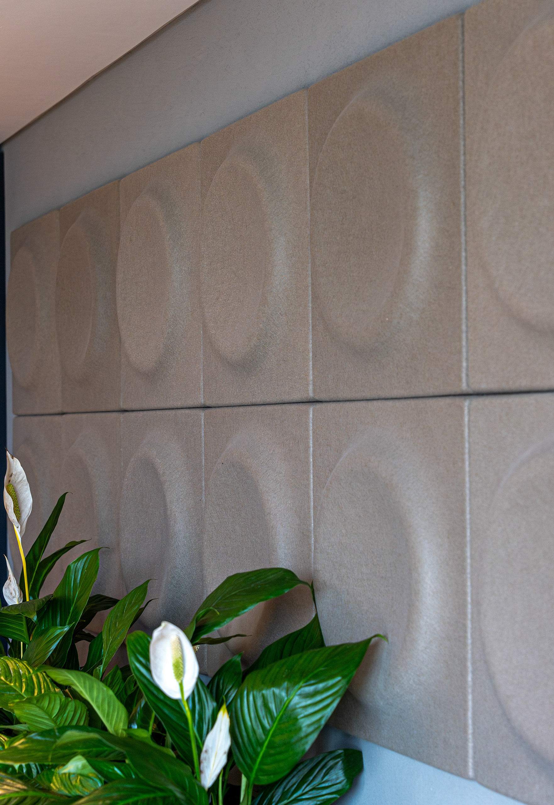 In the meeting rooms, Vertigo wall panels enhance acoustic performance and add strong visual character to the interiors. At the same time, the panels absorb sound reflections on vertical surfaces and help create a controlled environment for meetings and discussions.